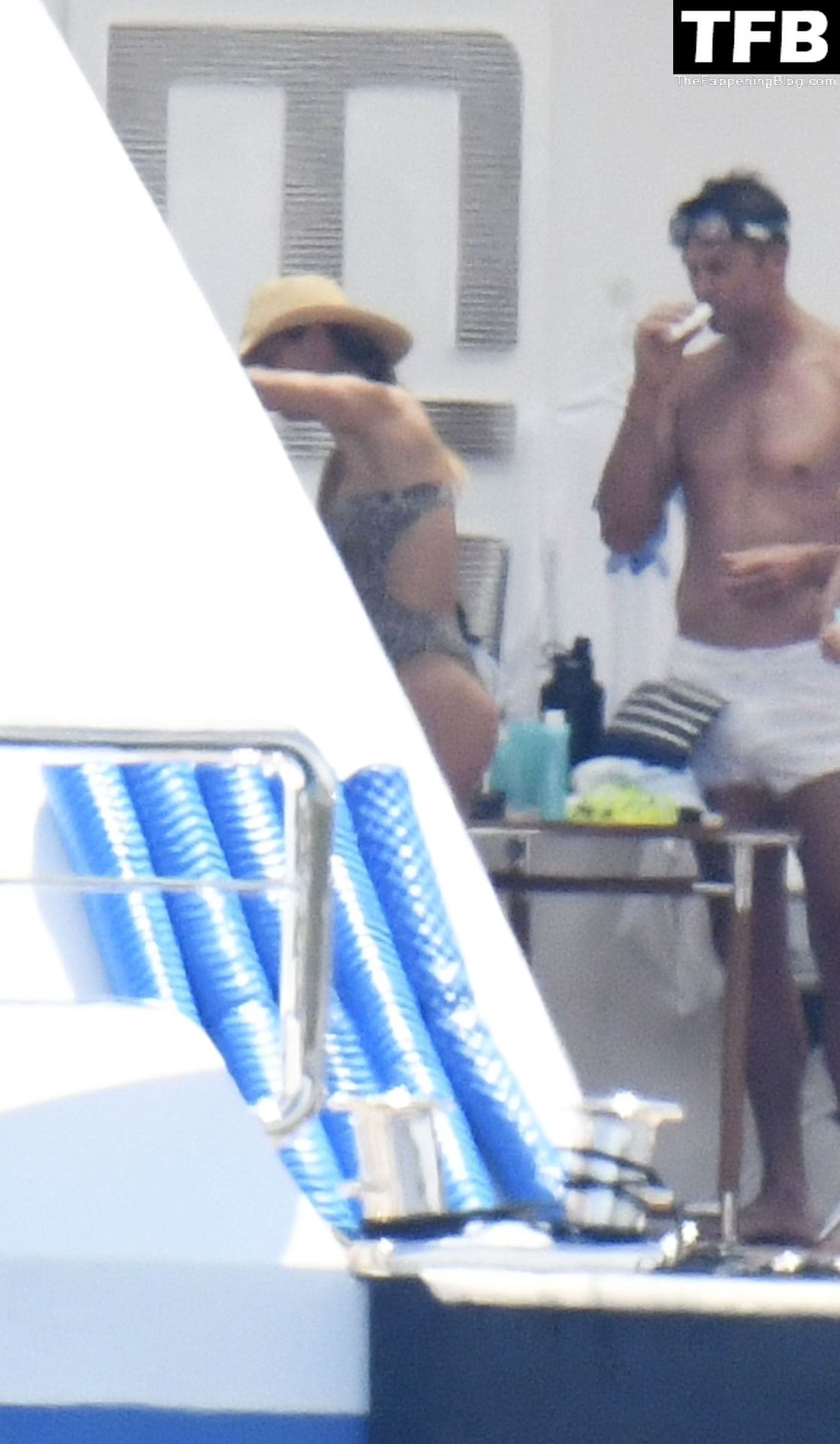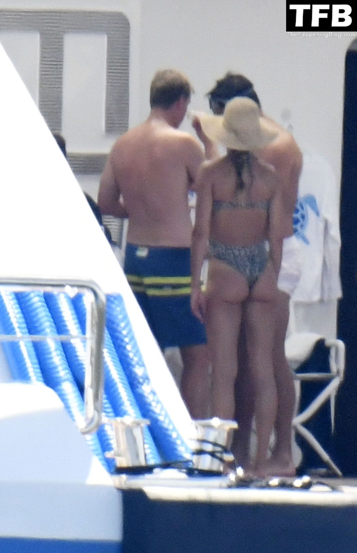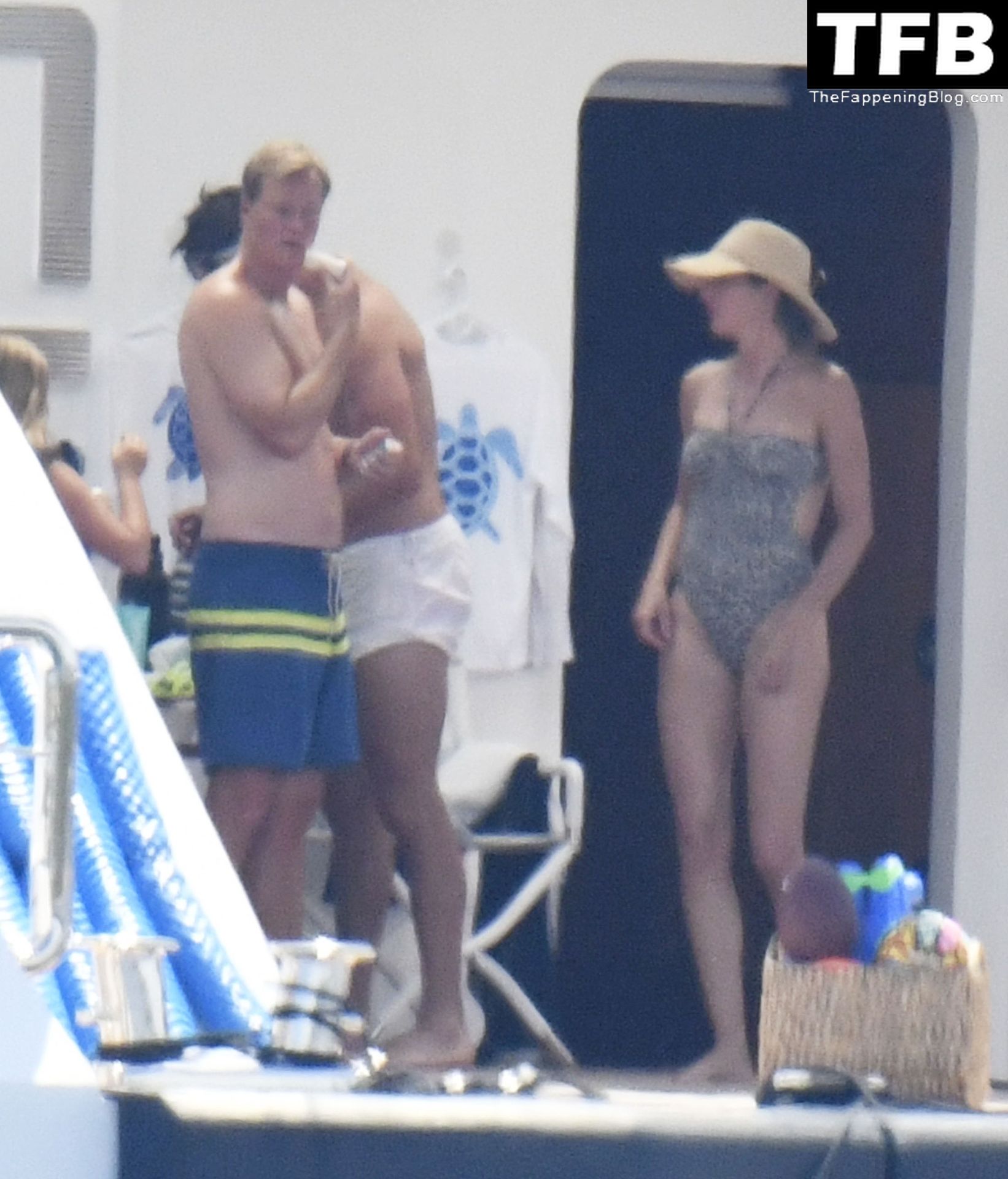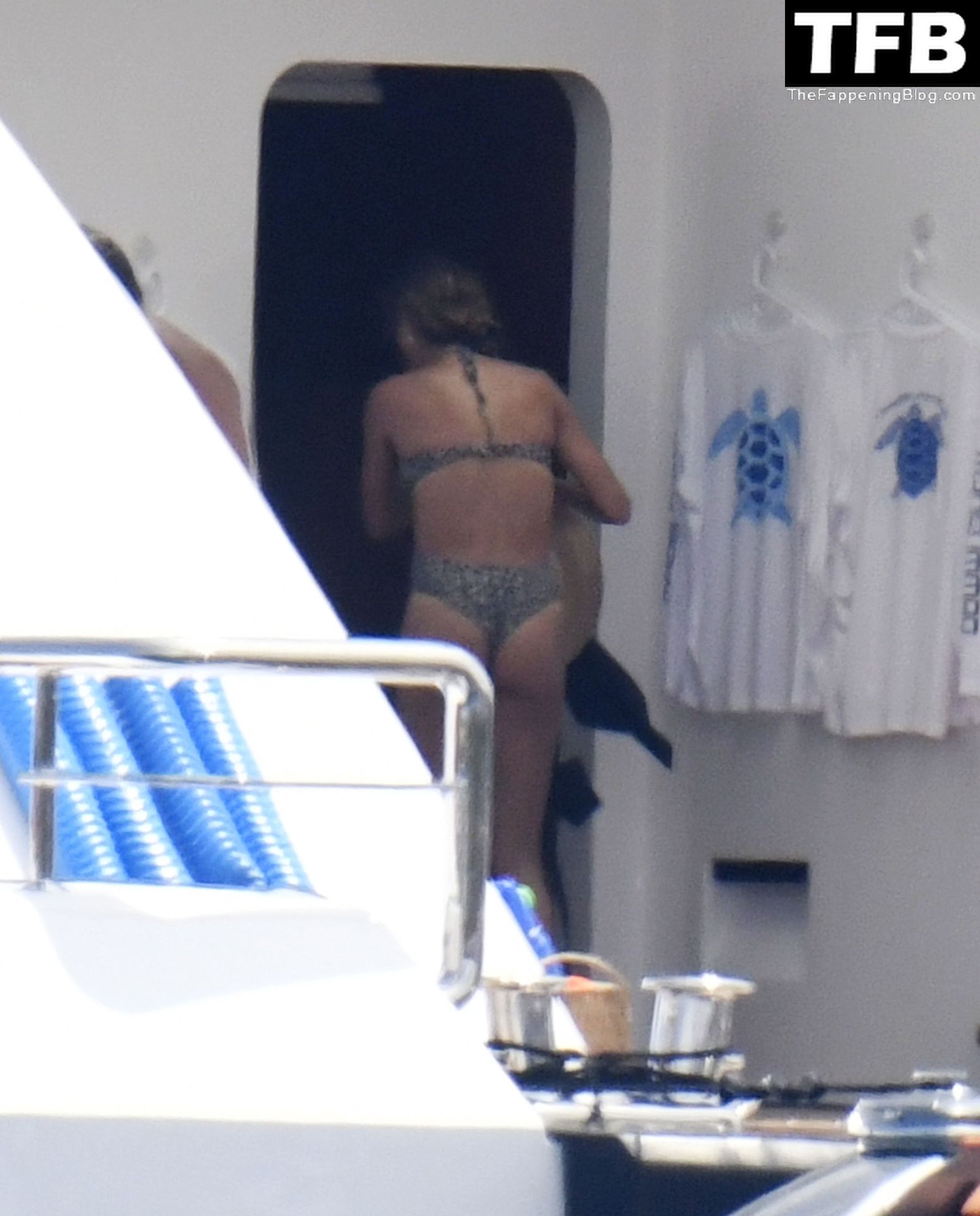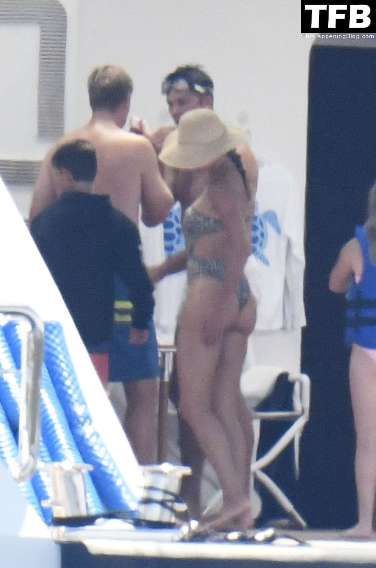 La supermodèle brésilienne Gisele Bundchen met en valeur sa silhouette dans un maillot de bain à imprimé animalier tandis qu’elle est photographiée avec son mari, le joueur de la NFL Tom Brady, profitant de leurs vacances d’été sur un yacht de luxe en Italie, 07/02/2022.