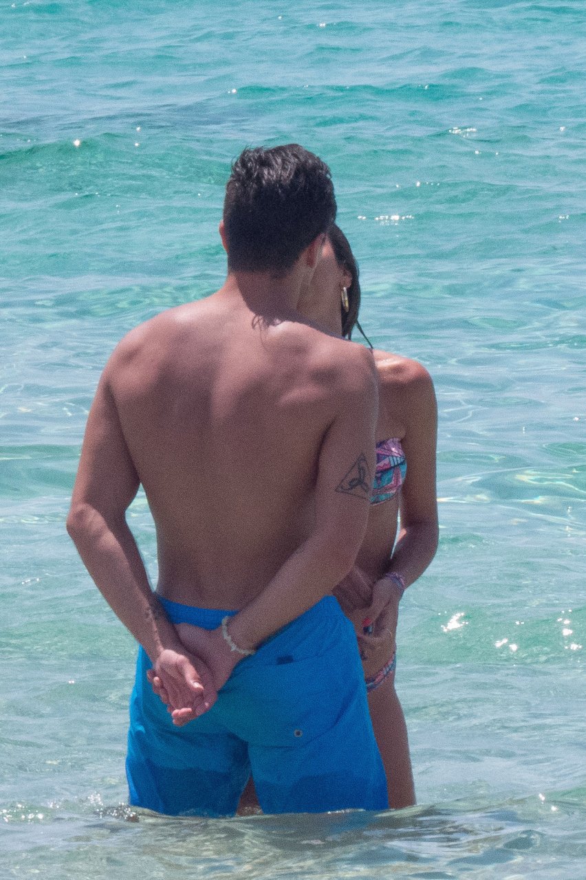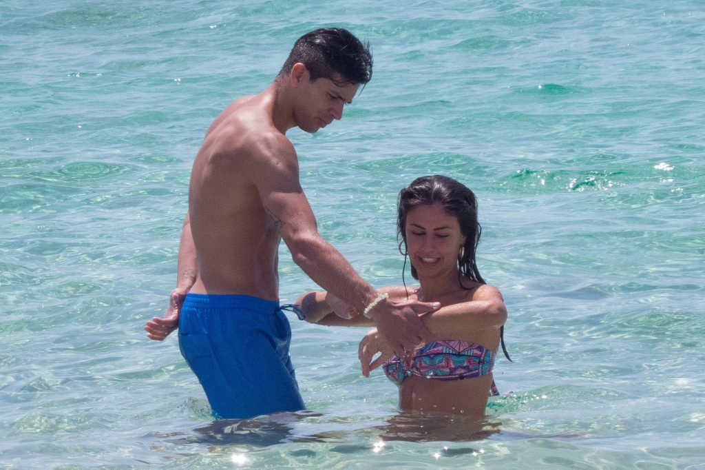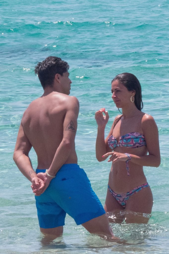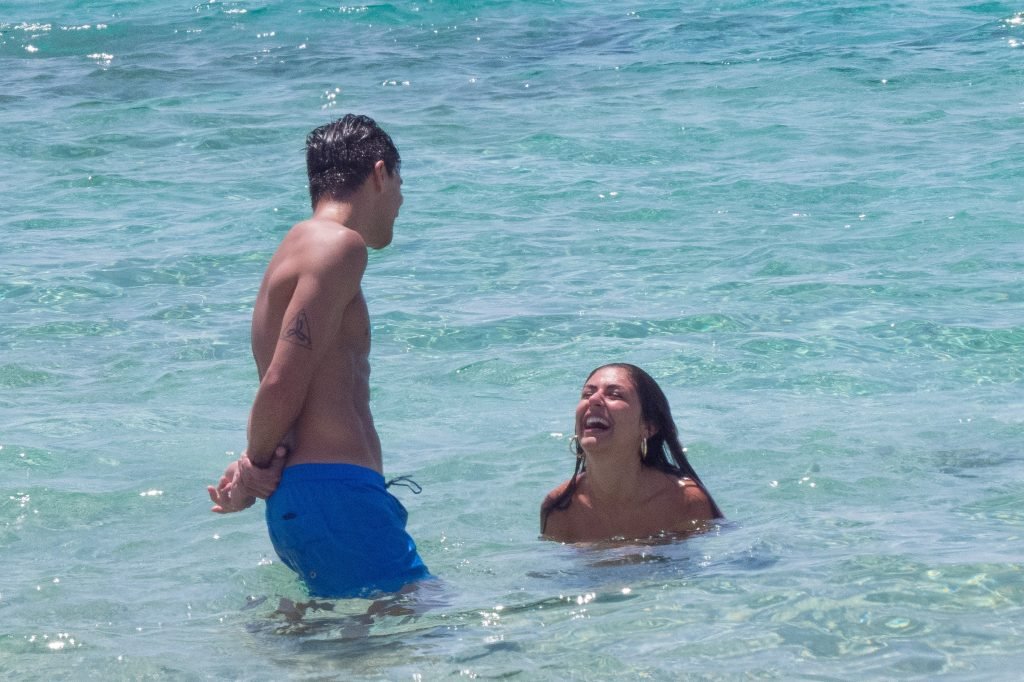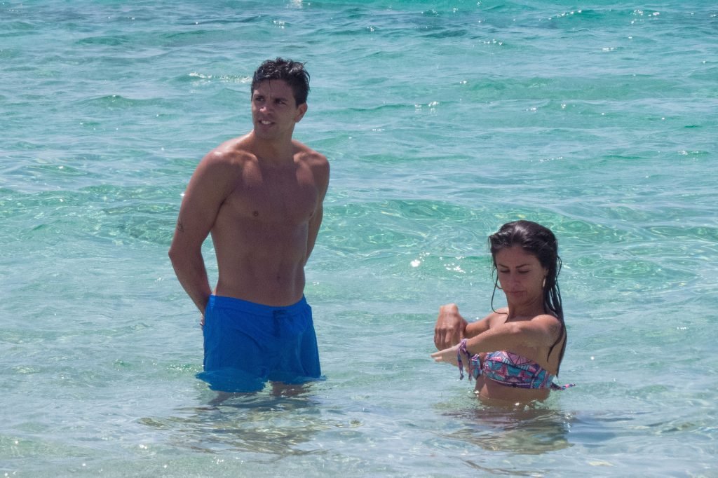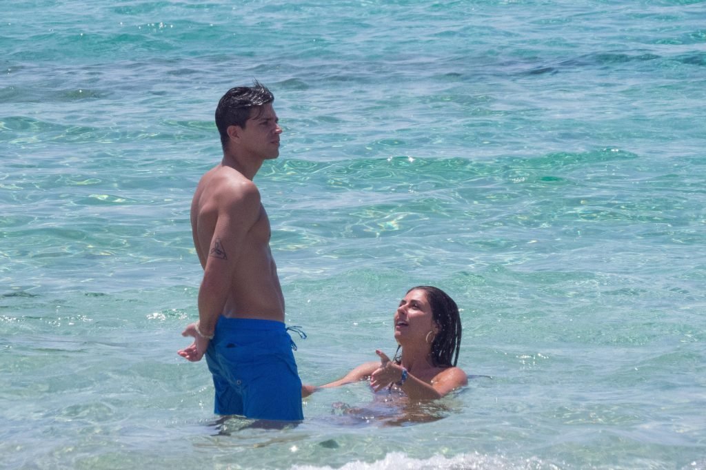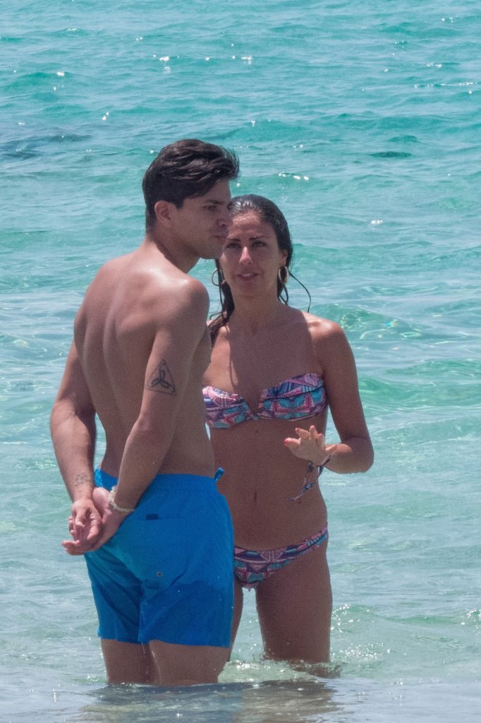 Giovanni Pablo Simeone (Fiorentina) et sa petite amie, un mannequin italien et candidate à Miss Italie 2013 Giulia Coppini, ont été aperçus à la plage de Formentera, le 26/06/2018.