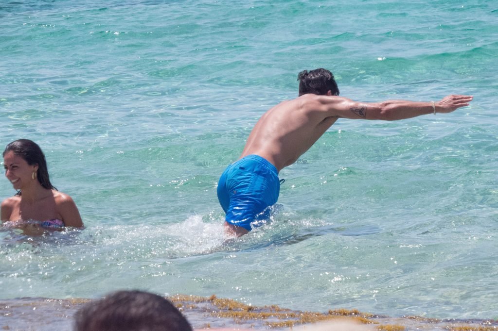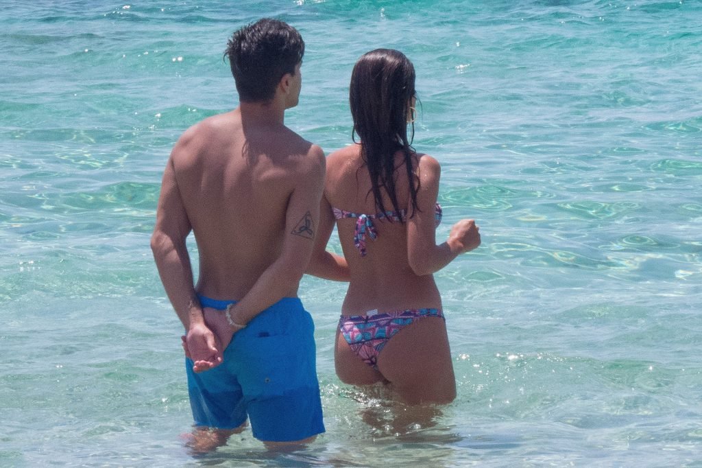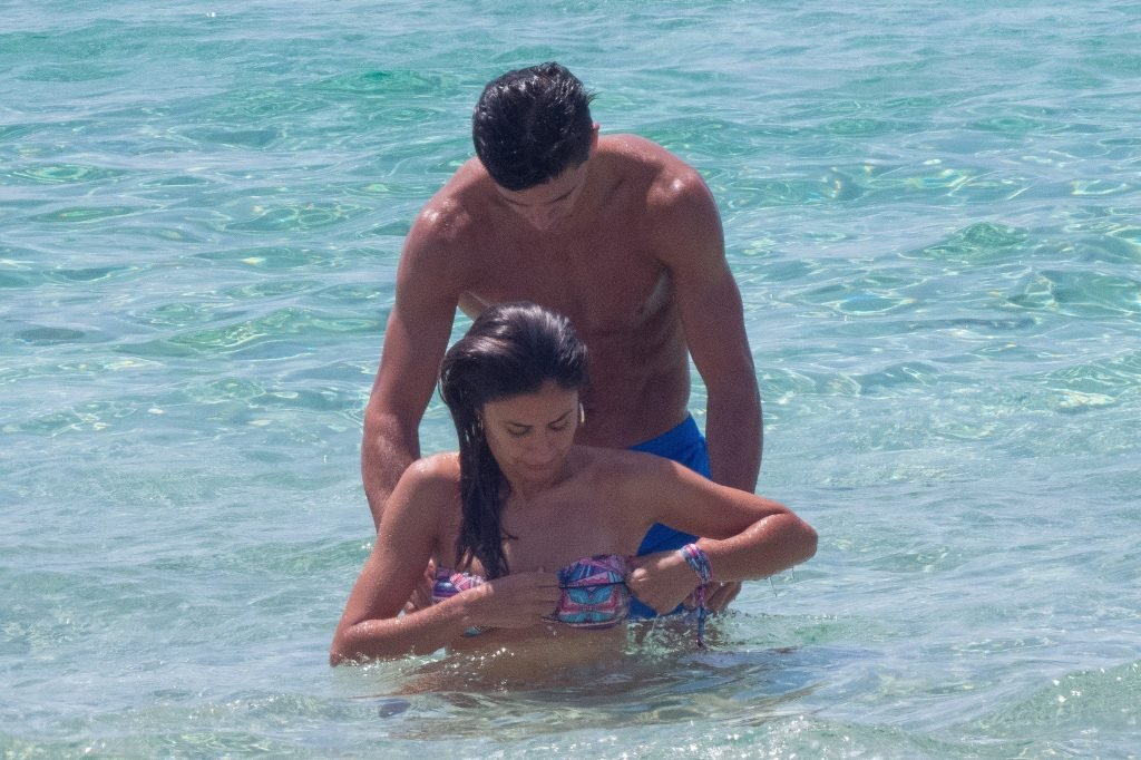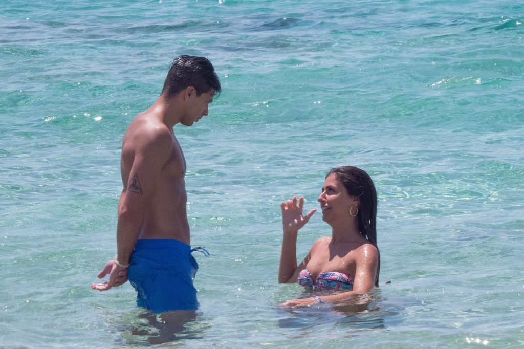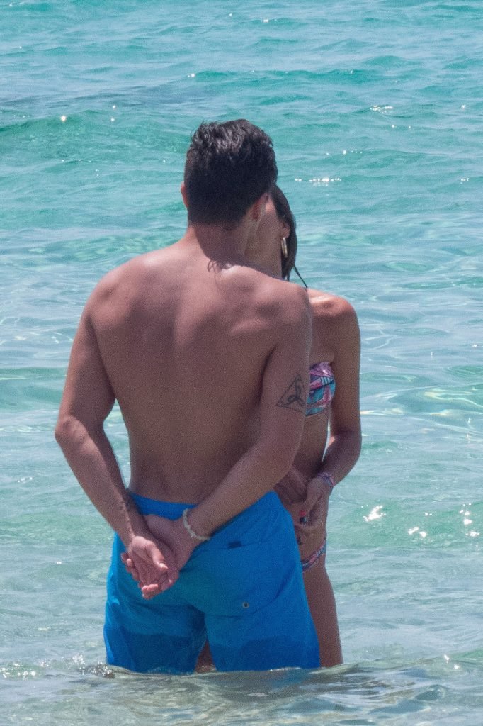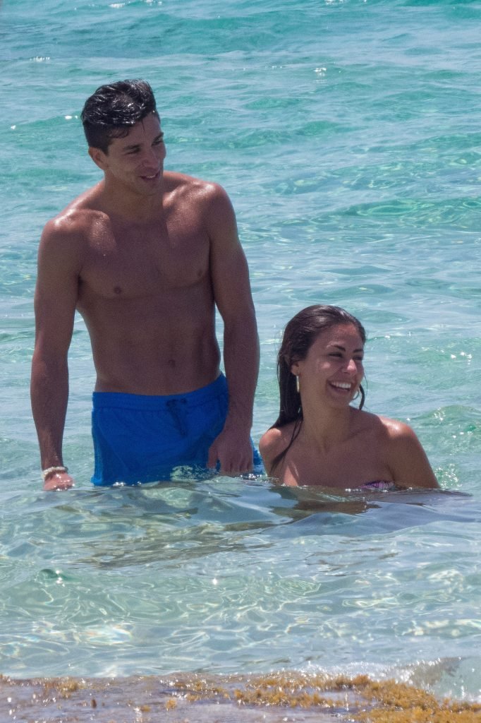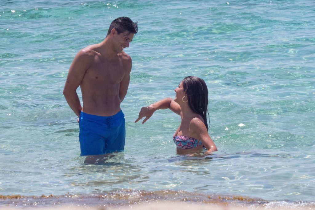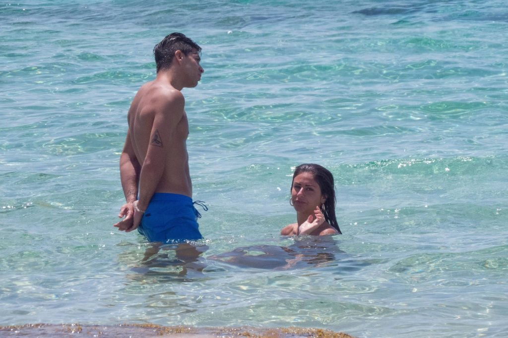 Giovanni Pablo Simeone (Fiorentina) et sa petite amie, un mannequin italien et candidate à Miss Italie 2013 Giulia Coppini, ont été aperçus à la plage de Formentera, le 26/06/2018.