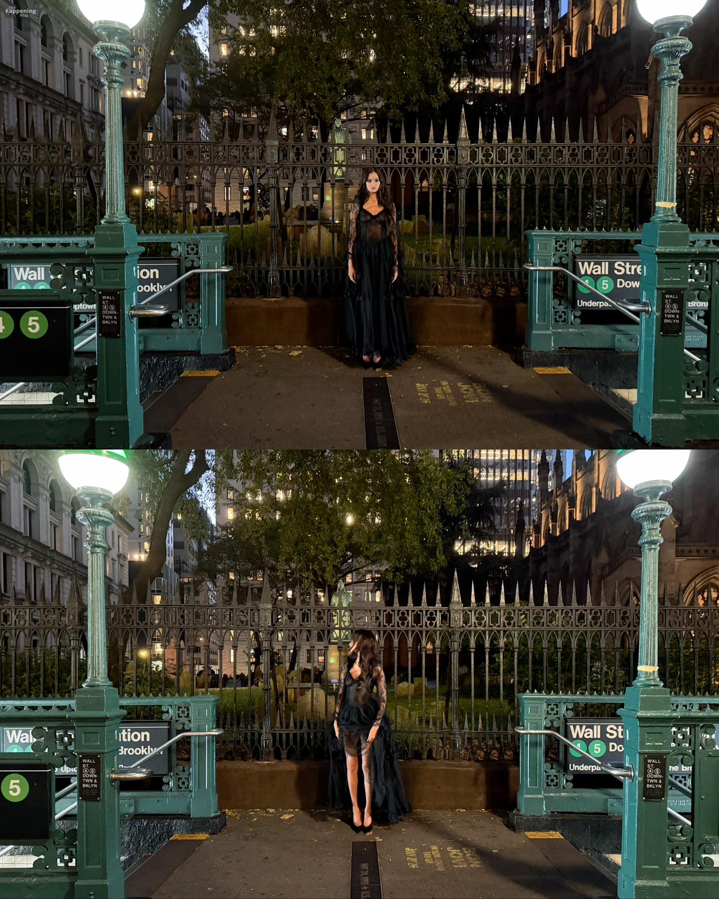 Le mannequin brésilien Gizele Oliveira était à la 24e fête annuelle d’Halloween de Heidi Klum à New York. Elle a incarné Dolores, inspirée par le personnage de Monica Bellucci dans “Irréversible”, dans une robe en dentelle noire transparente qui ne laissait que peu de place à l’imagination. Sans lingerie en dessous, elle n’a pas hésité à montrer ses seins nus dans cette tenue révélatrice.