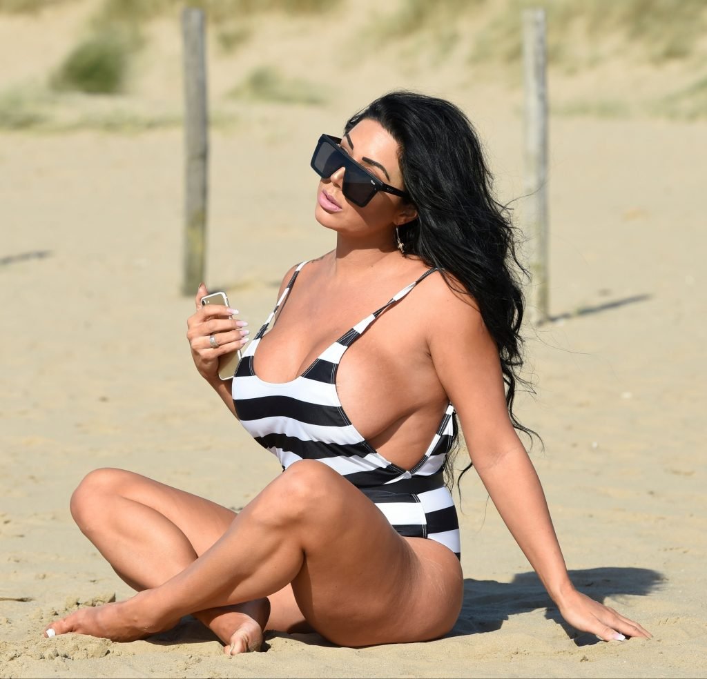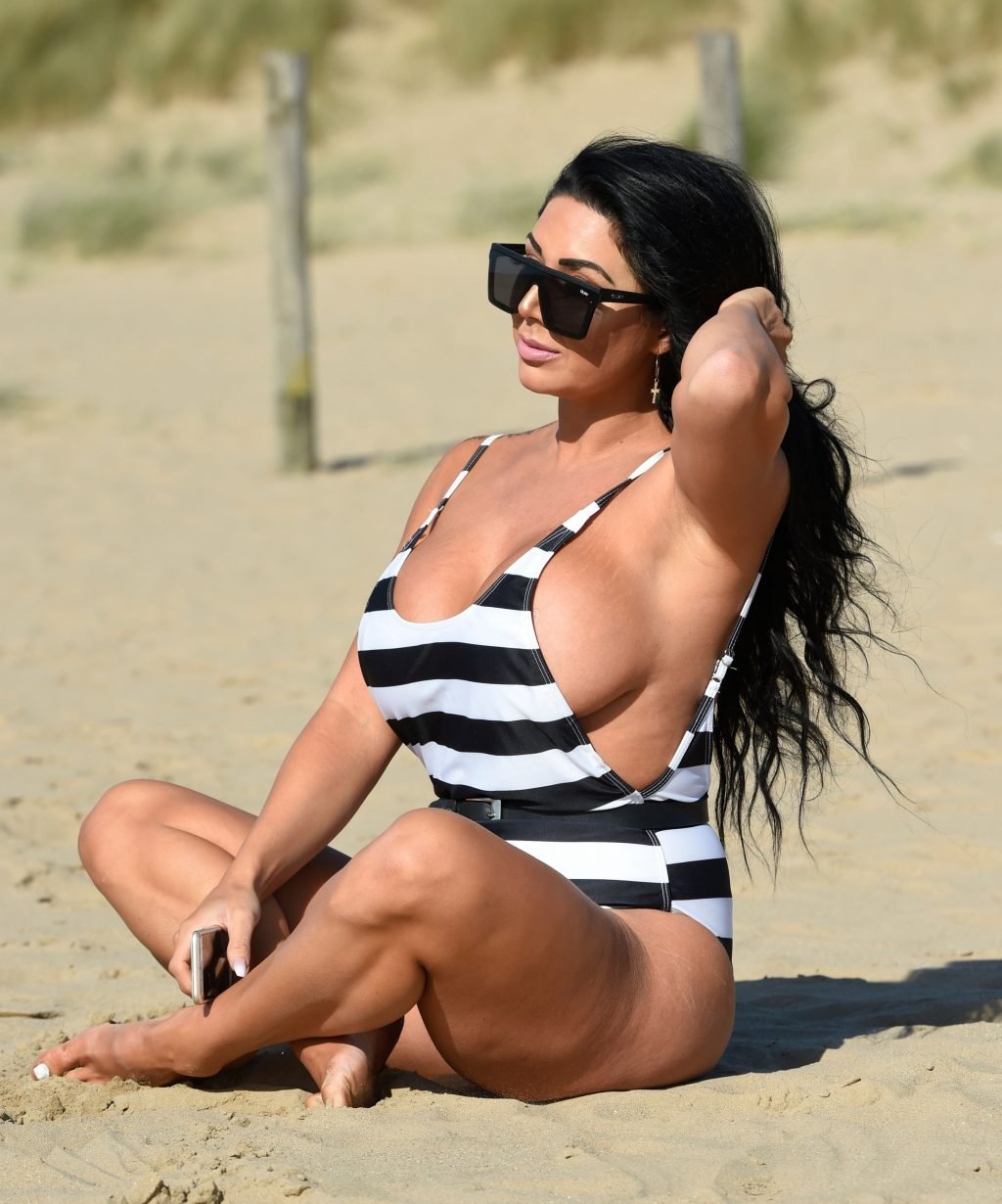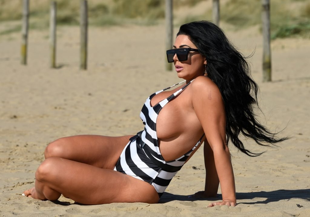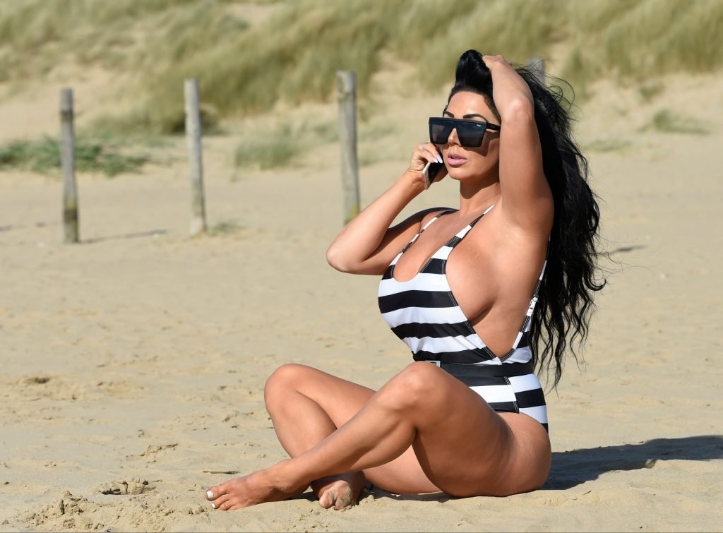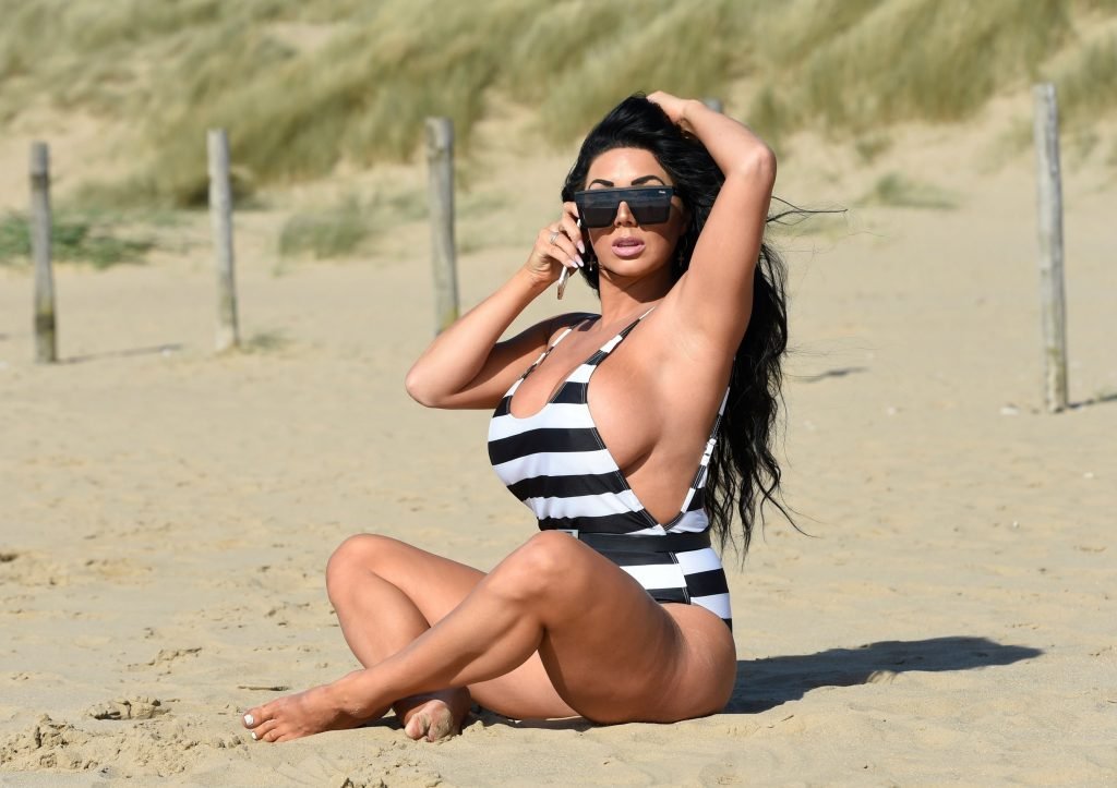 Gagnante du titre de Mannequin Glamour de l’Année 2018, la brune sexy Grace J Teal offre un spectacle très voluptueux alors qu’elle profite de la plage pendant ses vacances en Espagne, 10/04/2018.
