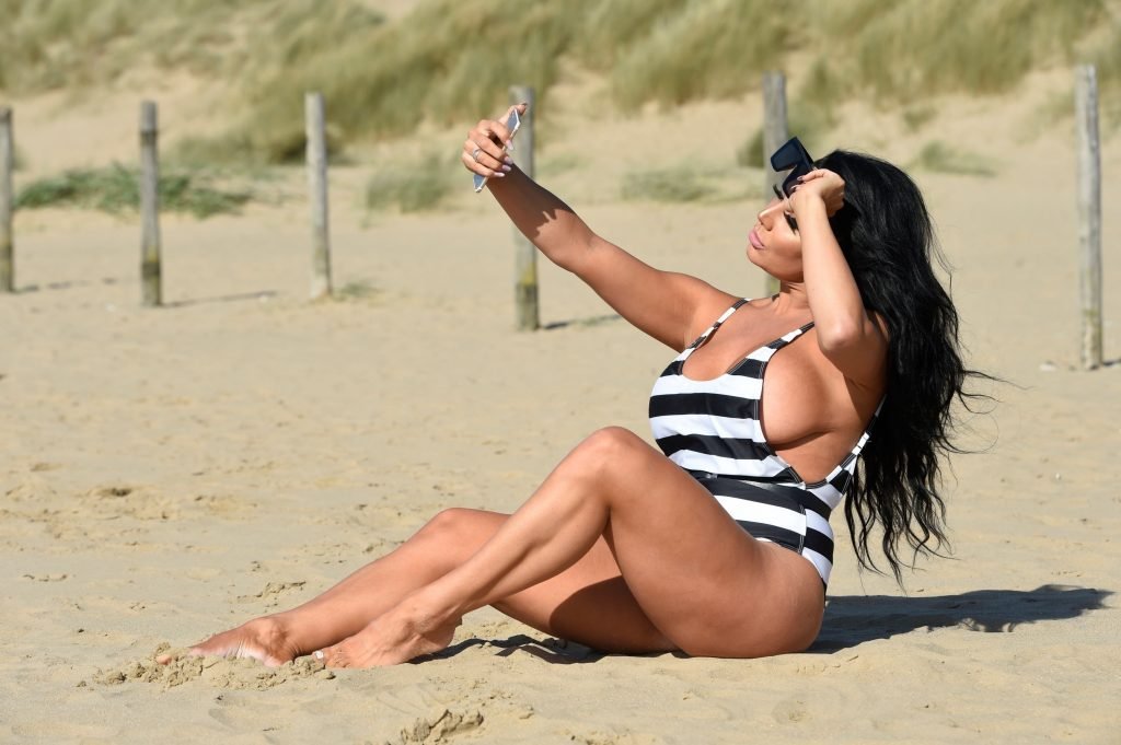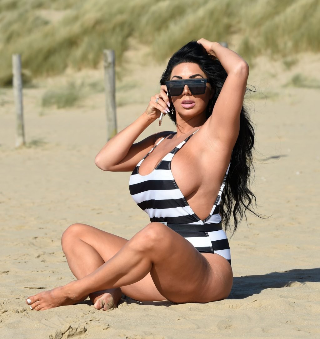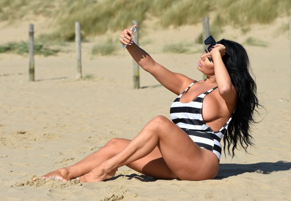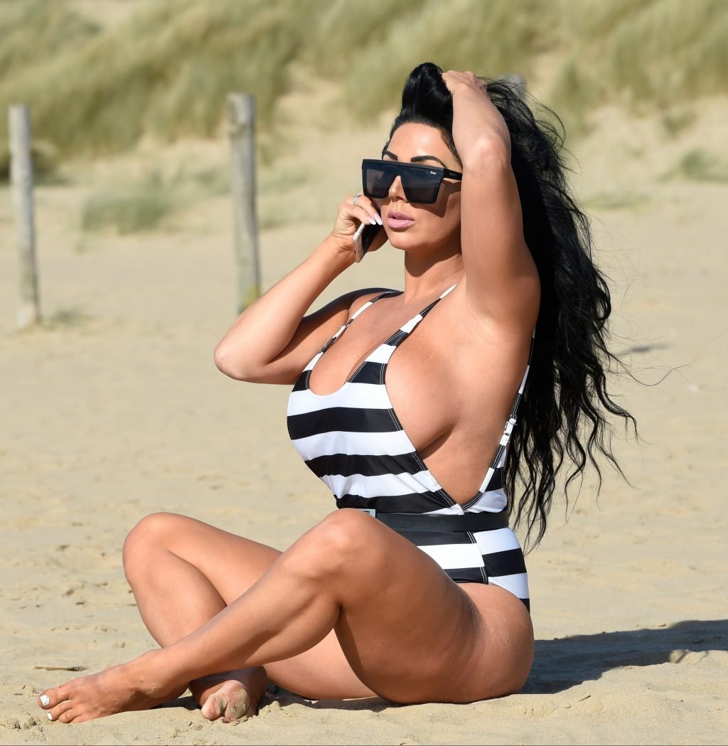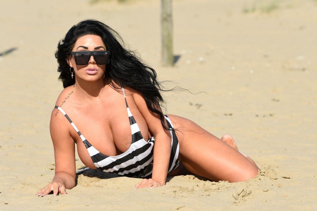 Gagnante du titre de Mannequin Glamour de l’Année 2018, la brune sexy Grace J Teal offre un spectacle très voluptueux alors qu’elle profite de la plage pendant ses vacances en Espagne, 10/04/2018.