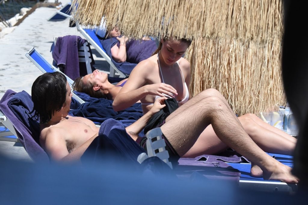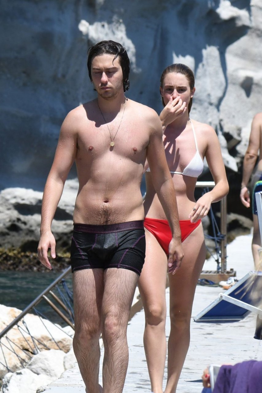 L’acteur américain Nat Wolff et sa petite amie Grace Van Patten ont été vus en train de profiter de la plage à l’hôtel Regina Isabella à Ischia, en Italie, le 15/07/2019.