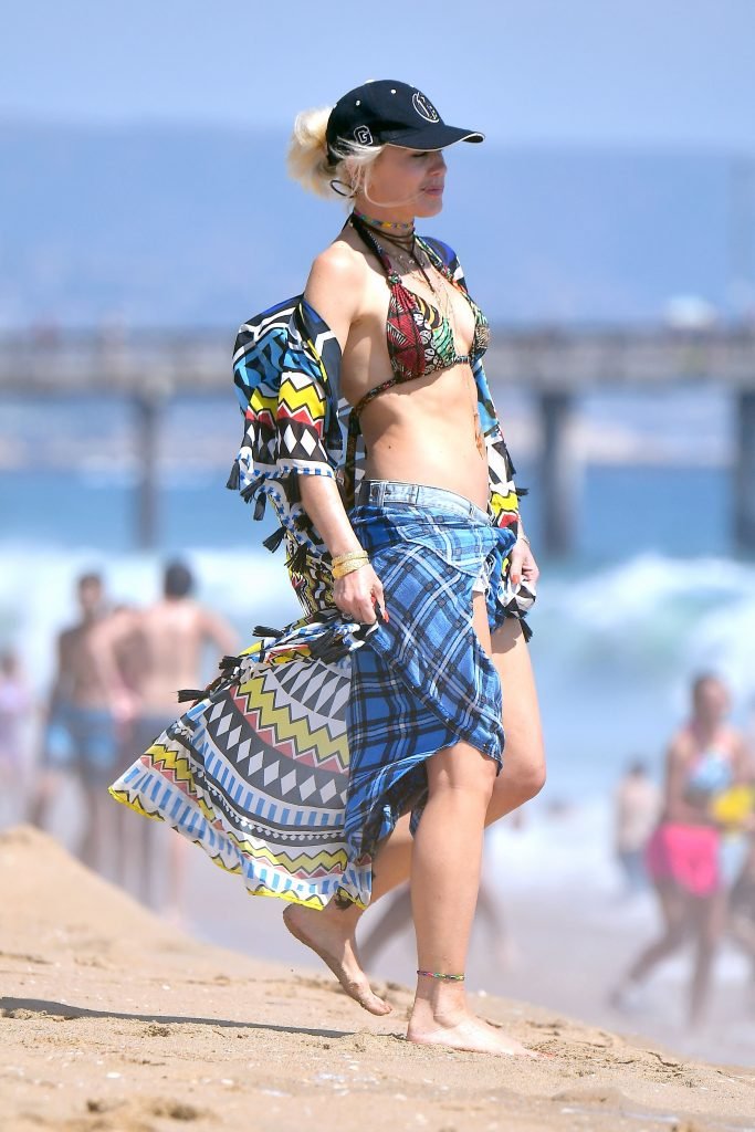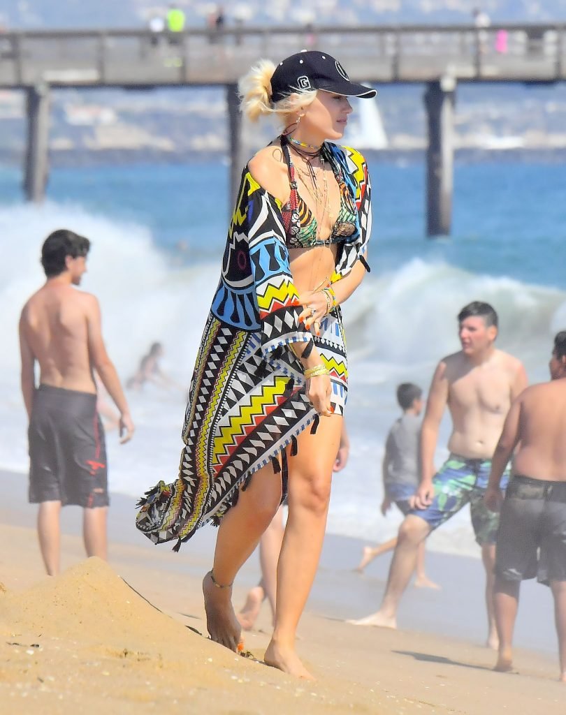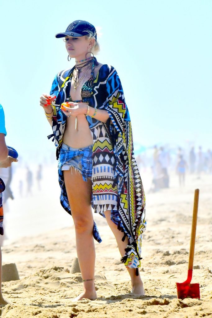 Gwen Stefani affiche son corps super tonique en bikini à New Port Beach, Californie, 30/07/2017. Gwen Renée Stefani est une chanteuse, auteure-compositrice, créatrice de mode, actrice et personnalité de la télévision américaine. Âge : 47.