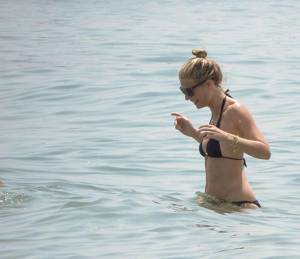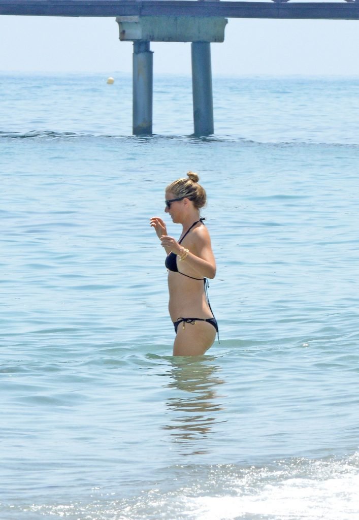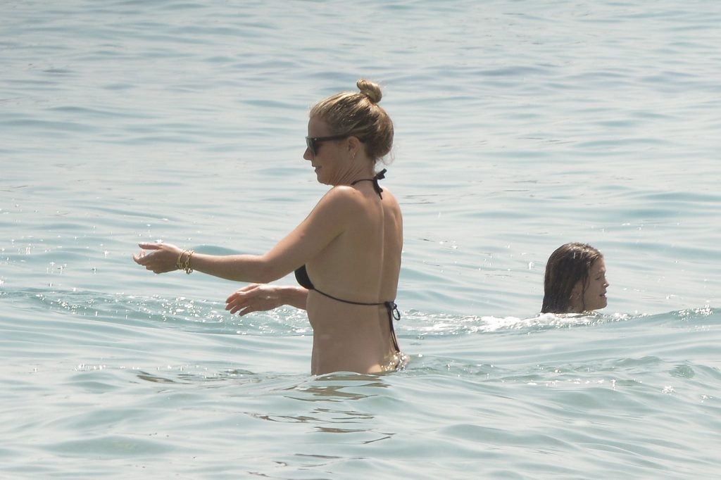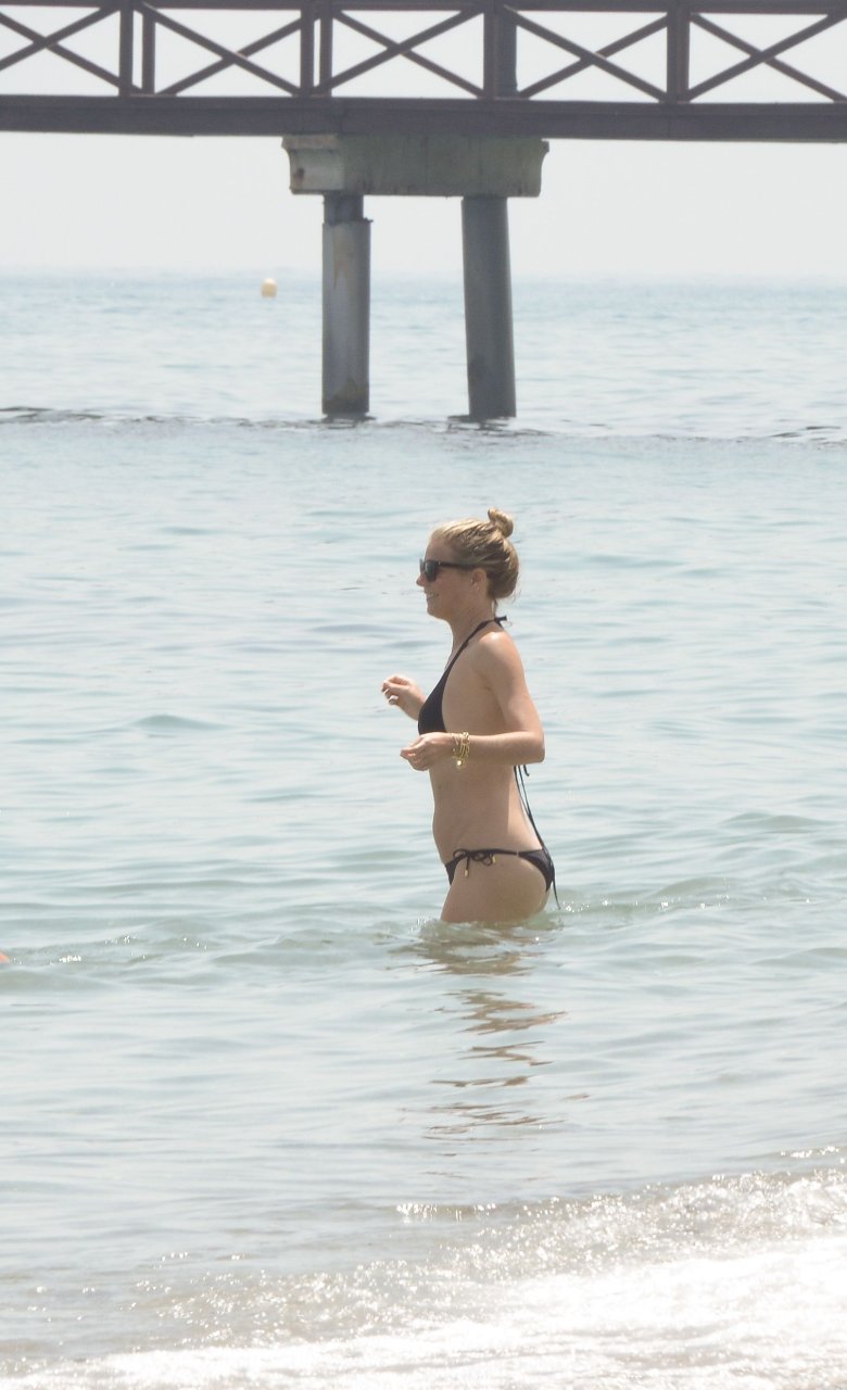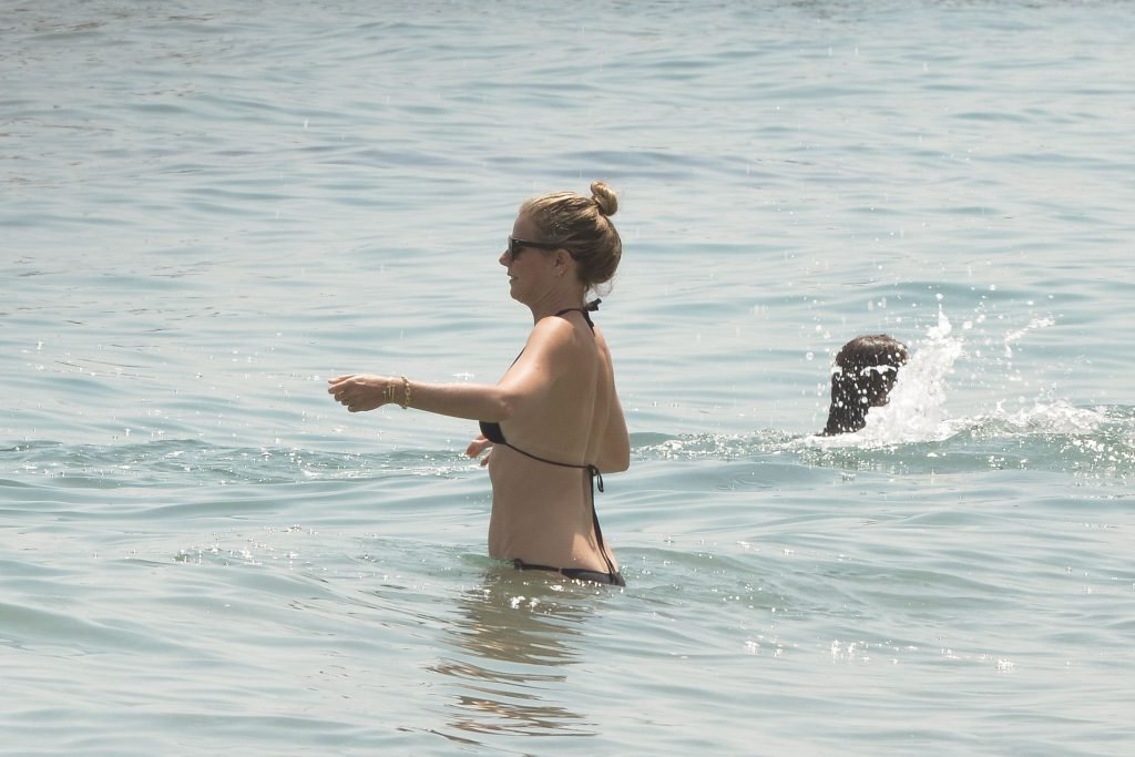 Gwyneth Paltrow porte un bikini noir sur la plage de Marbella, 24/06/2017. Gwyneth Paltrow est une actrice américaine (Shakespeare in Love), chanteuse et auteure culinaire. Âge : 44 ans.