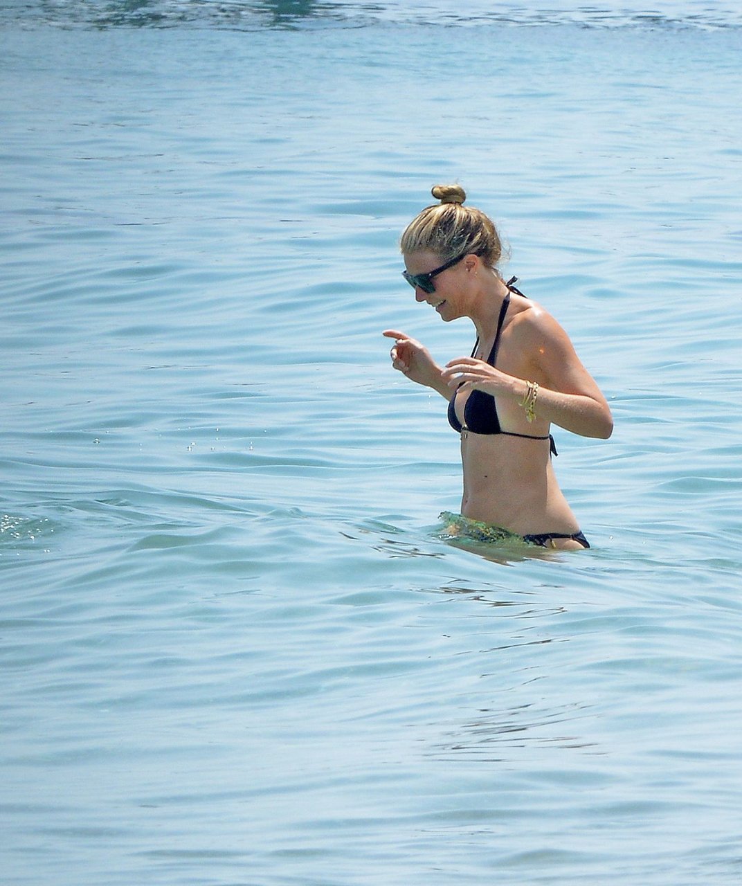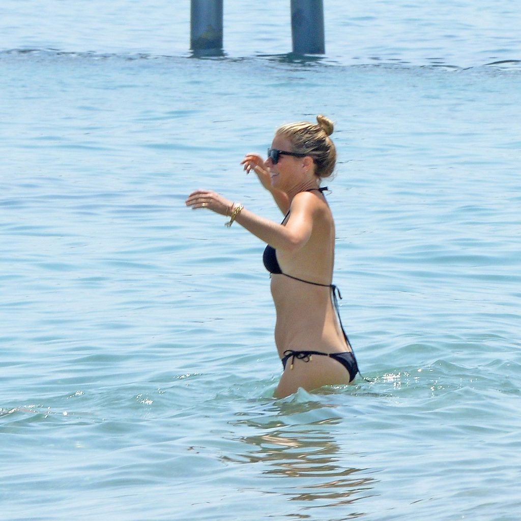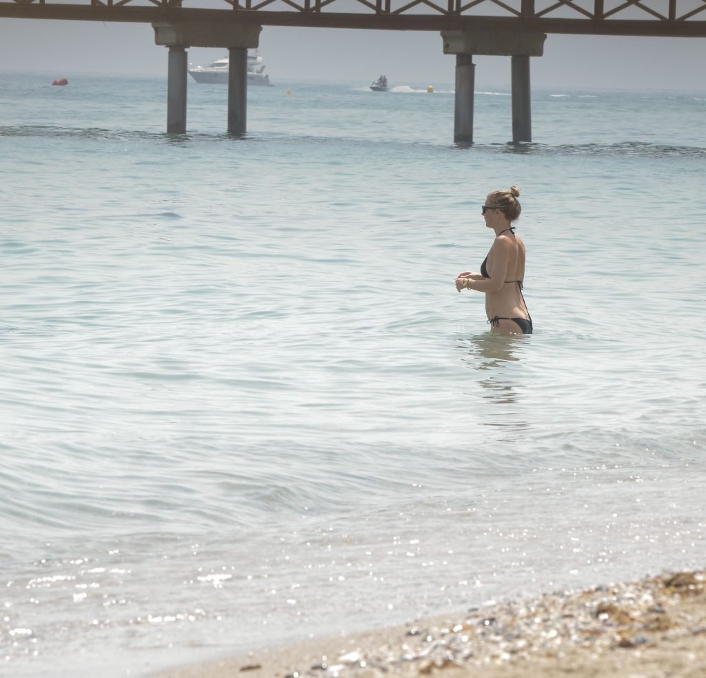 Gwyneth Paltrow porte un bikini noir sur la plage de Marbella, 24/06/2017. Gwyneth Paltrow est une actrice américaine (Shakespeare in Love), chanteuse et auteure culinaire. Âge : 44 ans.
