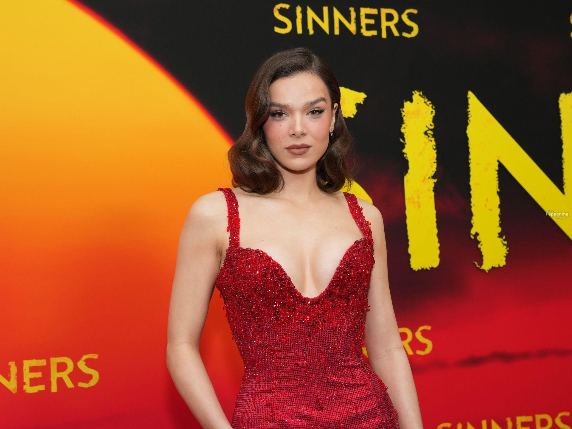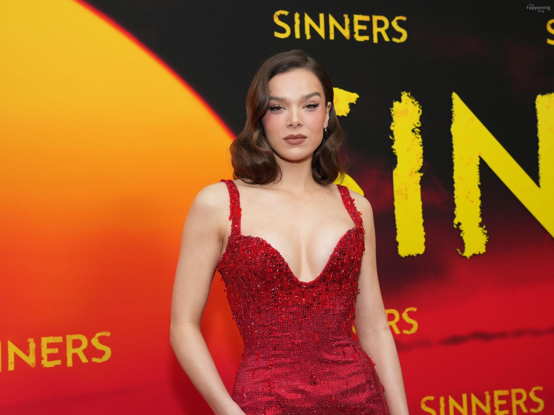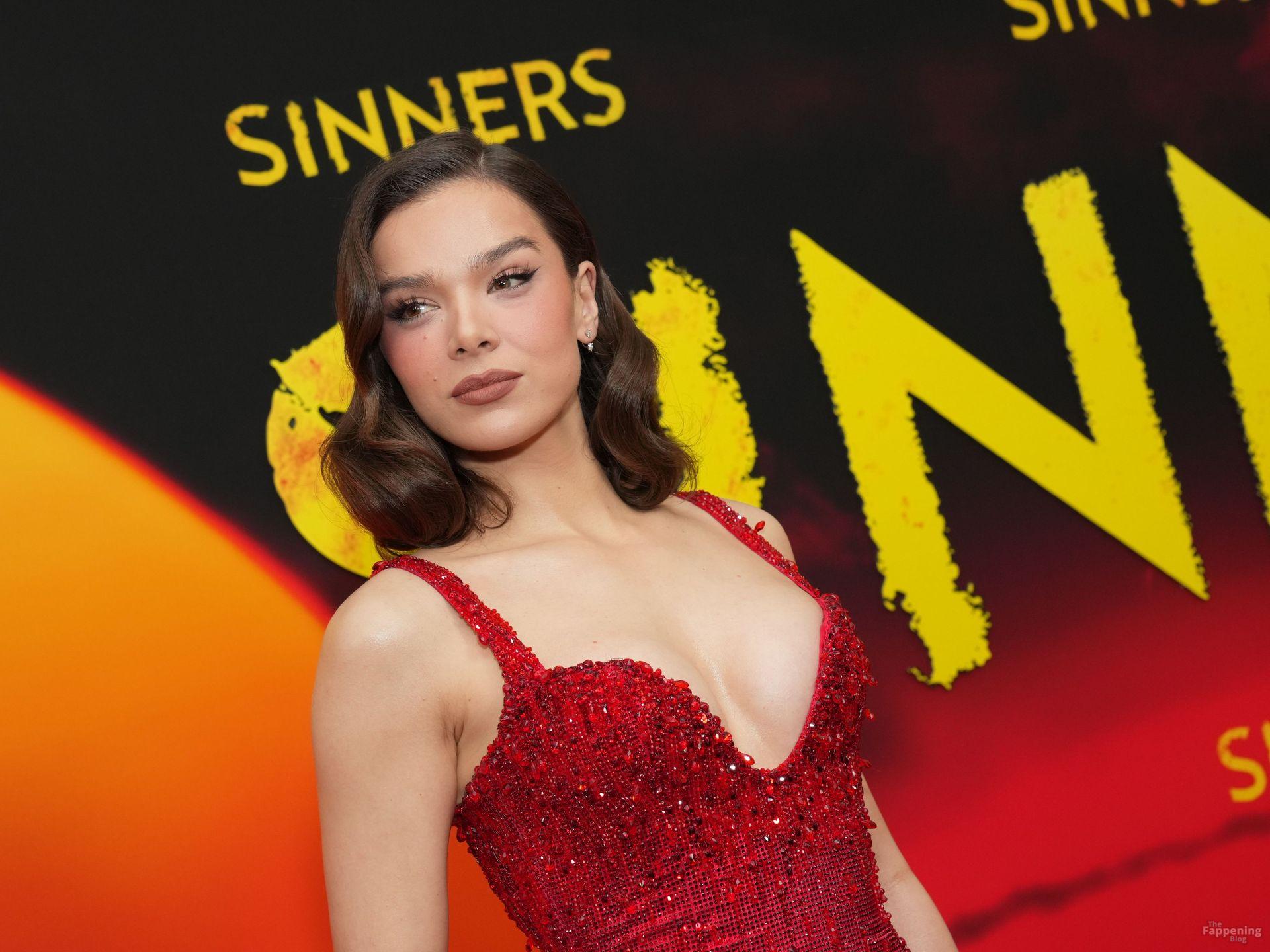 L’actrice Hailee Steinfeld dévoile son décolleté et sa magnifique silhouette dans une robe rouge lors de la première de « Sinners » à New York.