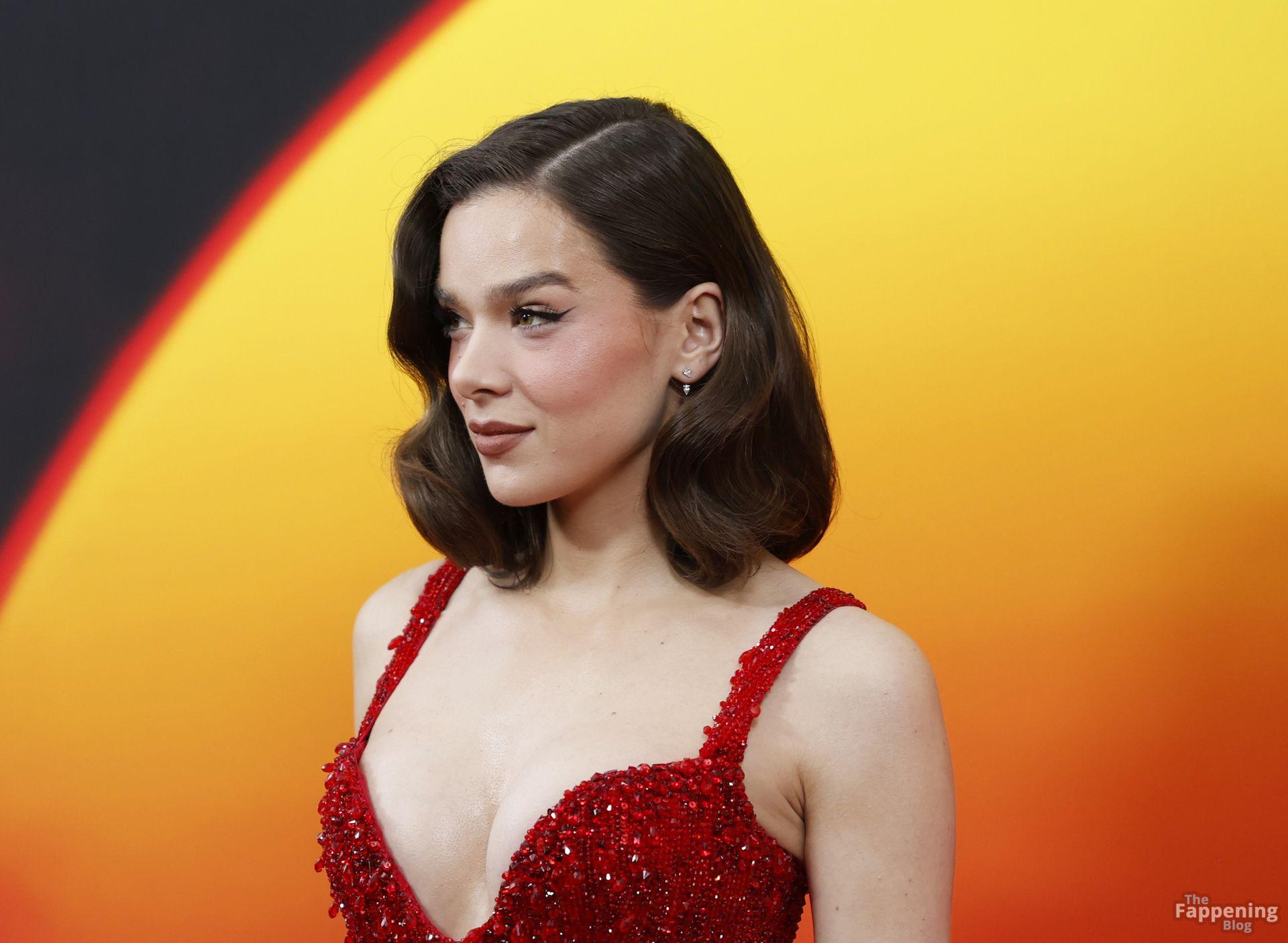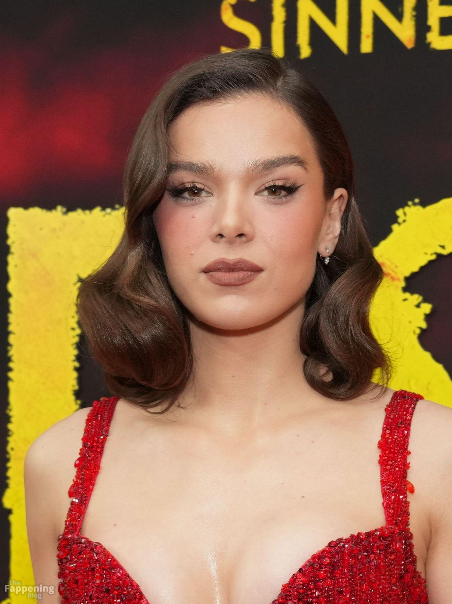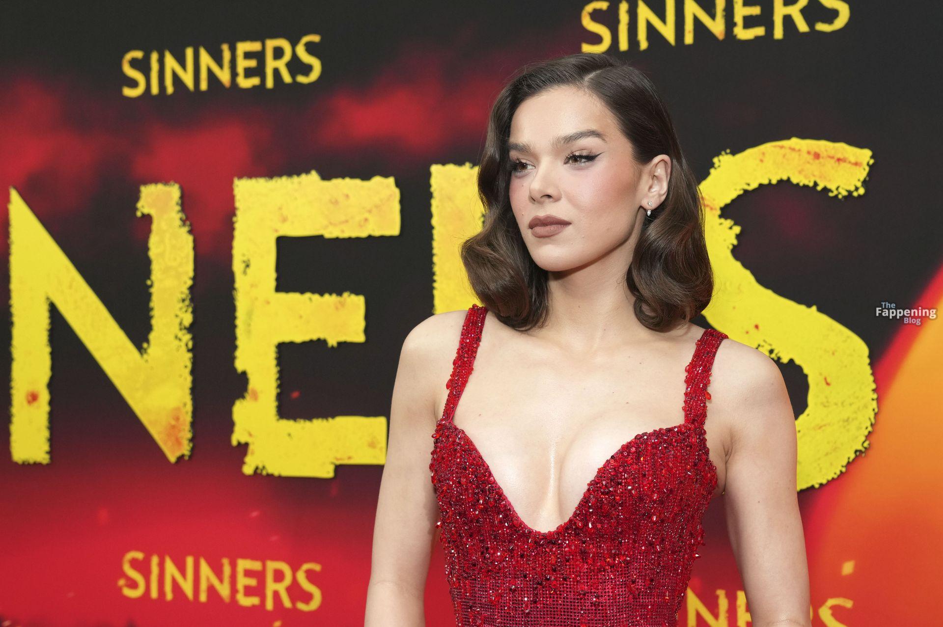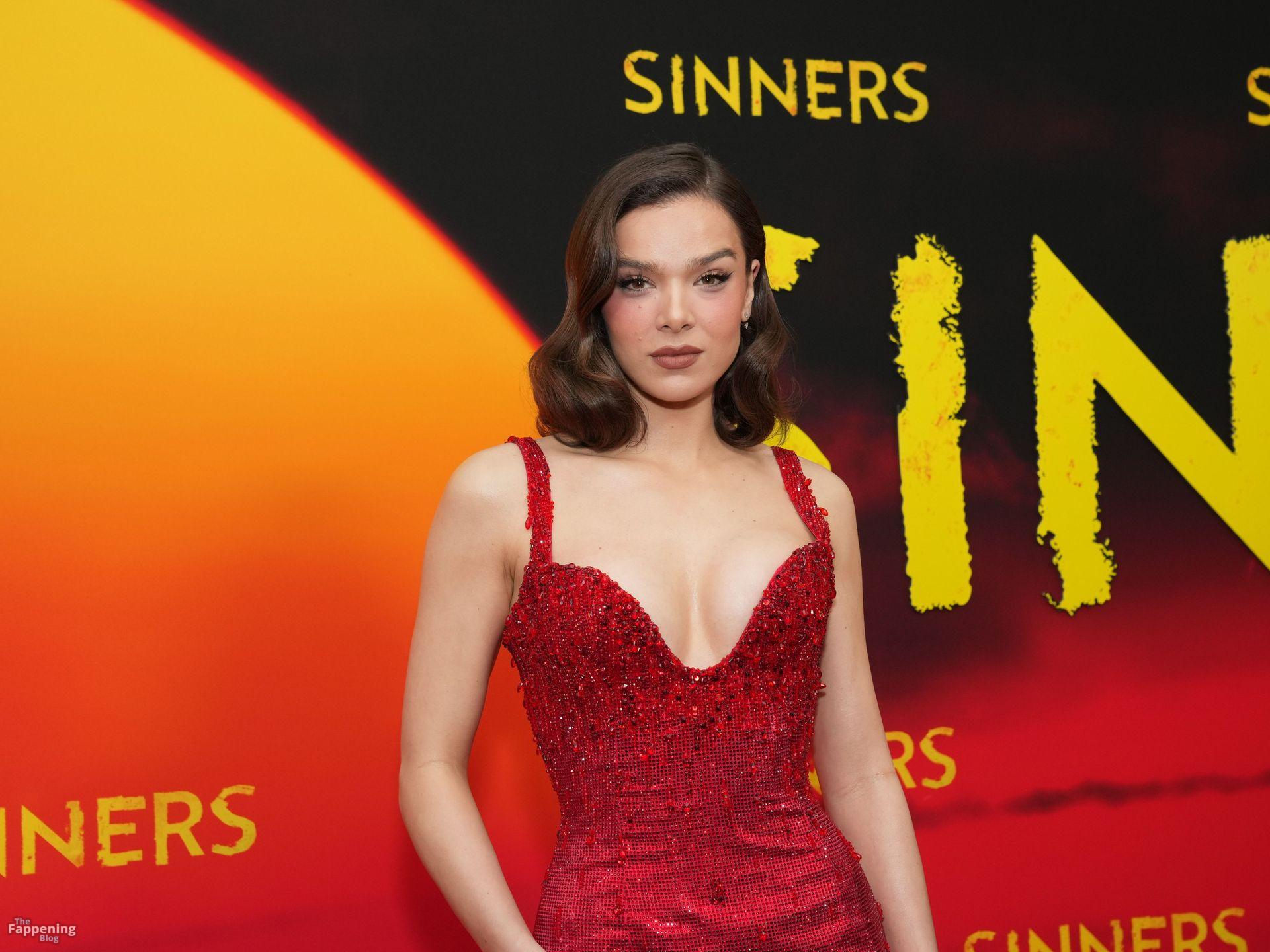 L’actrice Hailee Steinfeld dévoile son décolleté et sa magnifique silhouette dans une robe rouge lors de la première de « Sinners » à New York.
