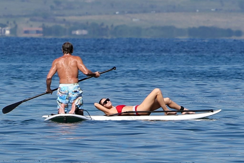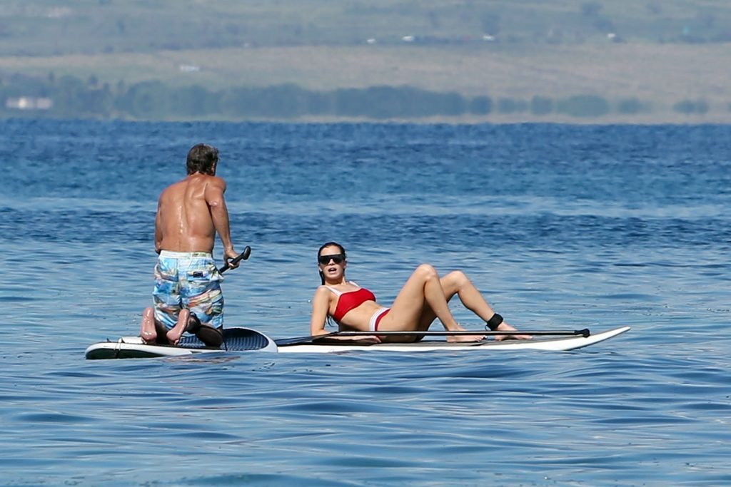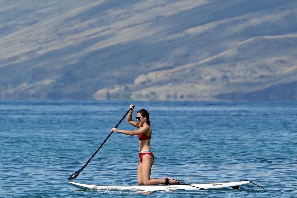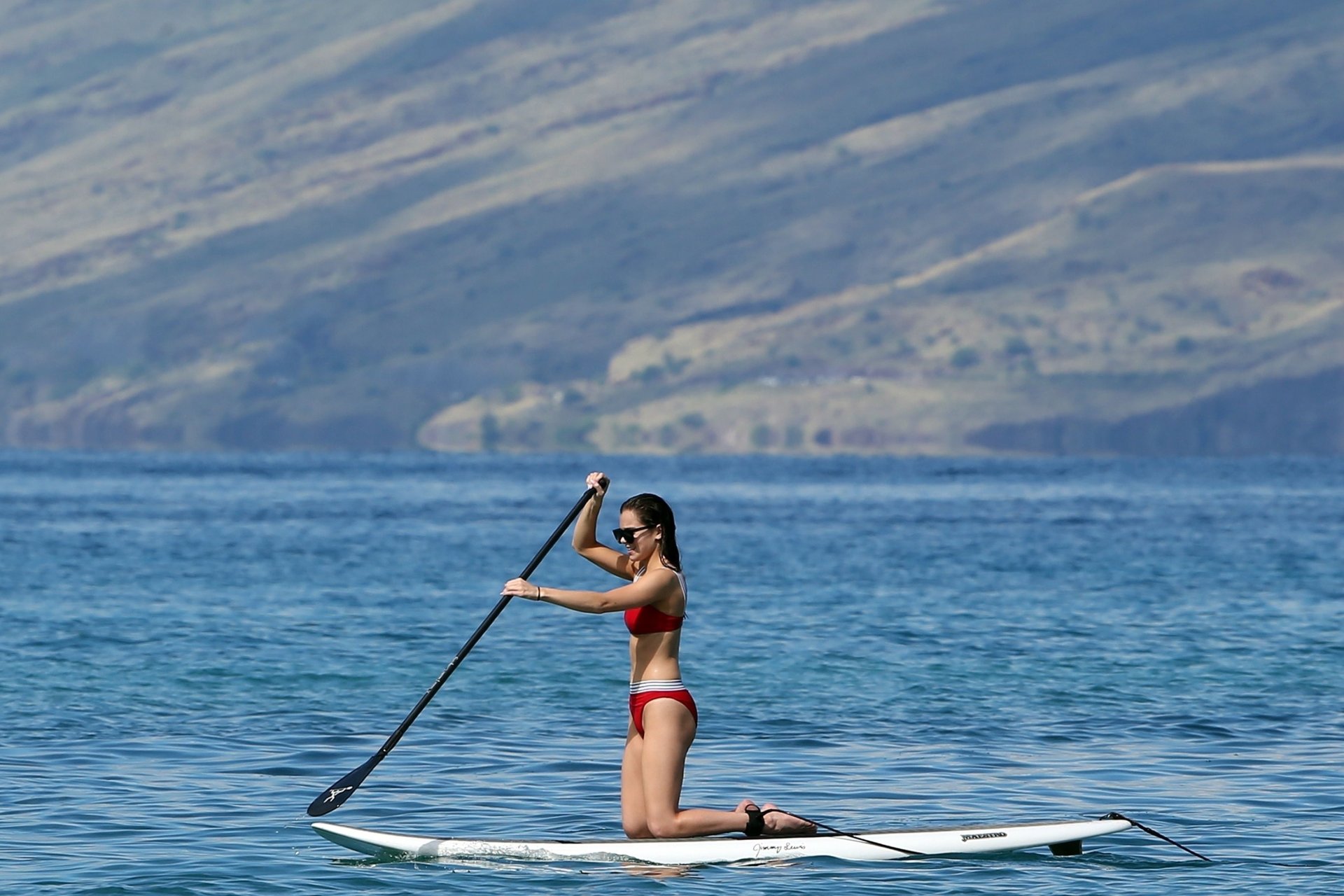 Hailee Steinfeld fait du paddle avec sa famille le jour de Noël à Hawaï, le 25/12/2017. La brune de 21 ans met en valeur sa silhouette dans un bikini rouge vif tout en profitant du plein air.