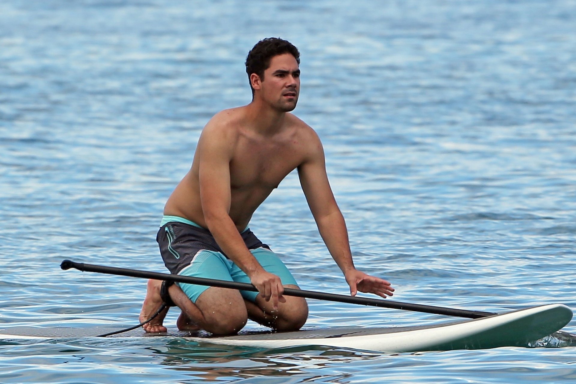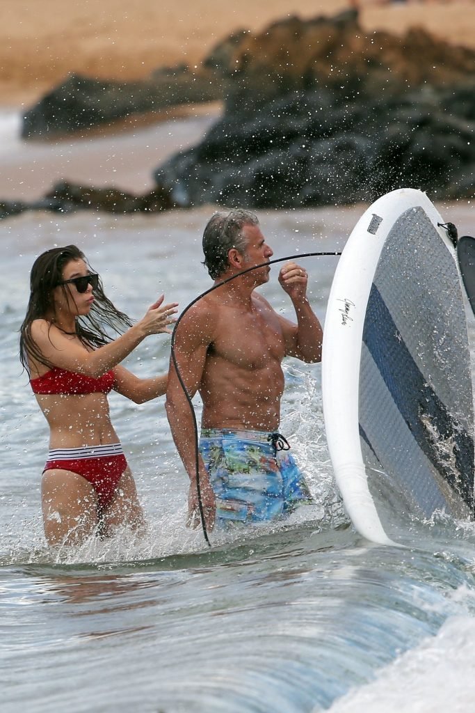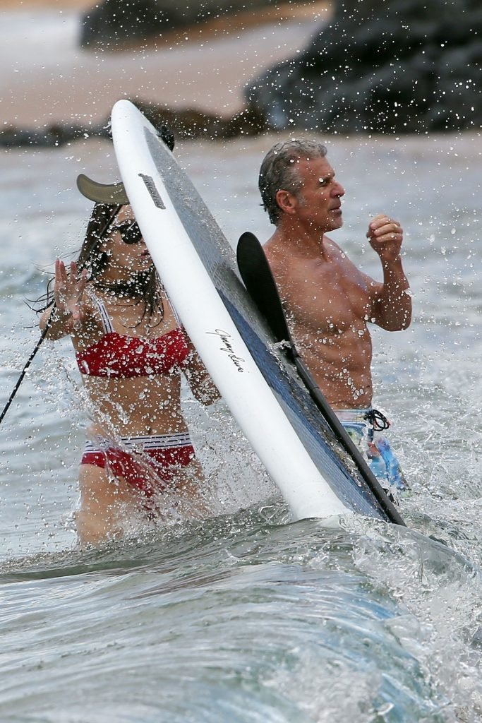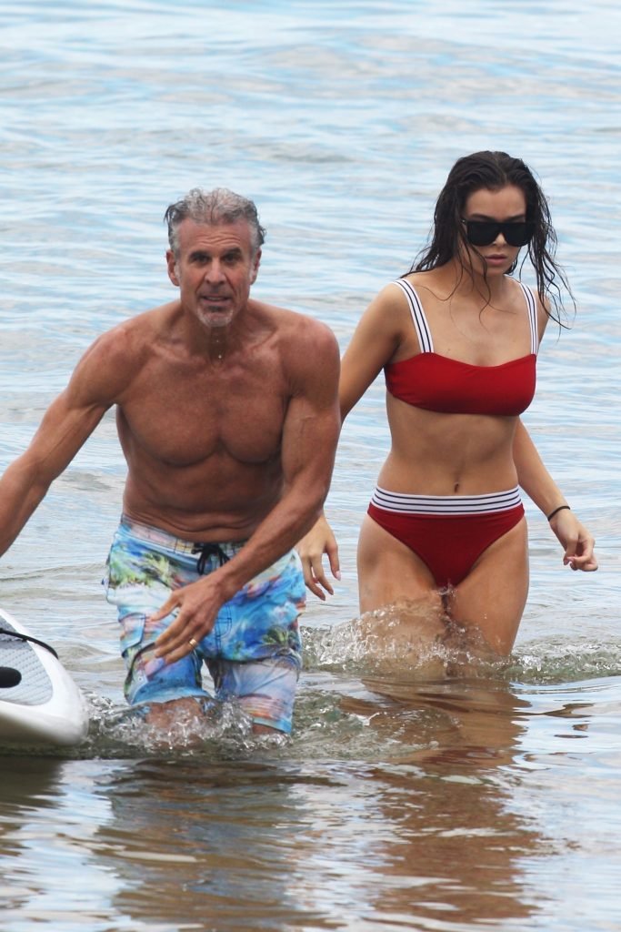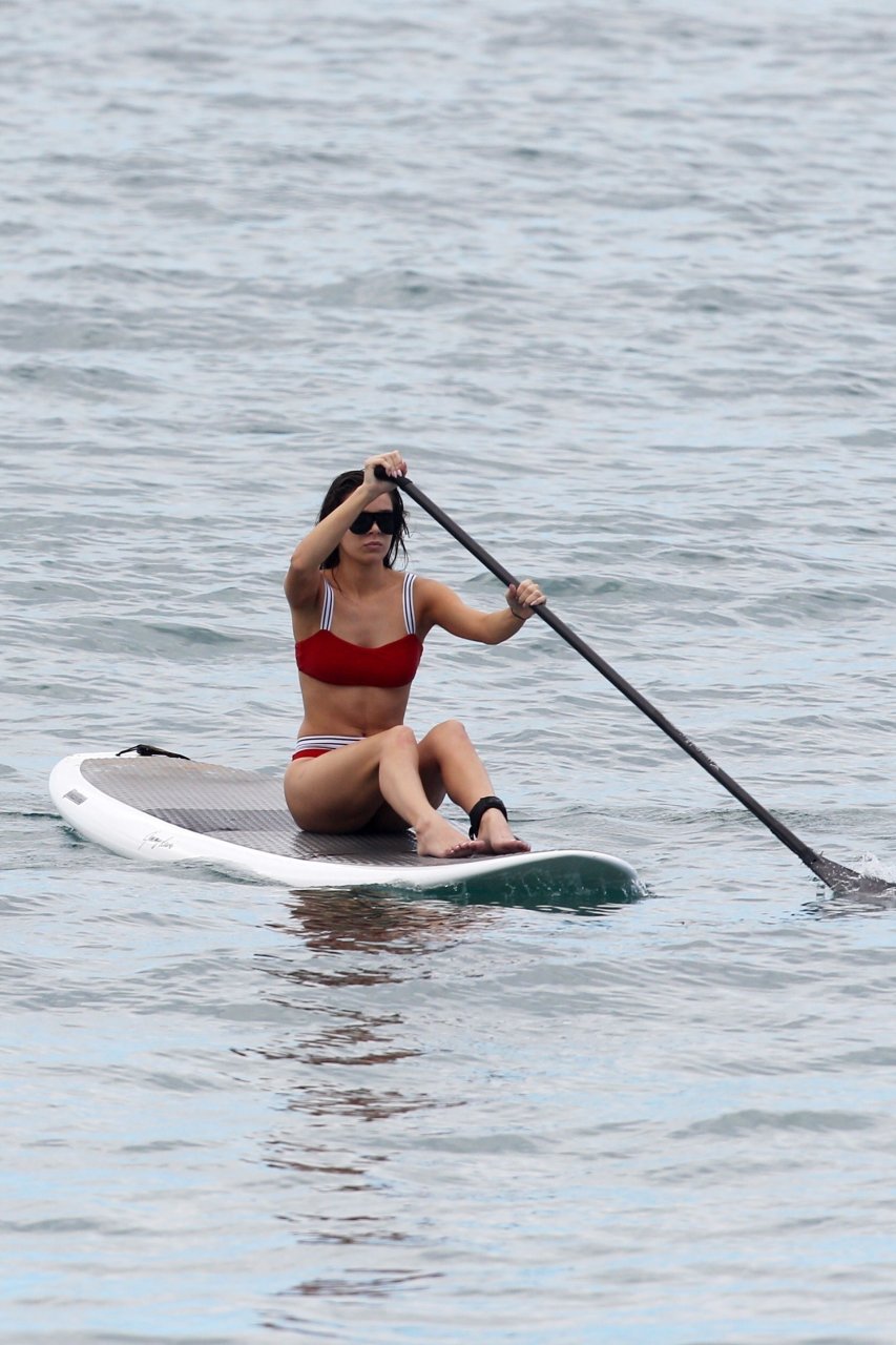 Hailee Steinfeld fait du paddle avec sa famille le jour de Noël à Hawaï, le 25/12/2017. La brune de 21 ans met en valeur sa silhouette dans un bikini rouge vif tout en profitant du plein air.