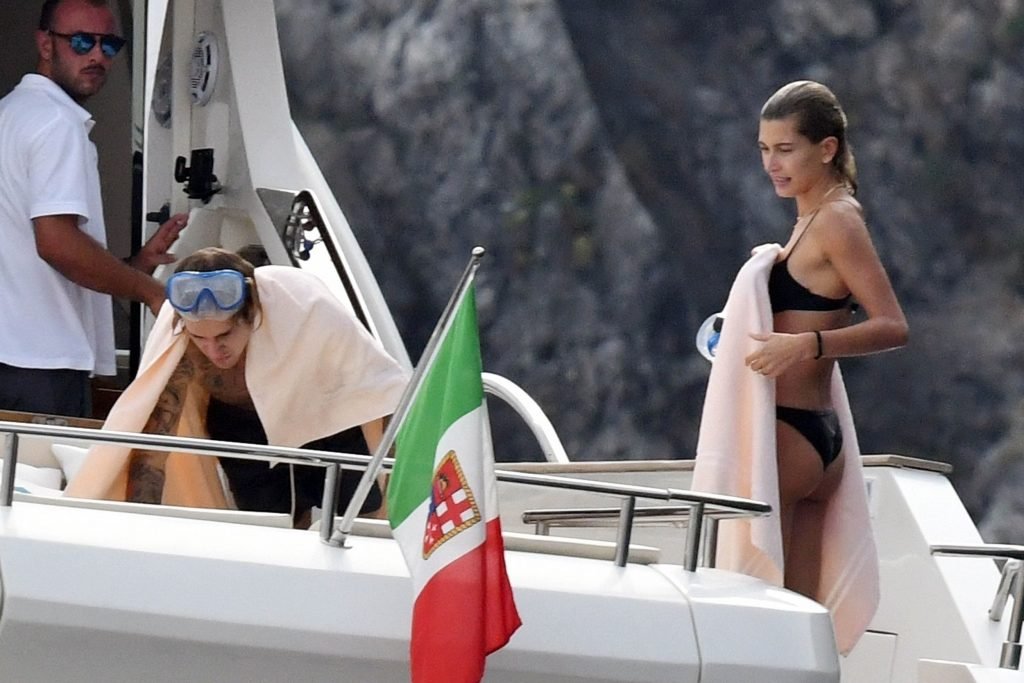 Justin Bieber et Hailey Baldwin profitent d’un moment de détente ensemble sur la côte Amalfitaine pendant la Fashion Week de Milan 2018.