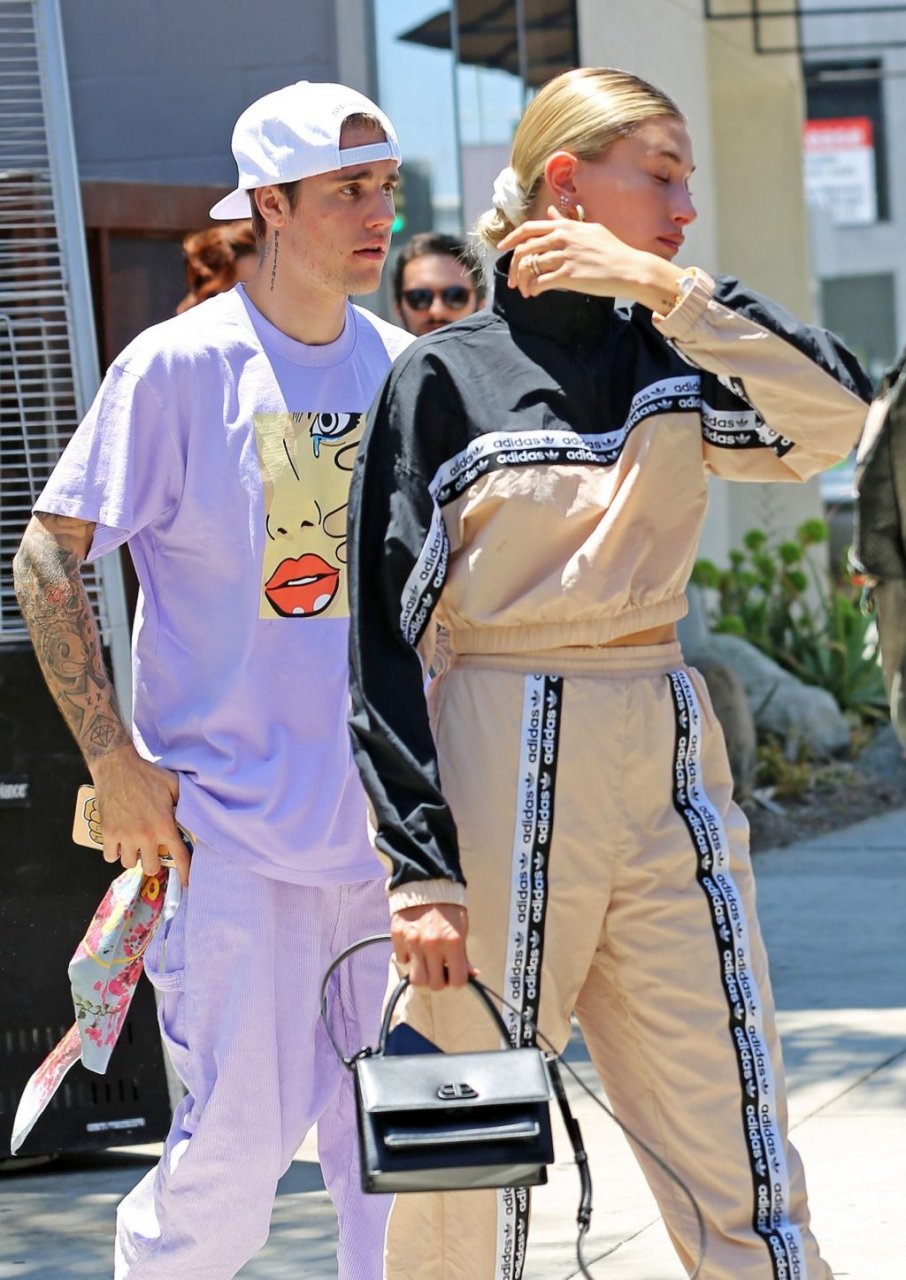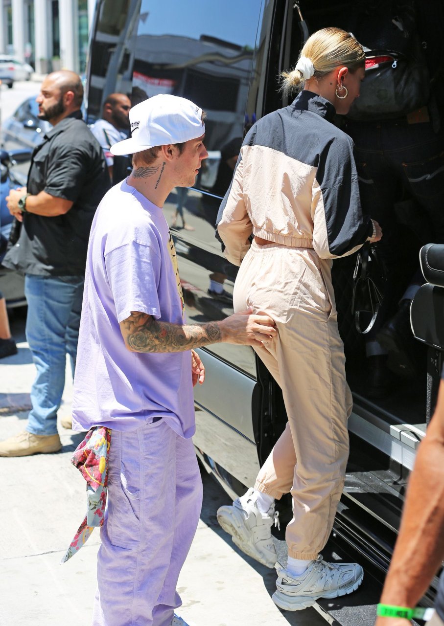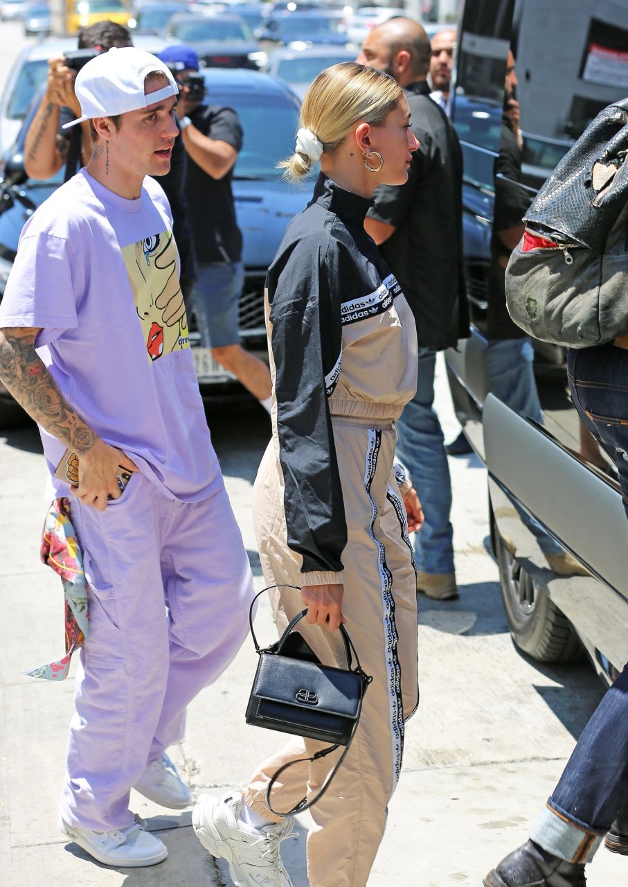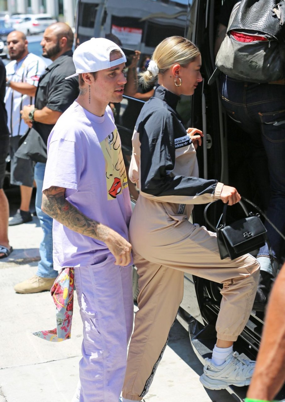 Justin Bieber et Hailey Baldwin sortent dans des tenues accrocheuses accompagnés de membres de leur église à Los Angeles, 20/07/2019.