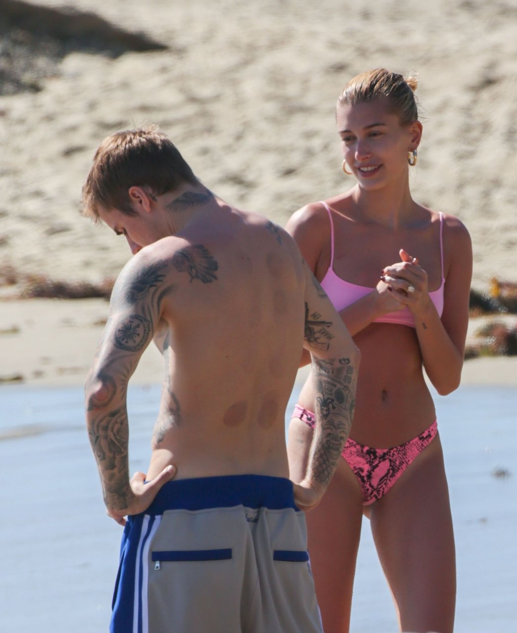Justin Bieber et sa femme Hailey Baldwin profitent de leur journée au soleil, 17/03/2019. Le couple en difficulté laisse de côté ses soucis en se rendant à la plage et en se reconnectant après le traitement de Bieber pour la dépression. Un Bieber barbu a exhibé ses tatouages et ses abdominaux sculptés, tandis que le mannequin Hailey était ravissante en rose dans un bikini très petit.