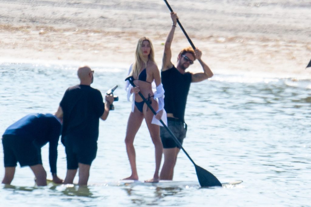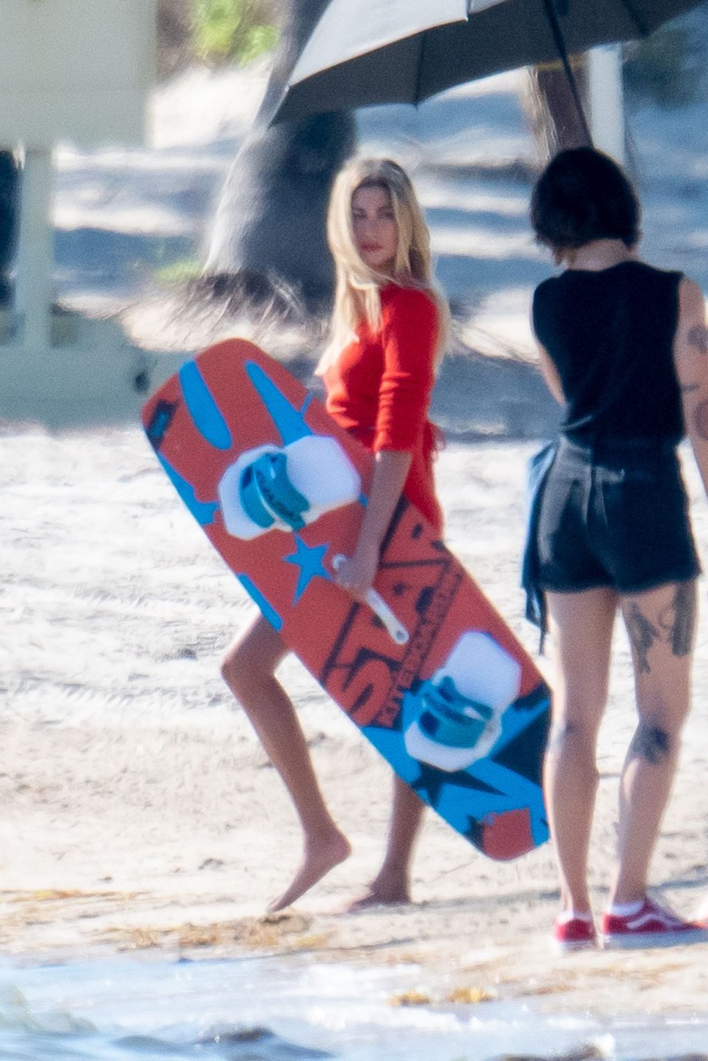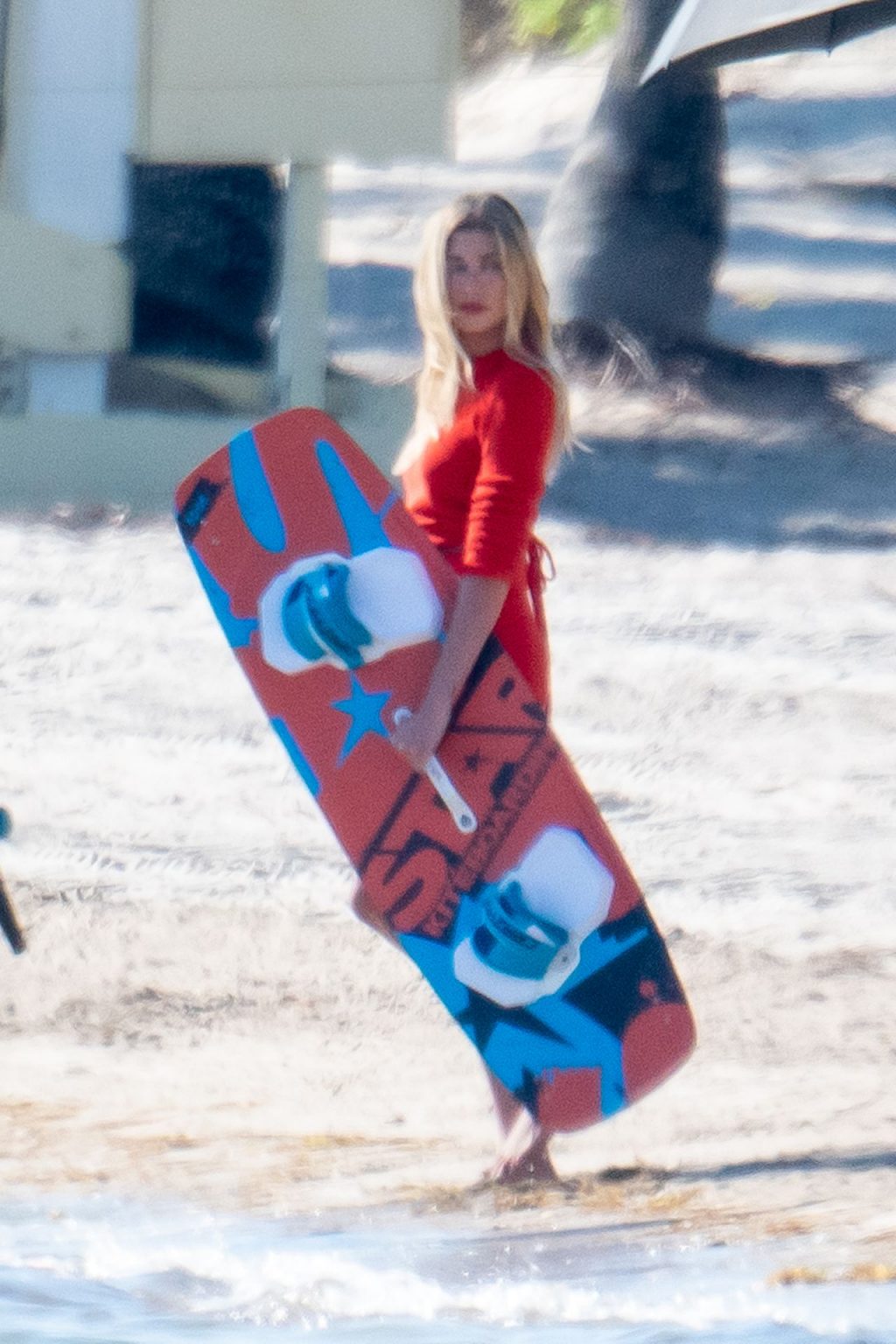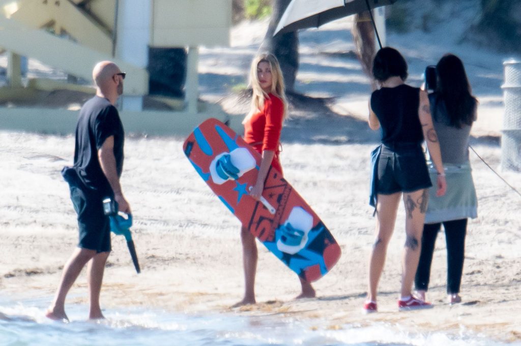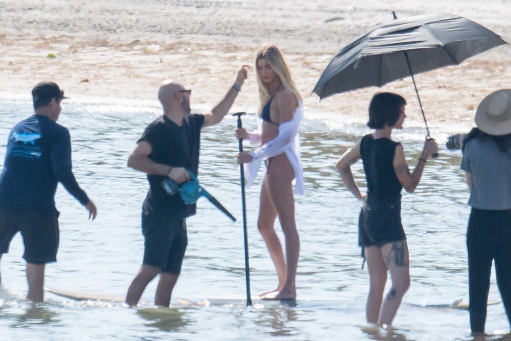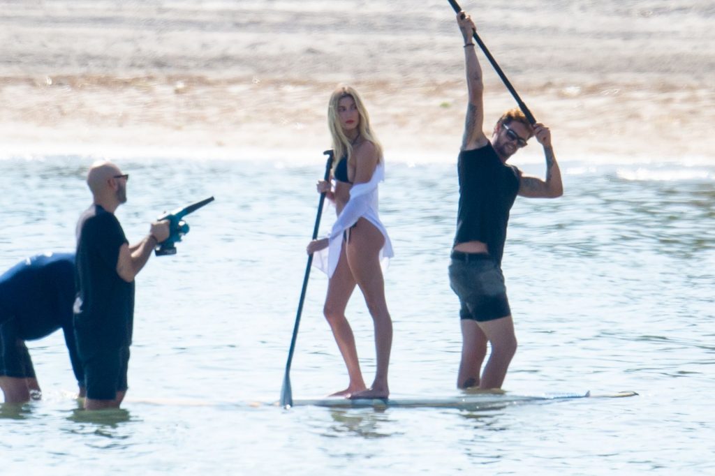 Hailey Bieber est vue lors d’une séance photo sur la plage à Miami, le 27/11/2019. Hailey portait de nombreuses tenues pendant la séance photo, où elle a également posé sur une planche de paddle.