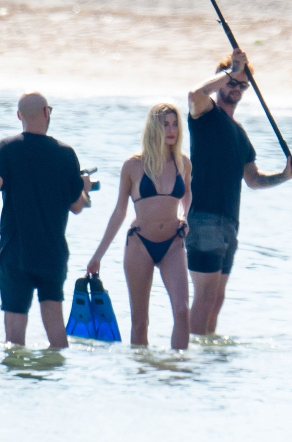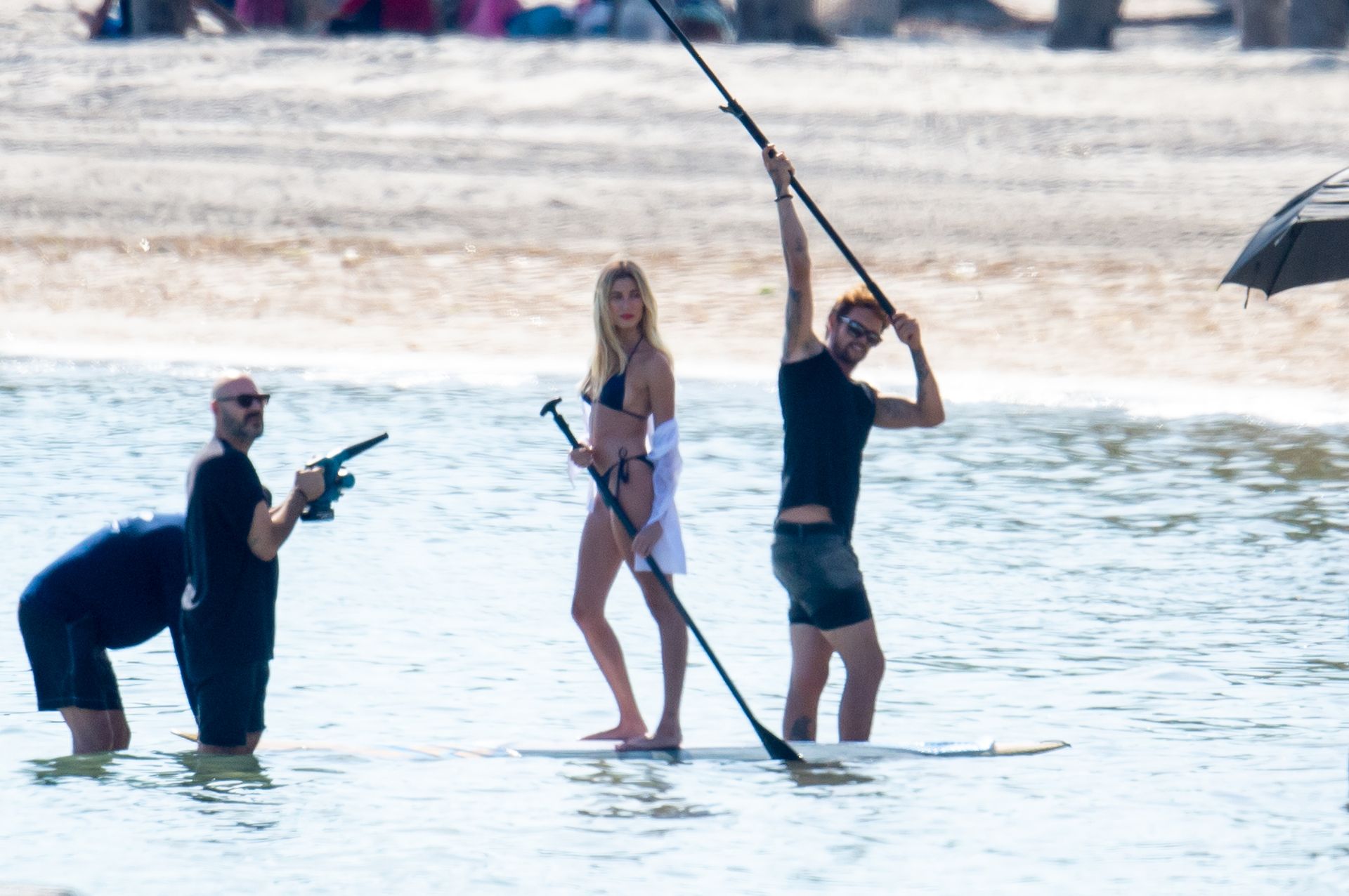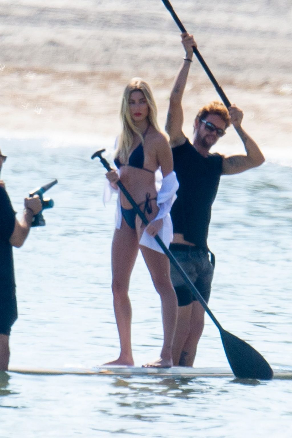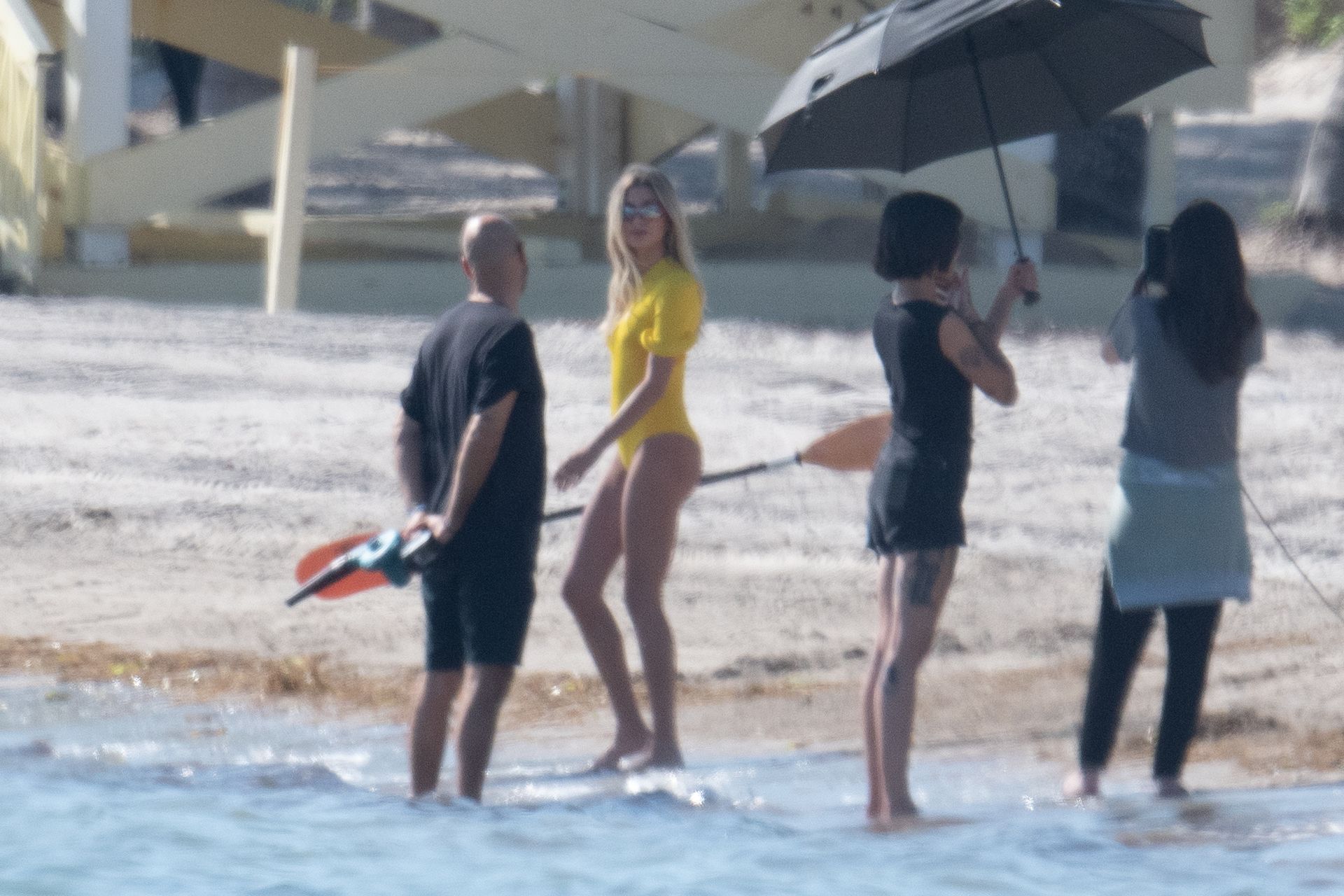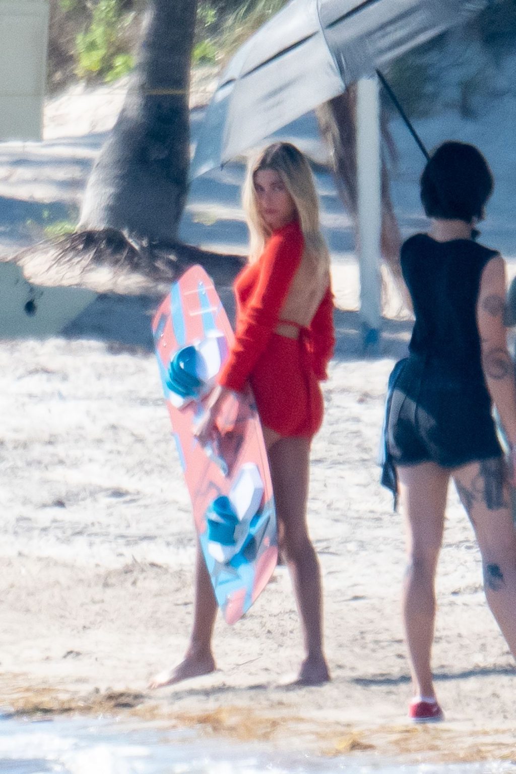 Hailey Bieber est vue lors d’une séance photo sur la plage à Miami, le 27/11/2019. Hailey portait de nombreuses tenues pendant la séance photo, où elle a également posé sur une planche de paddle.