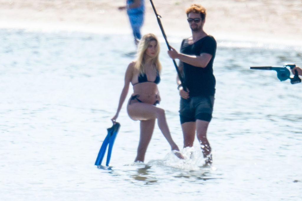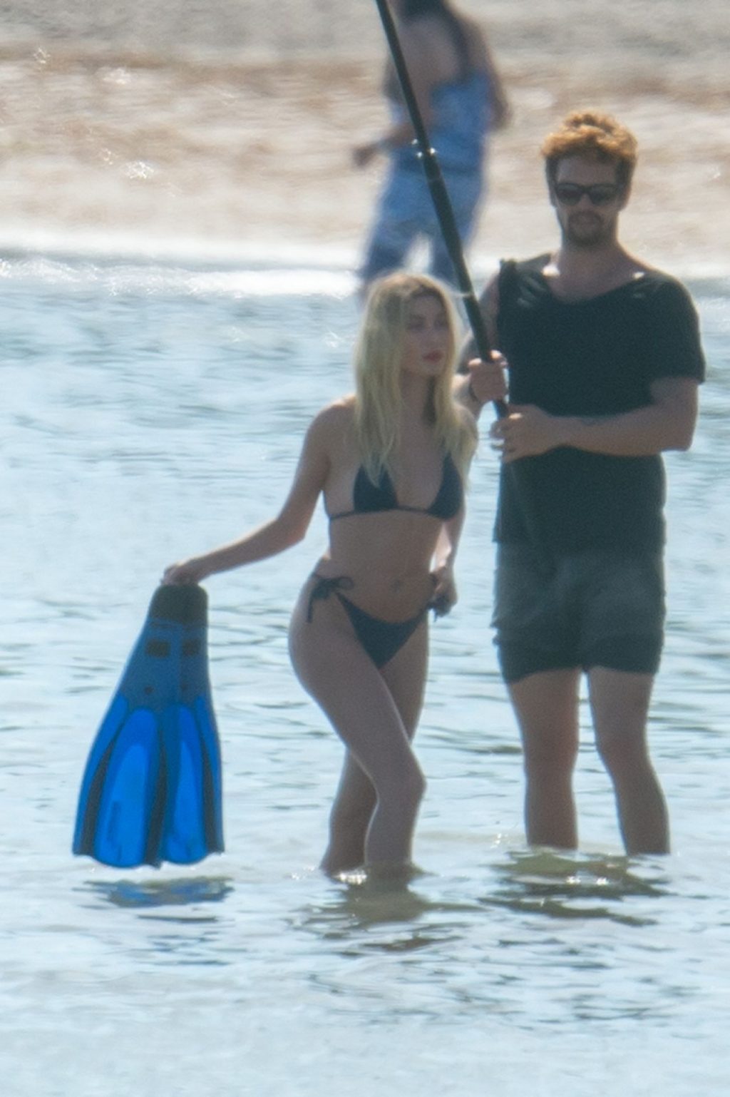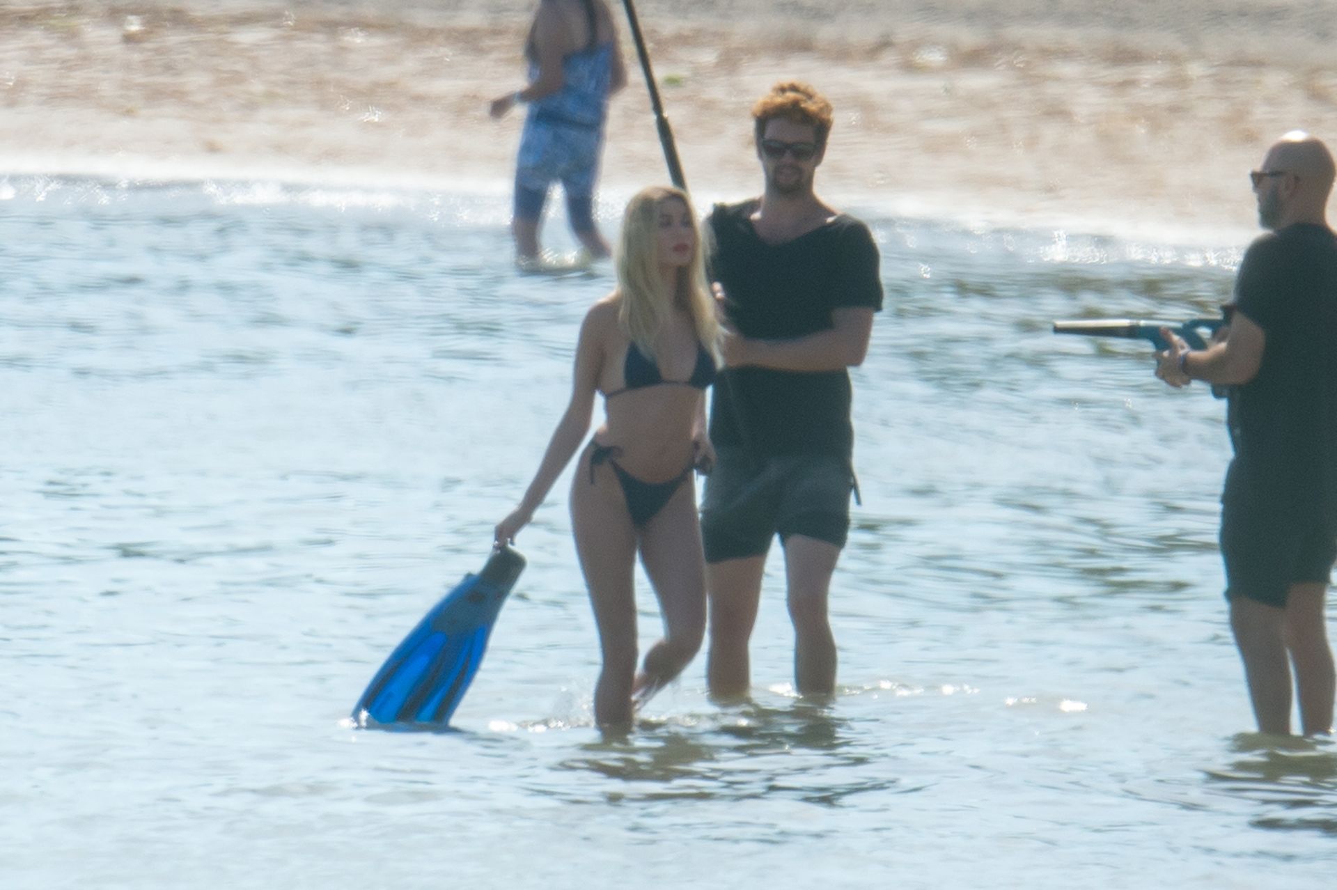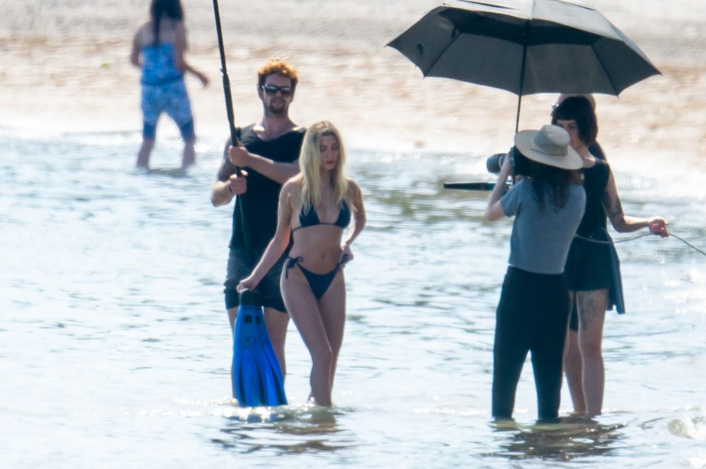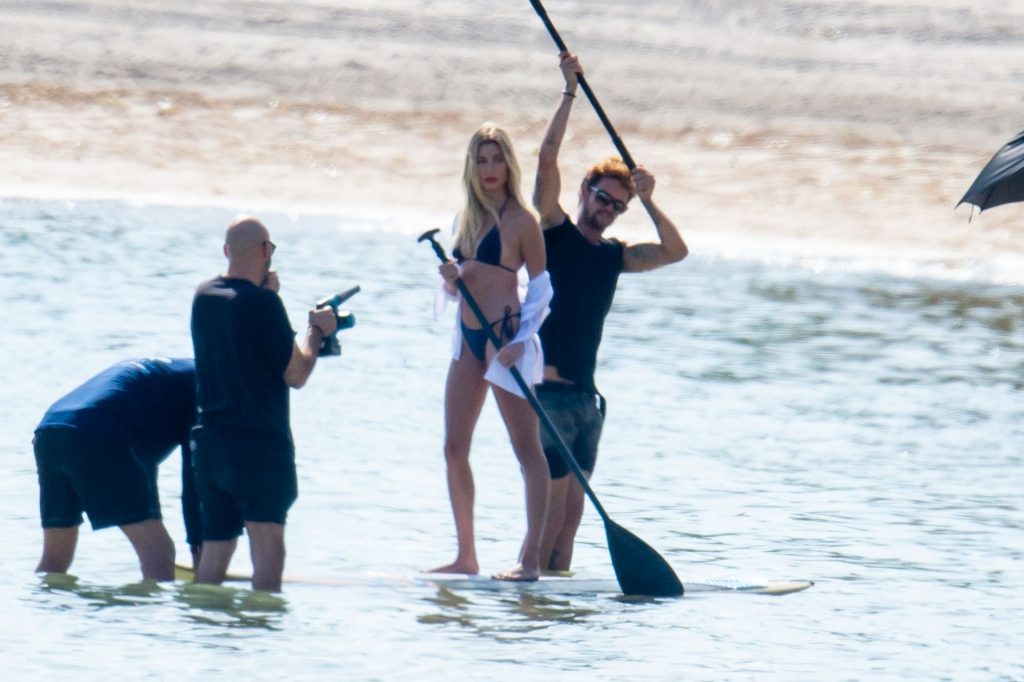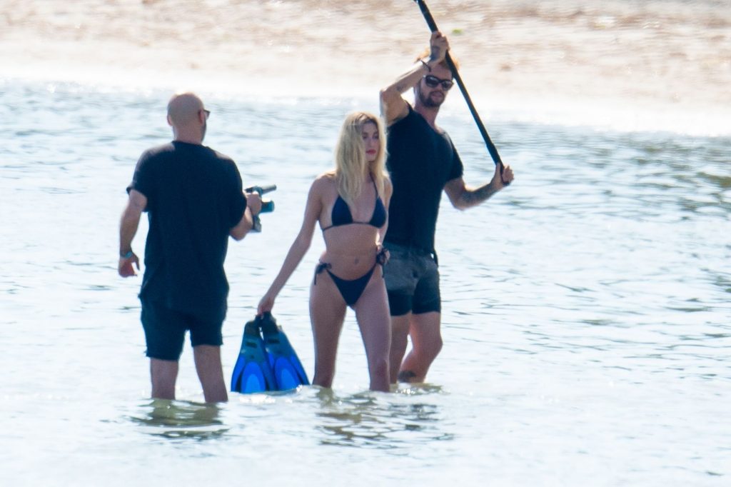 Hailey Bieber est vue lors d’une séance photo sur la plage à Miami, le 27/11/2019. Hailey portait de nombreuses tenues pendant la séance photo, où elle a également posé sur une planche de paddle.