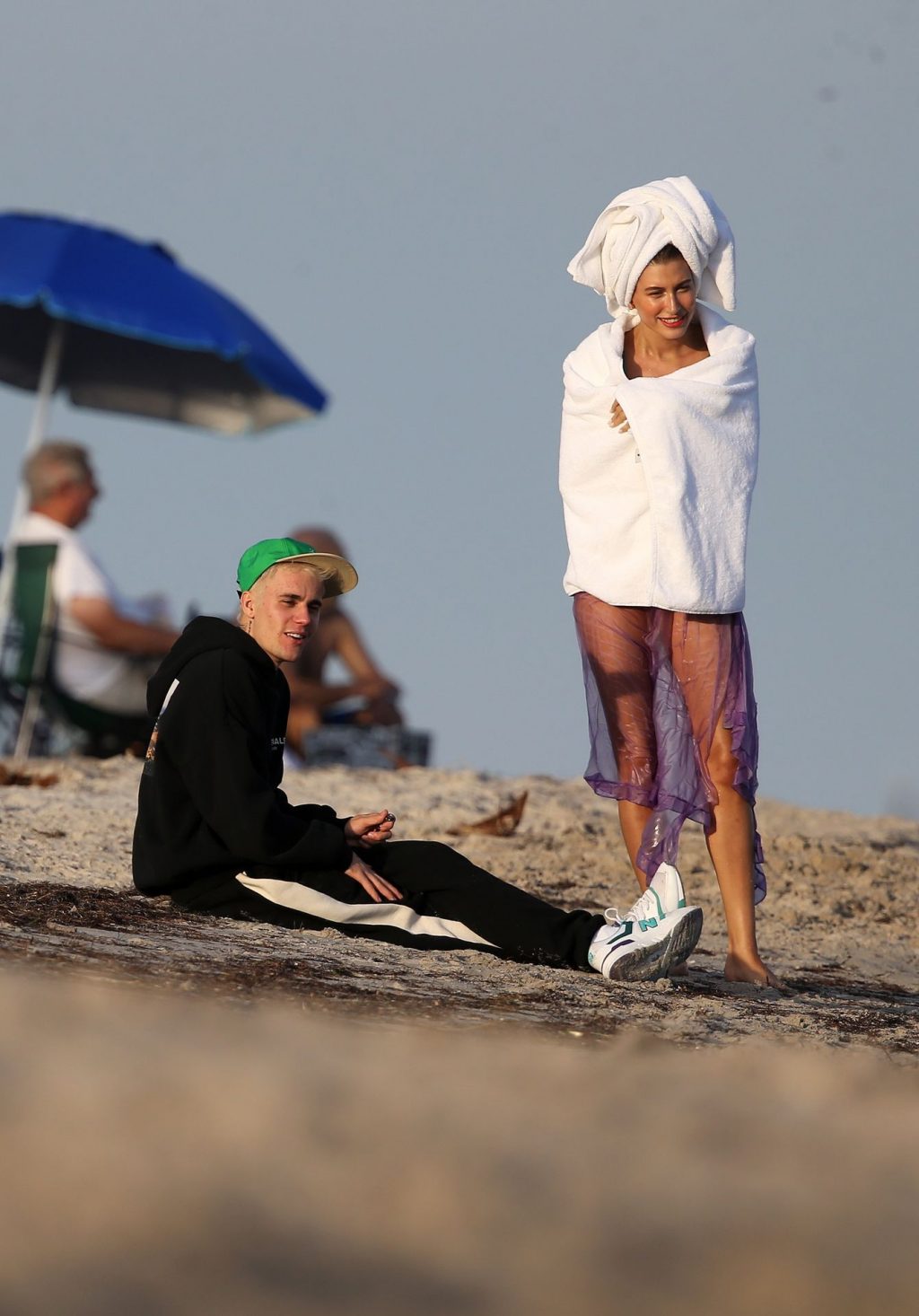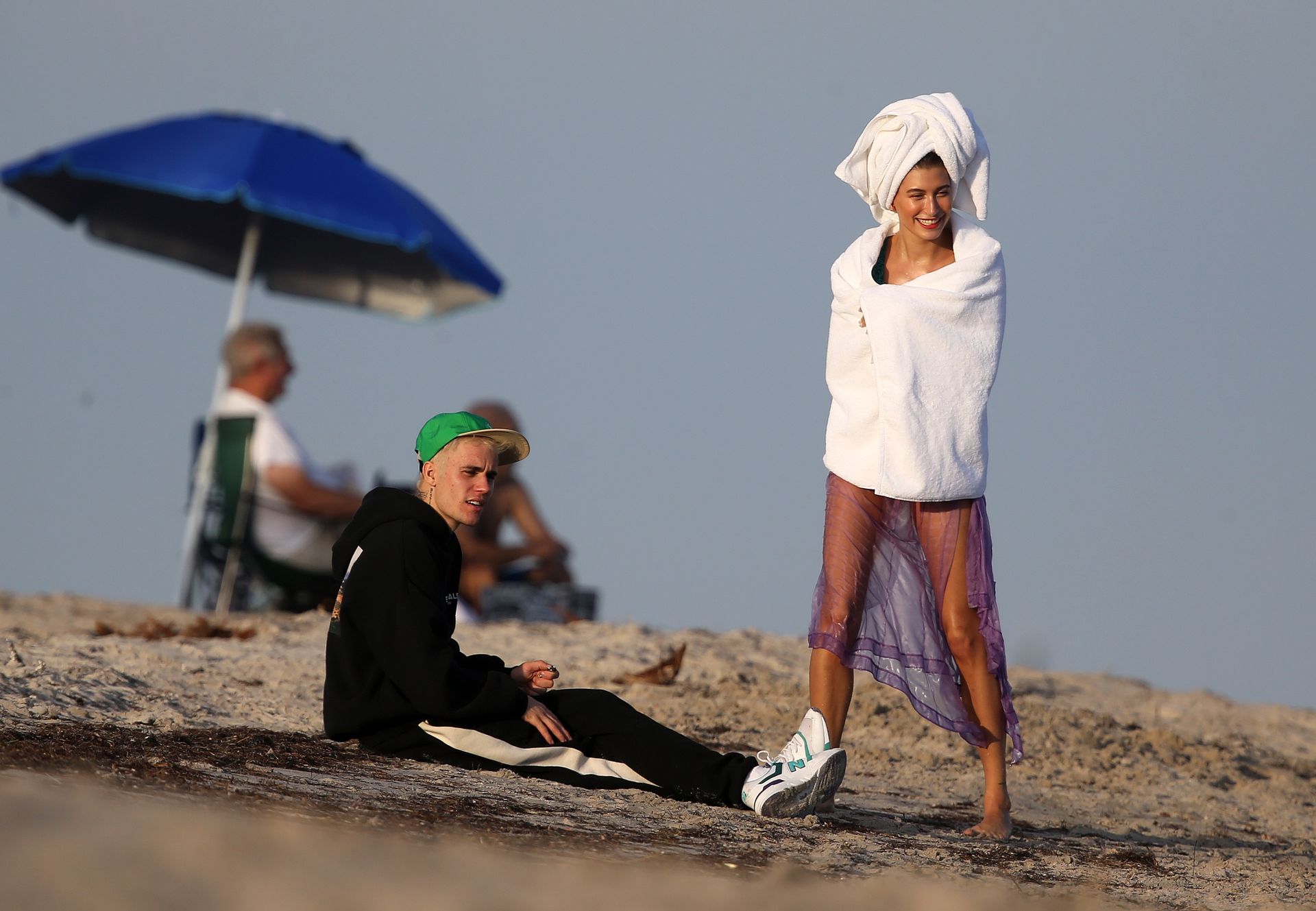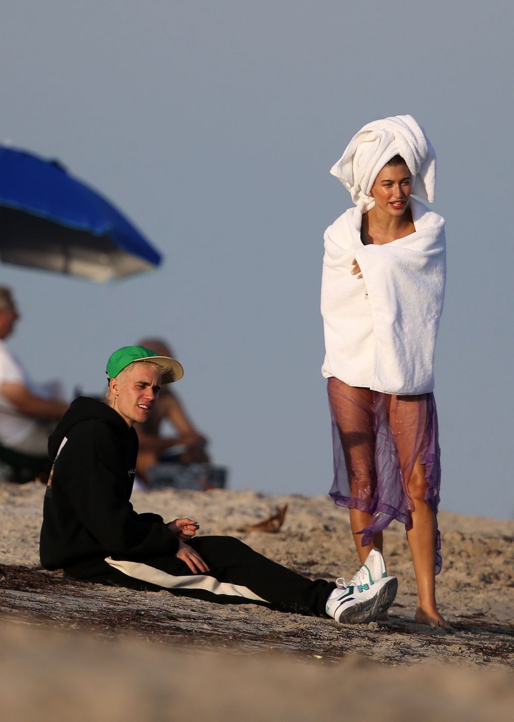 Hailey Bieber (Baldwin) montre ses courbes lors d’une séance photo à la plage à Miami, le 27/11/2019. Hailey Bieber, qui est à Miami avec son mari Justin Bieber, a été vue dans de nombreux bikinis alors qu’elle exhibait ses courbes pendant la séance photo.