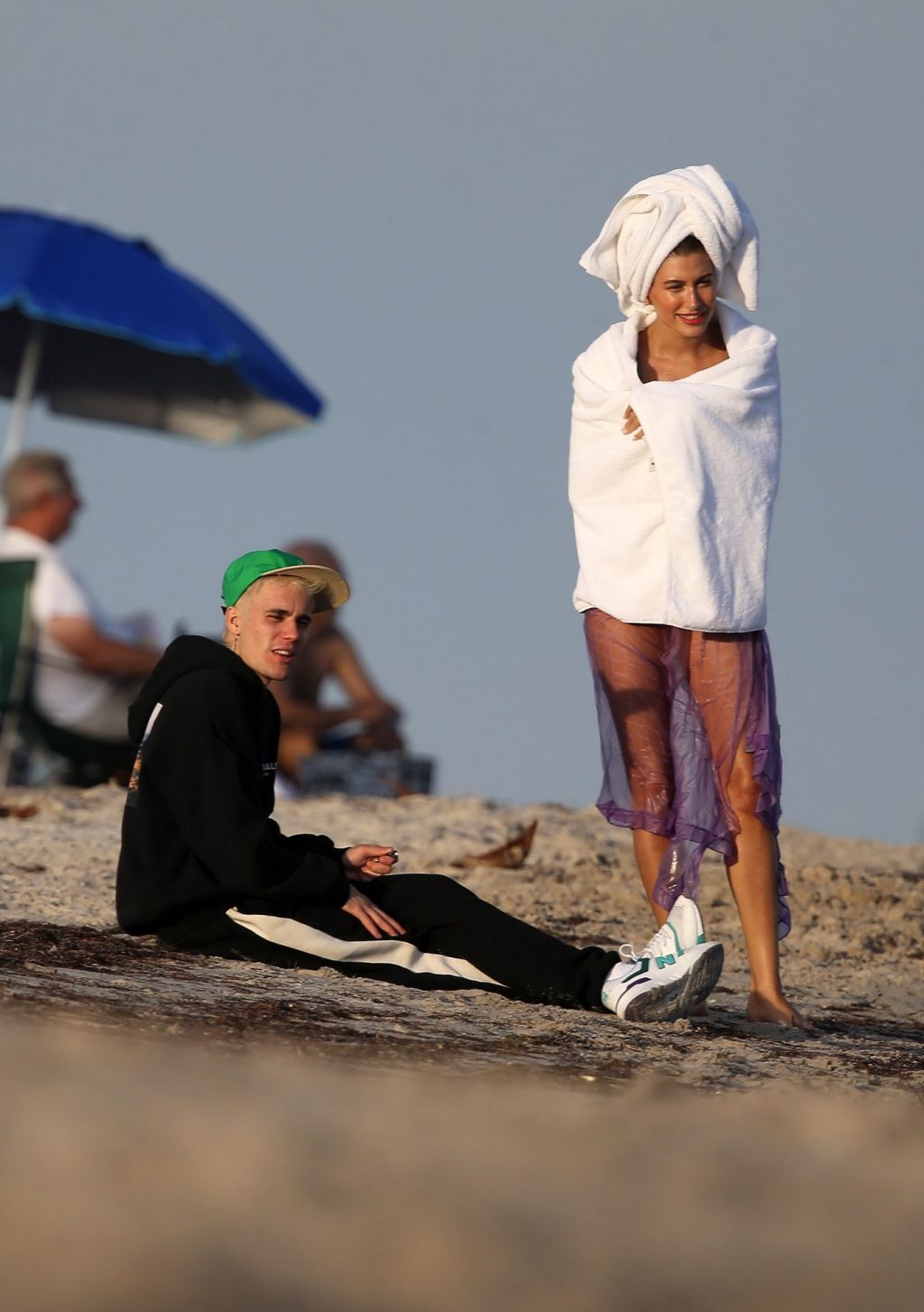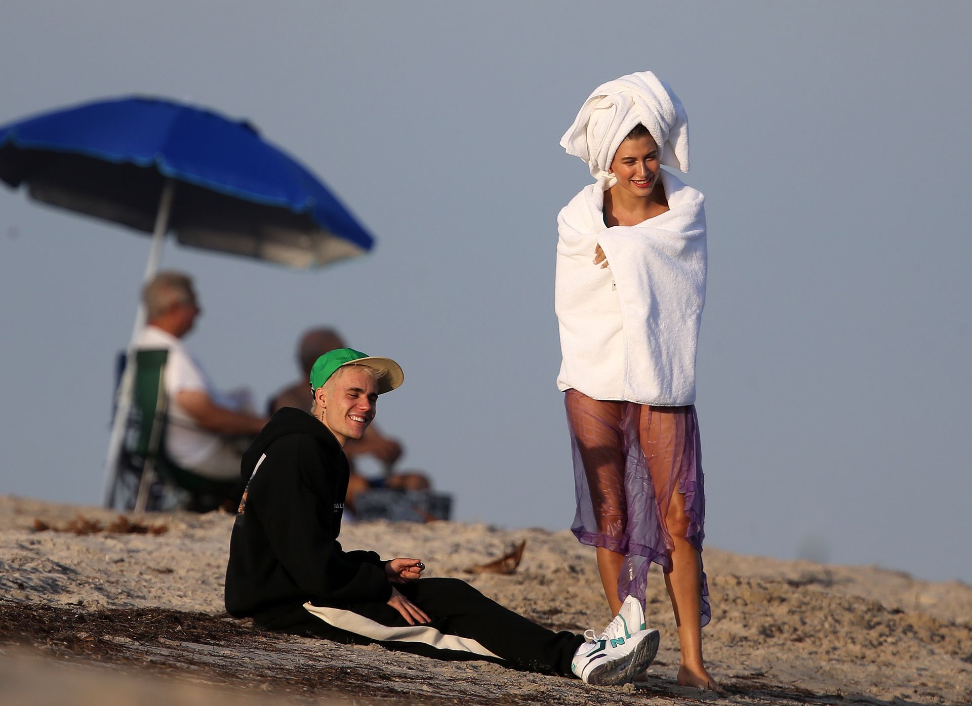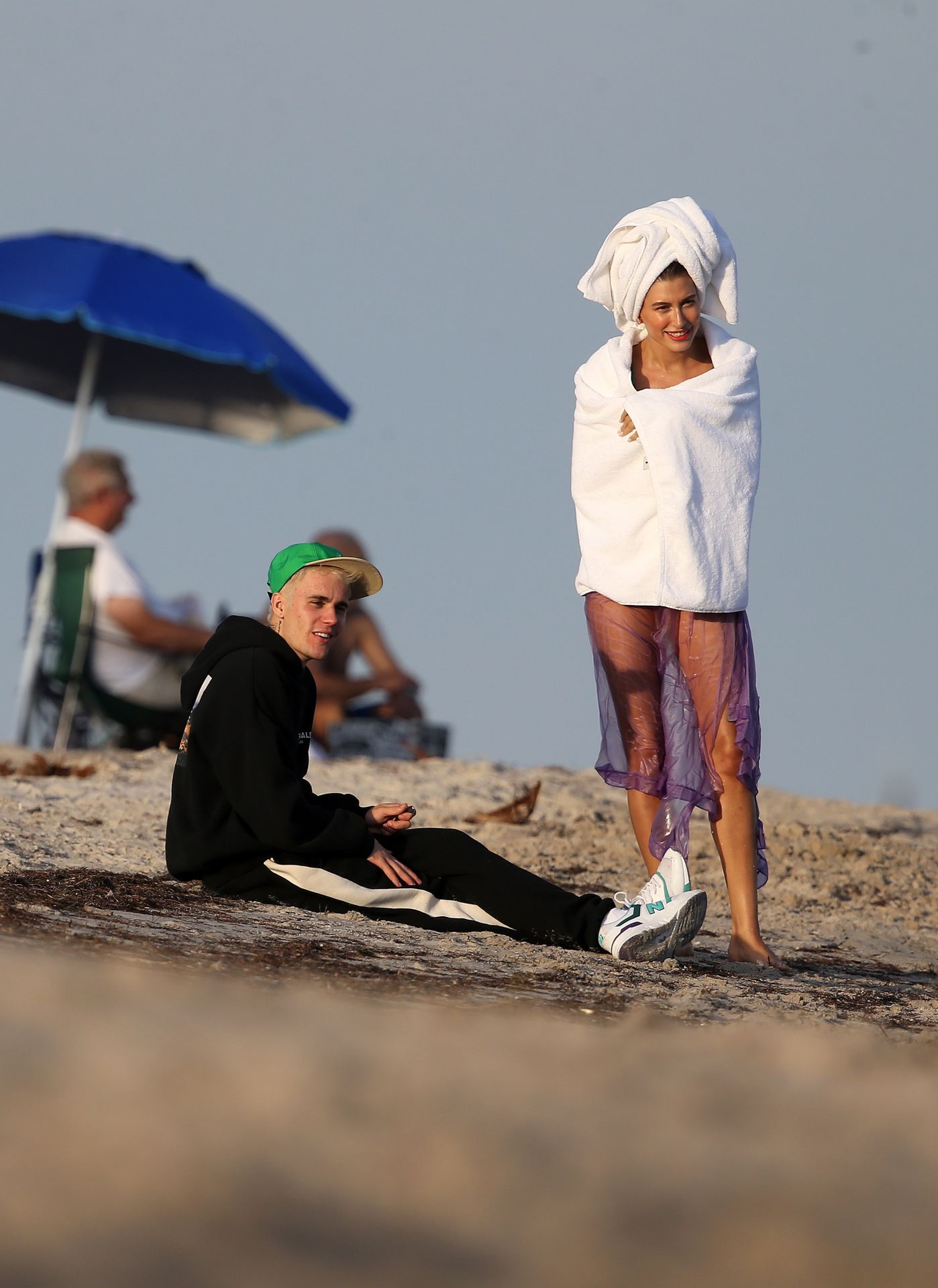 Hailey Bieber (Baldwin) montre ses courbes lors d’une séance photo à la plage à Miami, le 27/11/2019. Hailey Bieber, qui est à Miami avec son mari Justin Bieber, a été vue dans de nombreux bikinis alors qu’elle exhibait ses courbes pendant la séance photo.