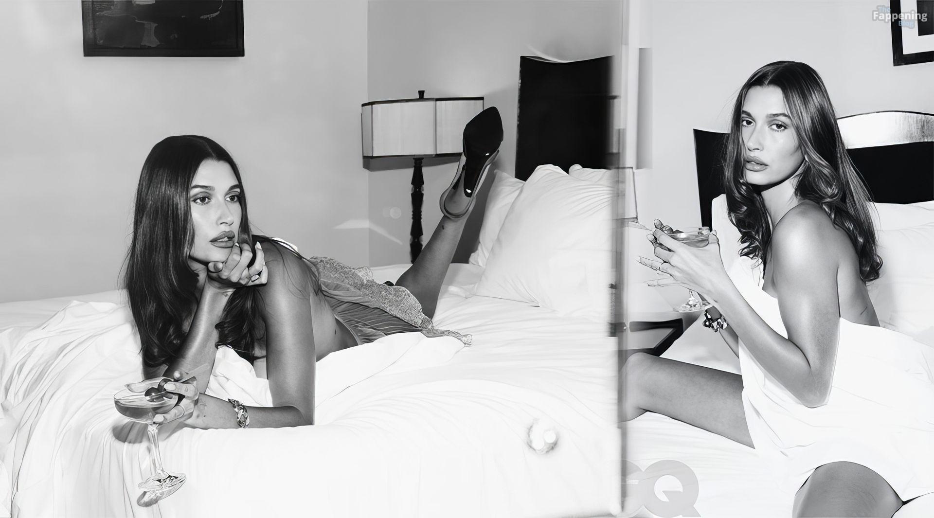 Le mannequin Hailey Bieber est dans la séance photo au bord de la piscine du numéro de novembre 2025 de GQ – regardez ses jambes et sa poitrine.