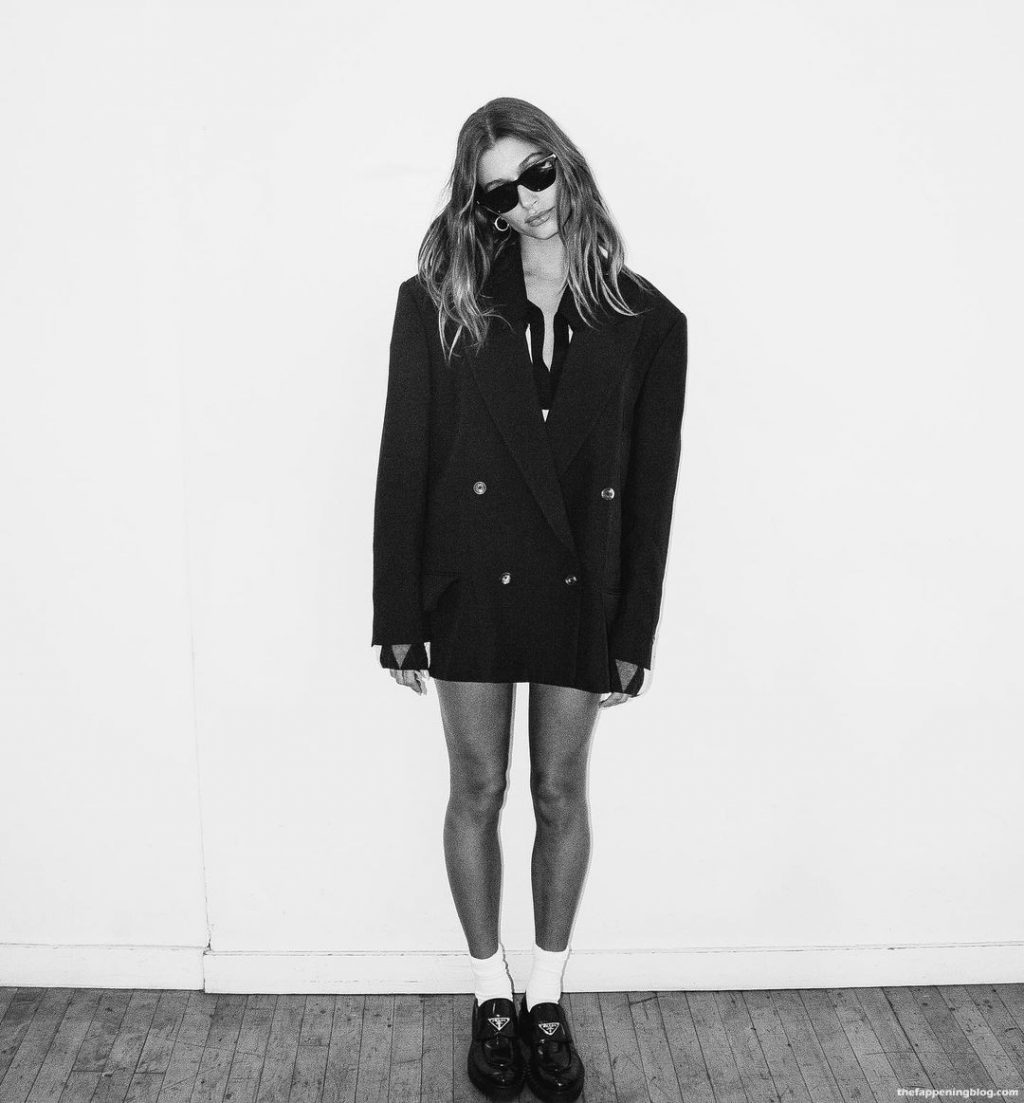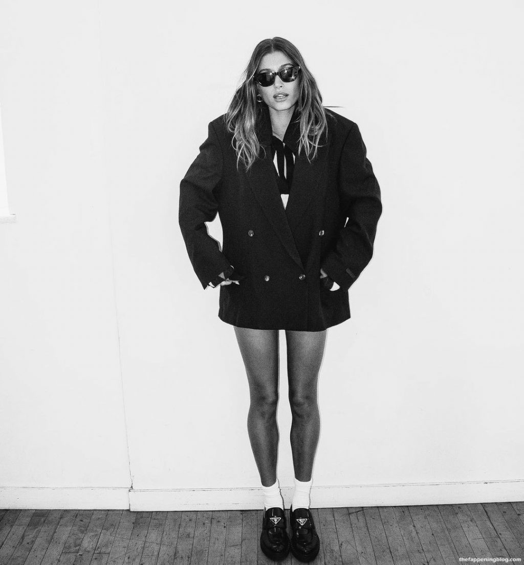 Le mannequin Hailey Bieber exhibe ses jambes sexy dans une séance photo par Tyrell Hampton (septembre 2021).