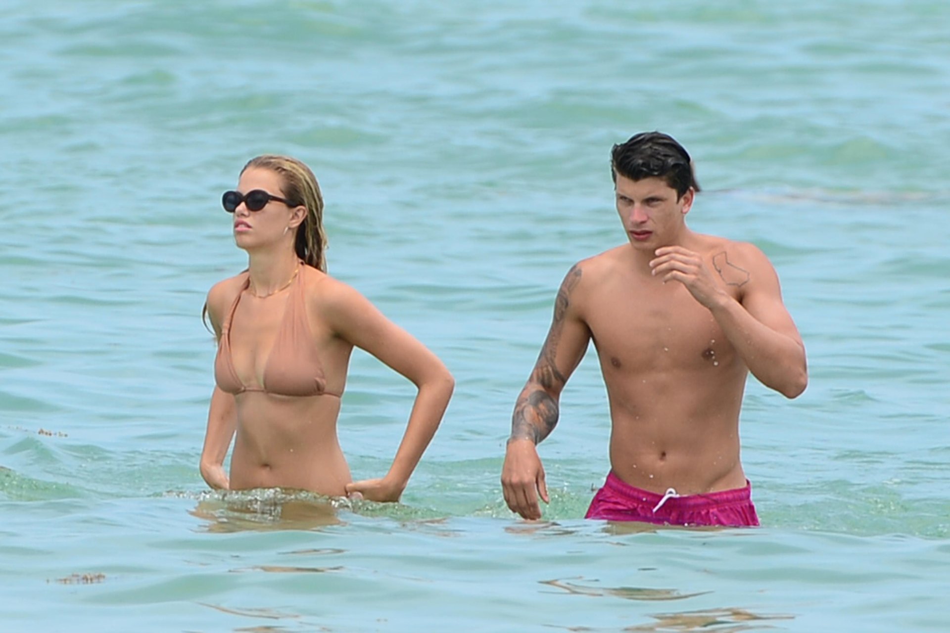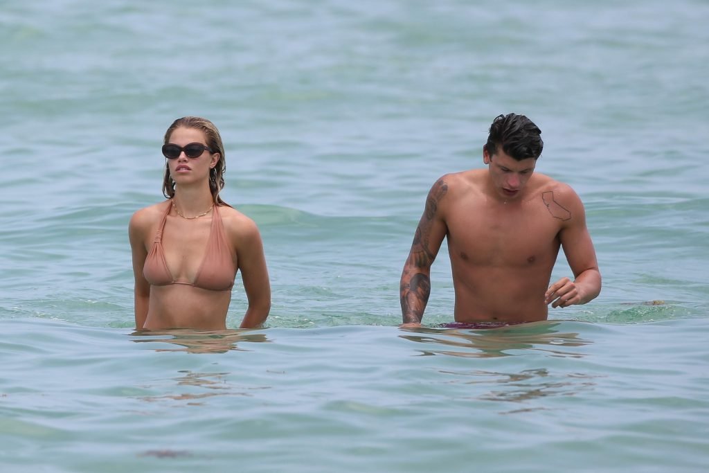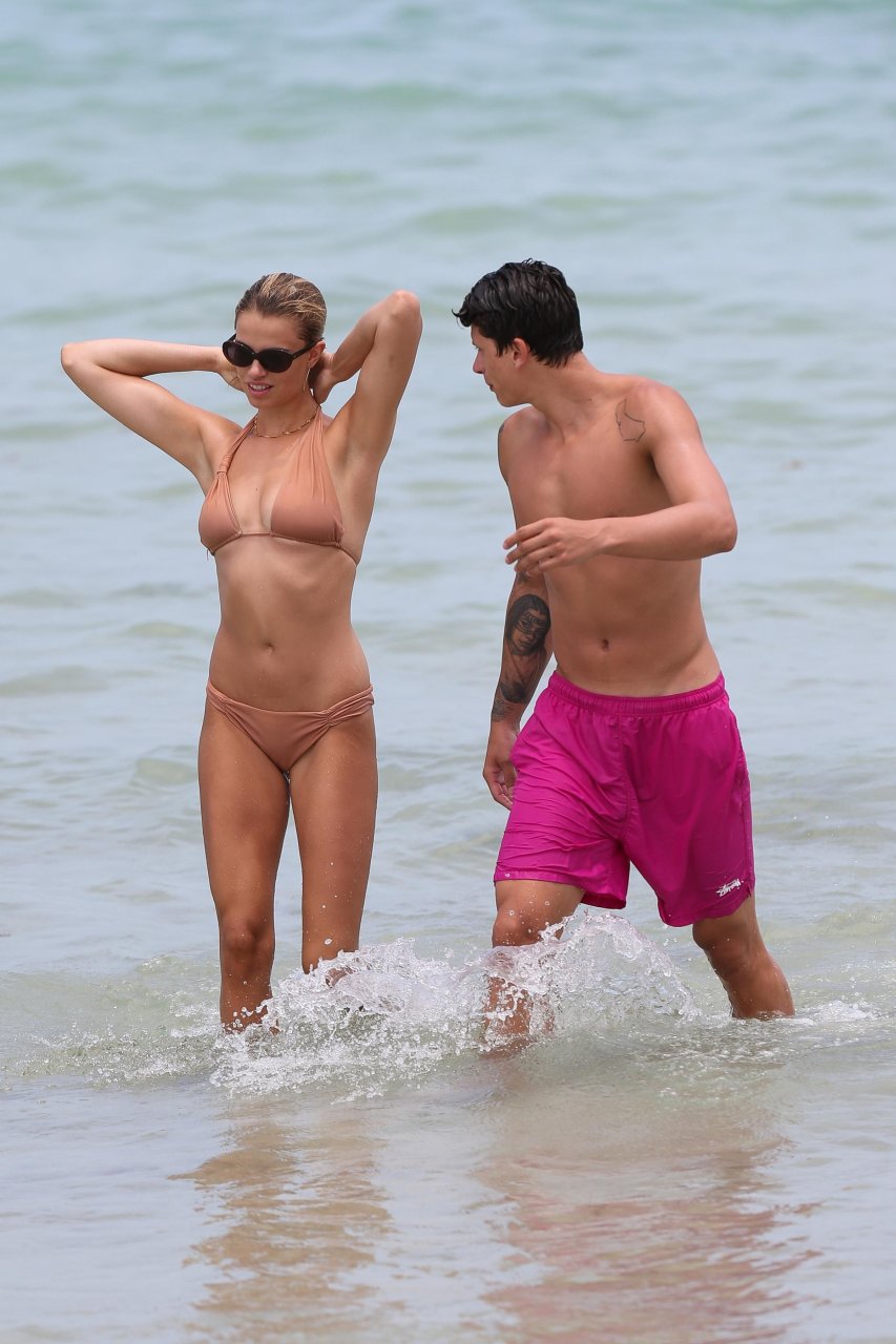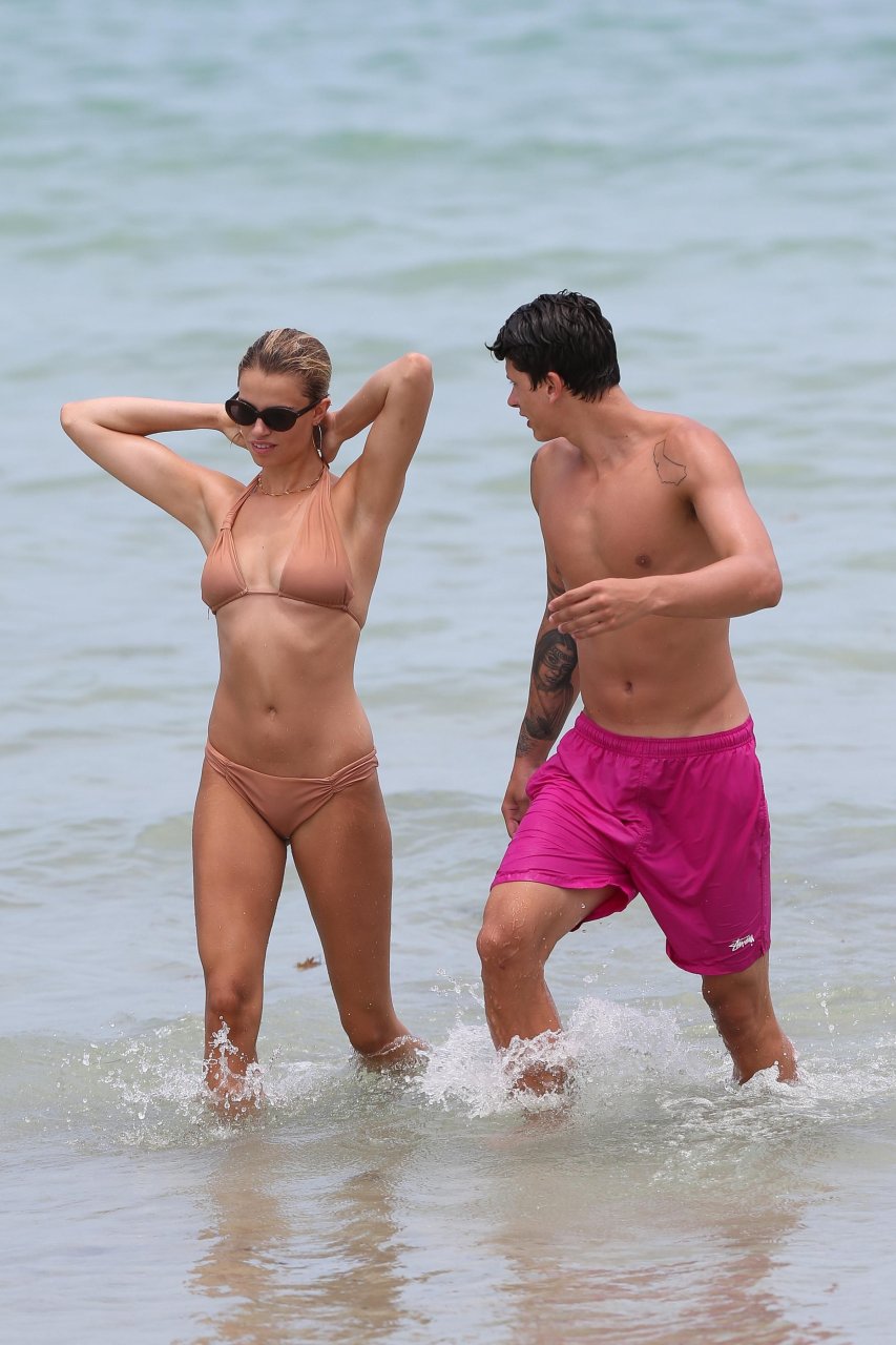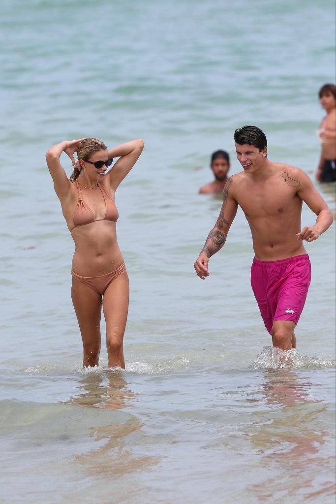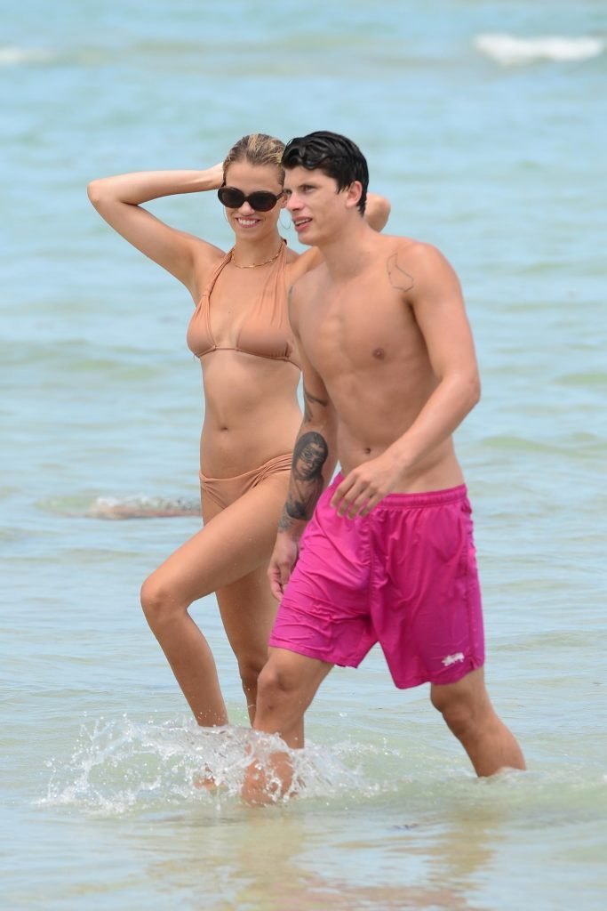 Le mannequin Hailey Clauson et son petit ami Jullien Herrera profitent d’une journée romantique à la plage à Miami Beach, Floride, le 22/07/2017.