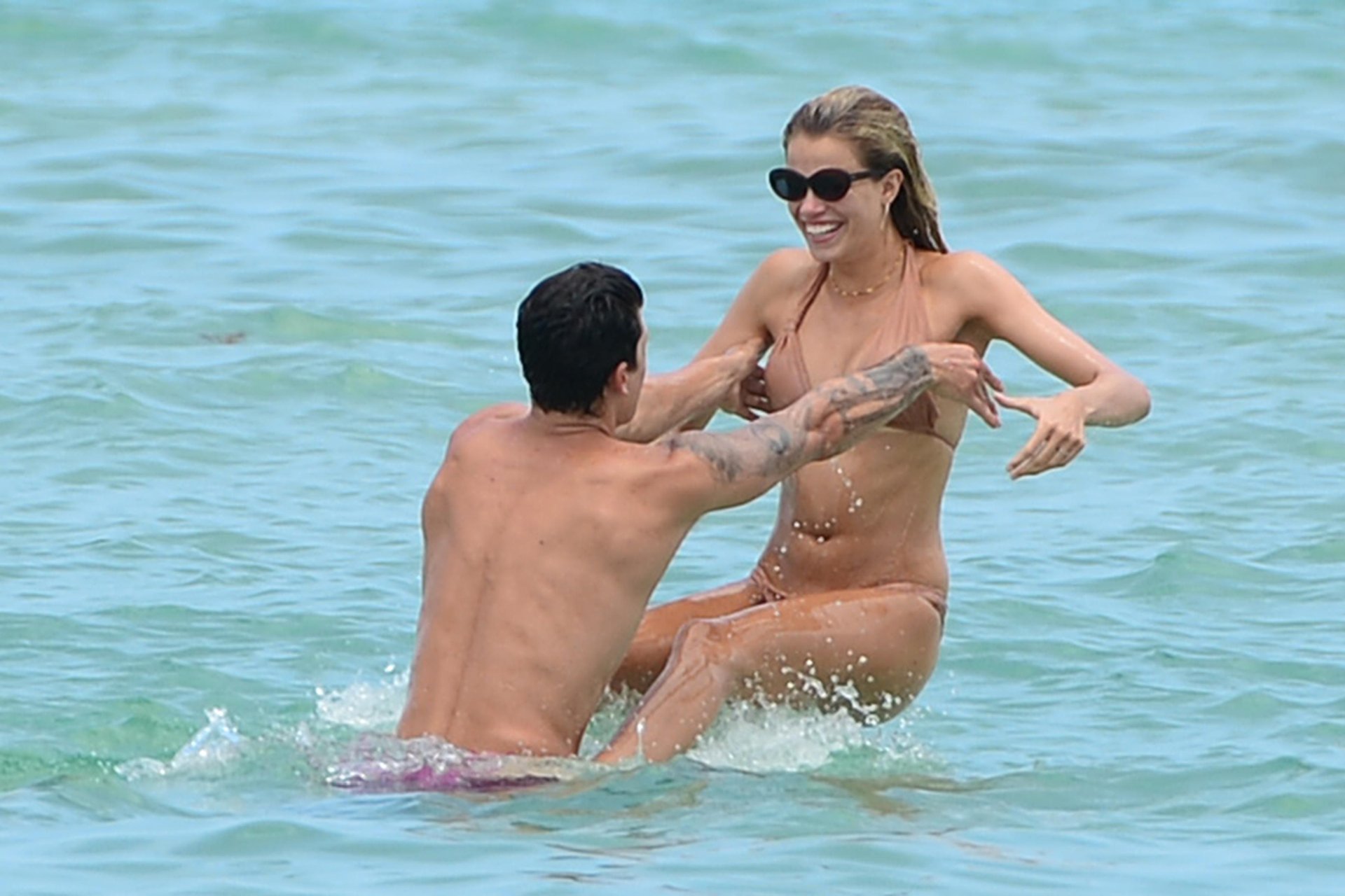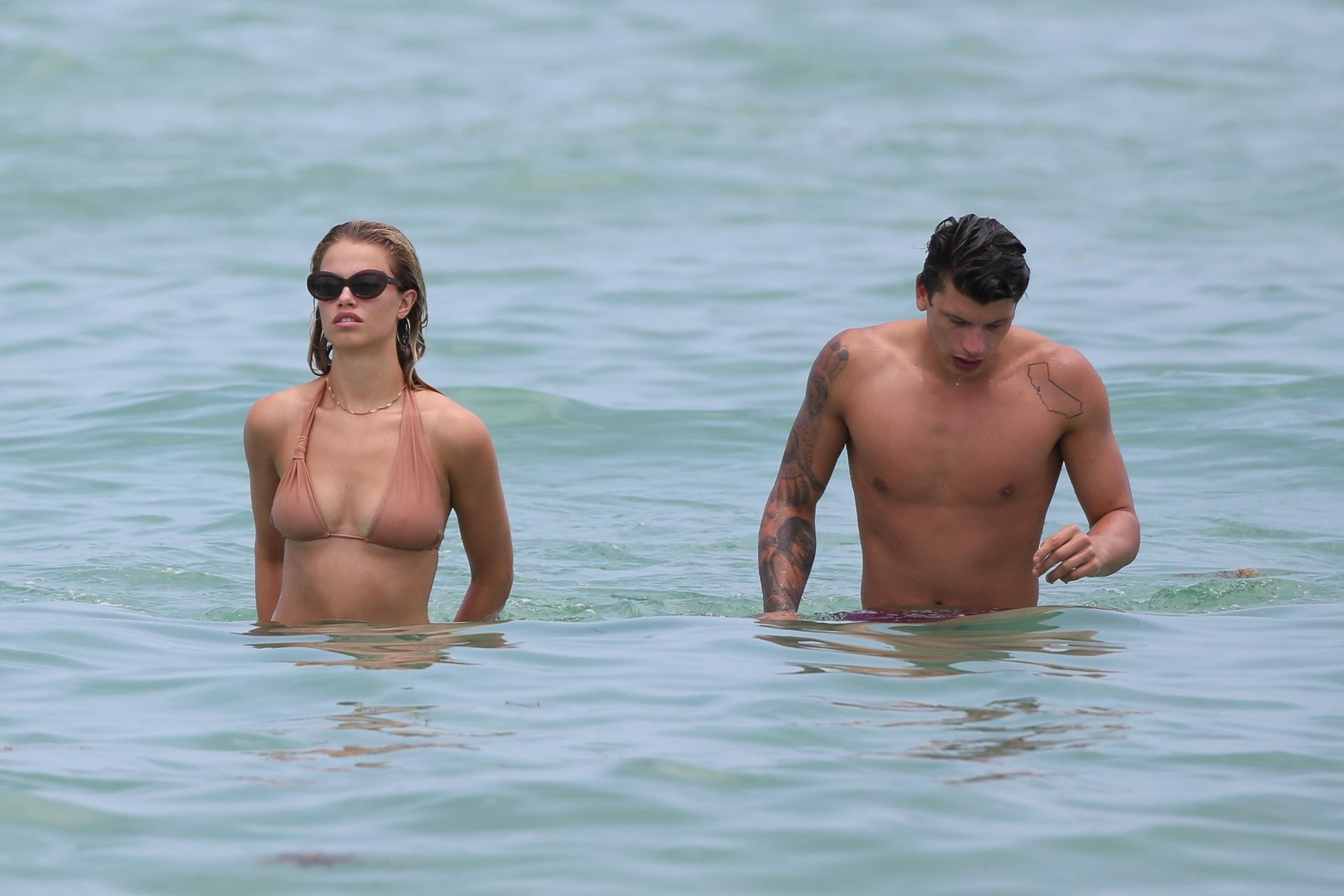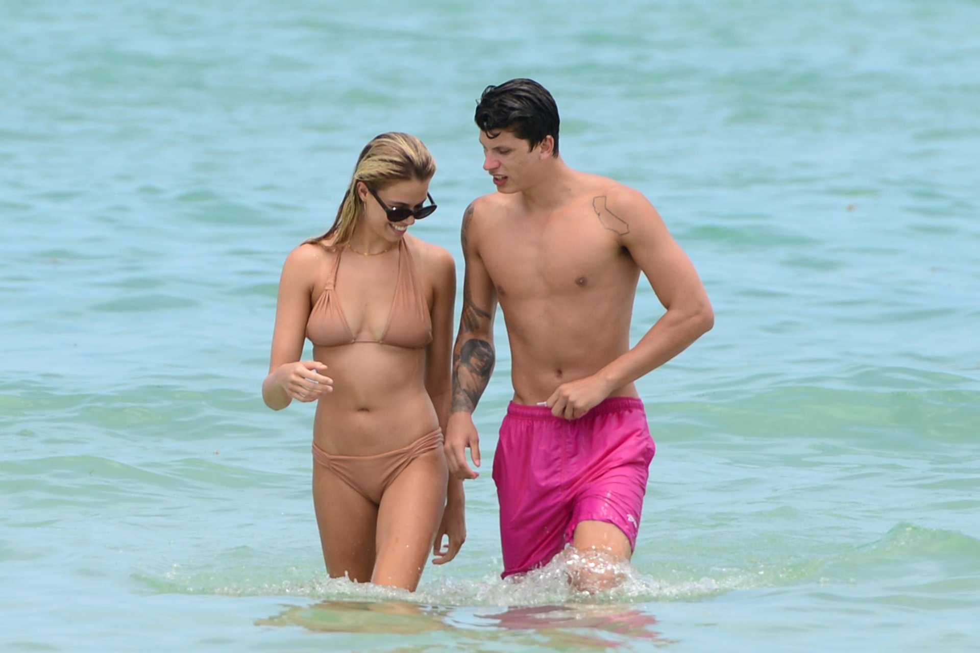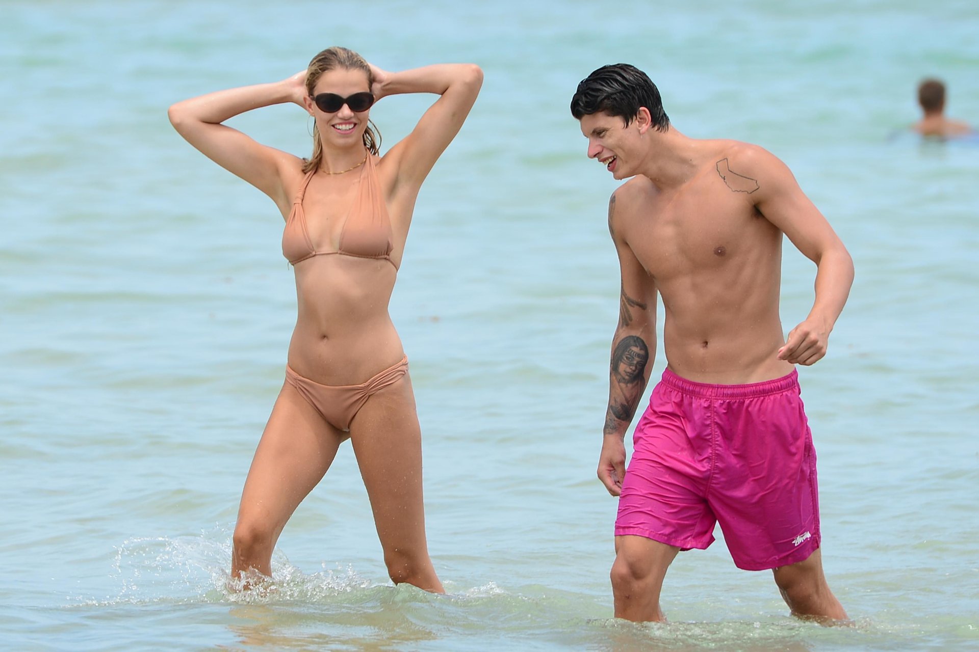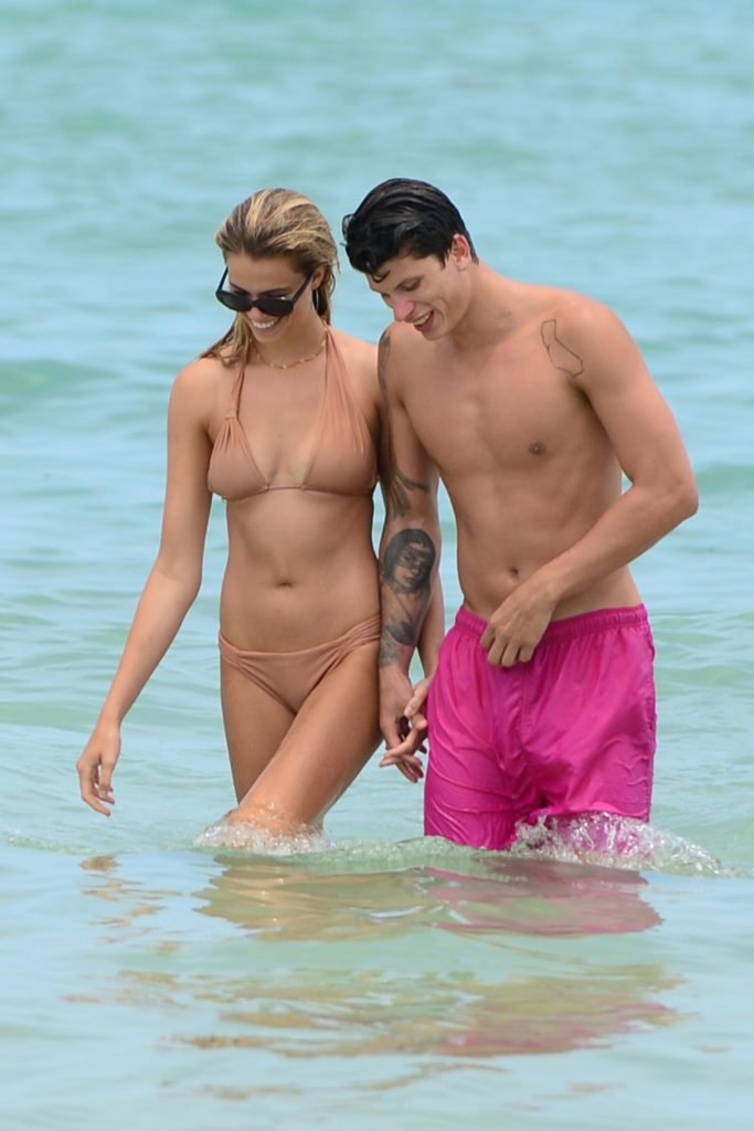 Le mannequin Hailey Clauson et son petit ami Jullien Herrera profitent d’une journée romantique à la plage à Miami Beach, Floride, le 22/07/2017.