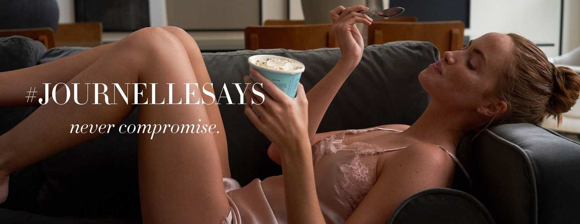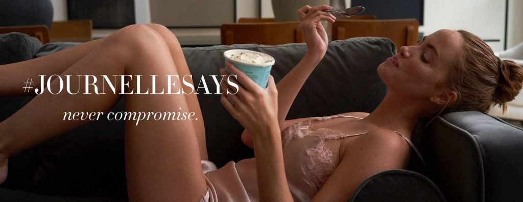 Le mannequin américaine Haley Kalil pose pour la nouvelle campagne de la marque de lingerie de luxe basée à New York, Journelle (2019).