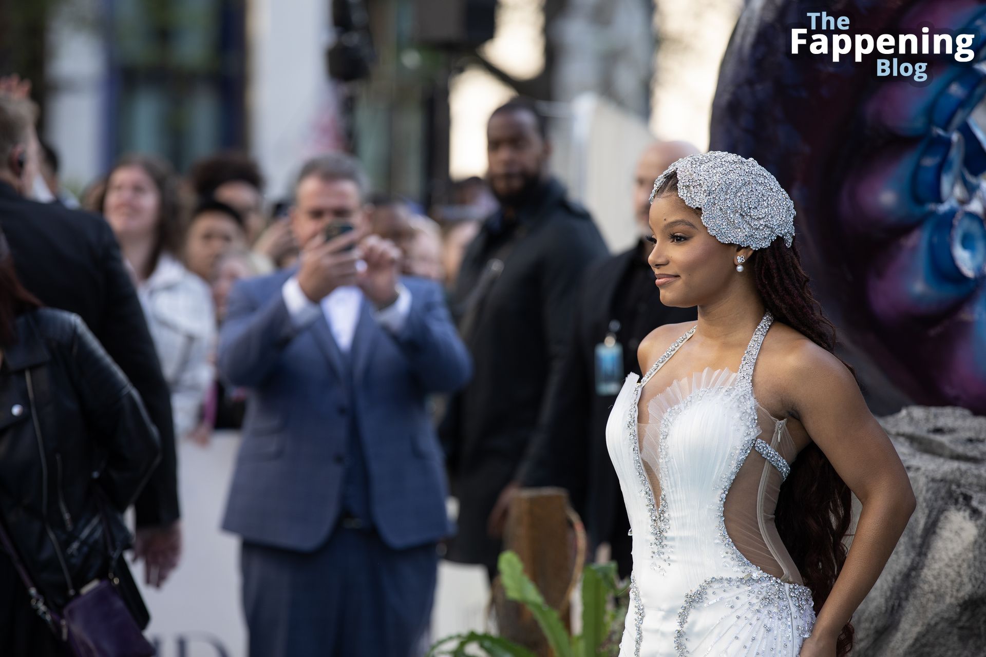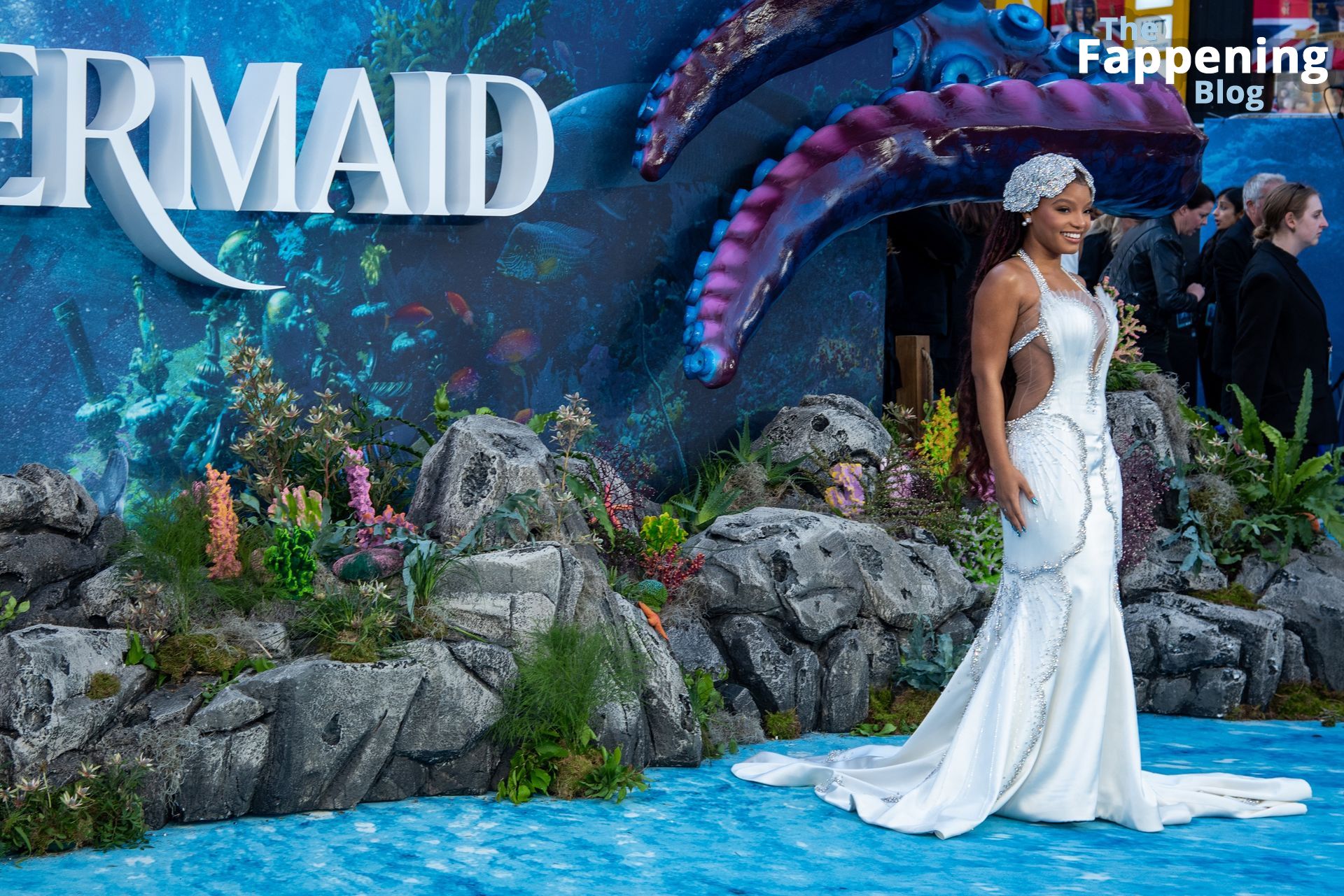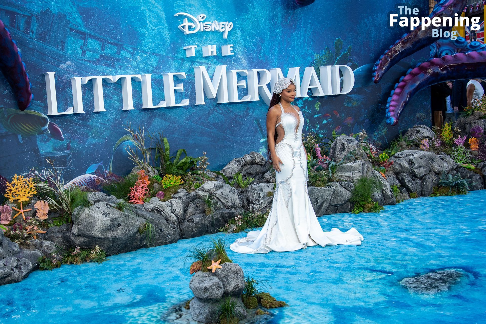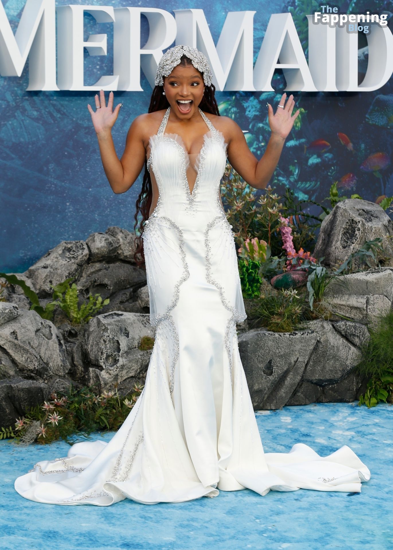 Préparez-vous à être époustouflé par le choix audacieux de mode de Halle Bailey lors de la première britannique de « La Petite Sirène » à l’Odeon Luxe Leicester Square, le 15/06/2023. Cette actrice exhibe ses magnifiques seins dans une robe décolletée qui vous laissera sans voix.