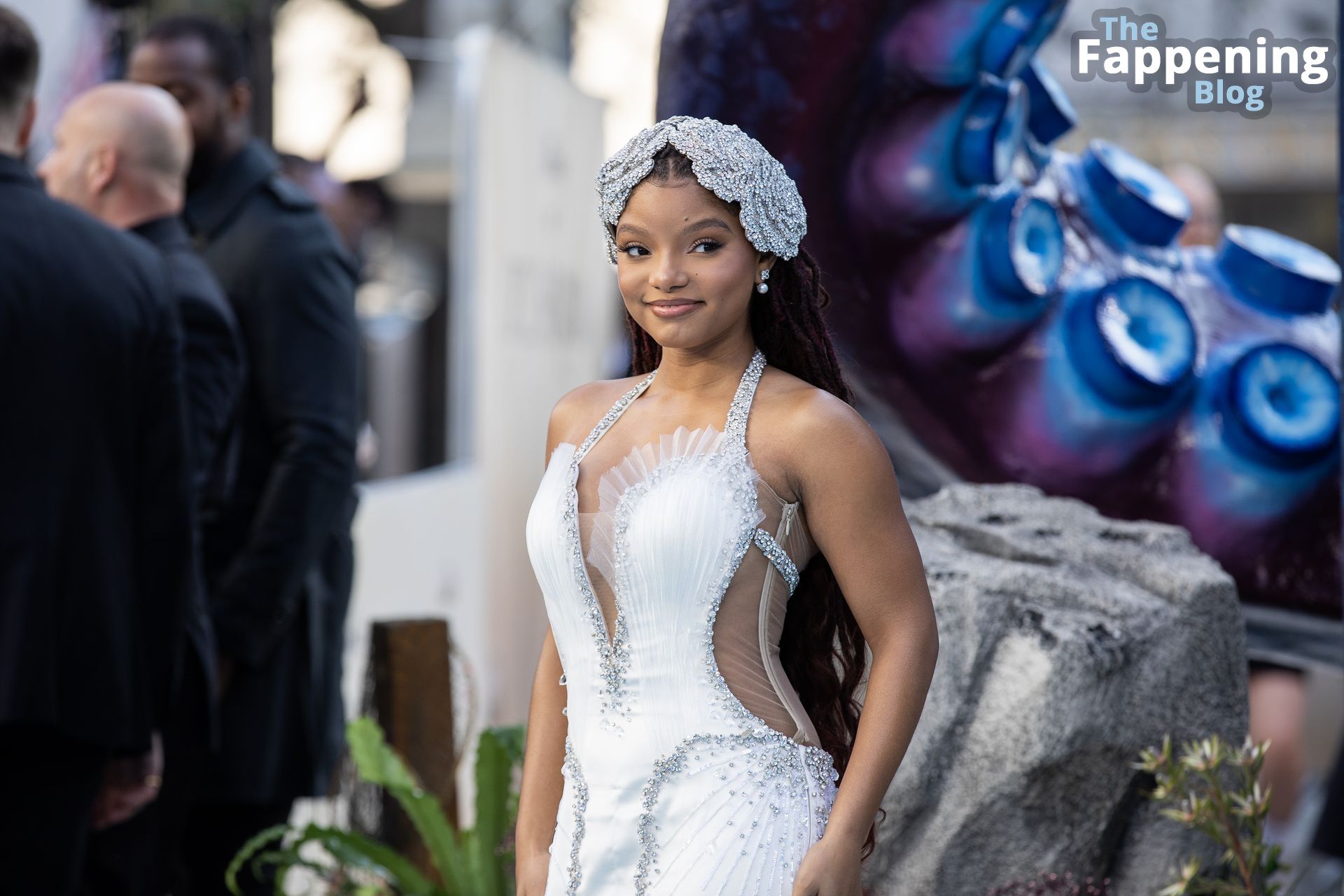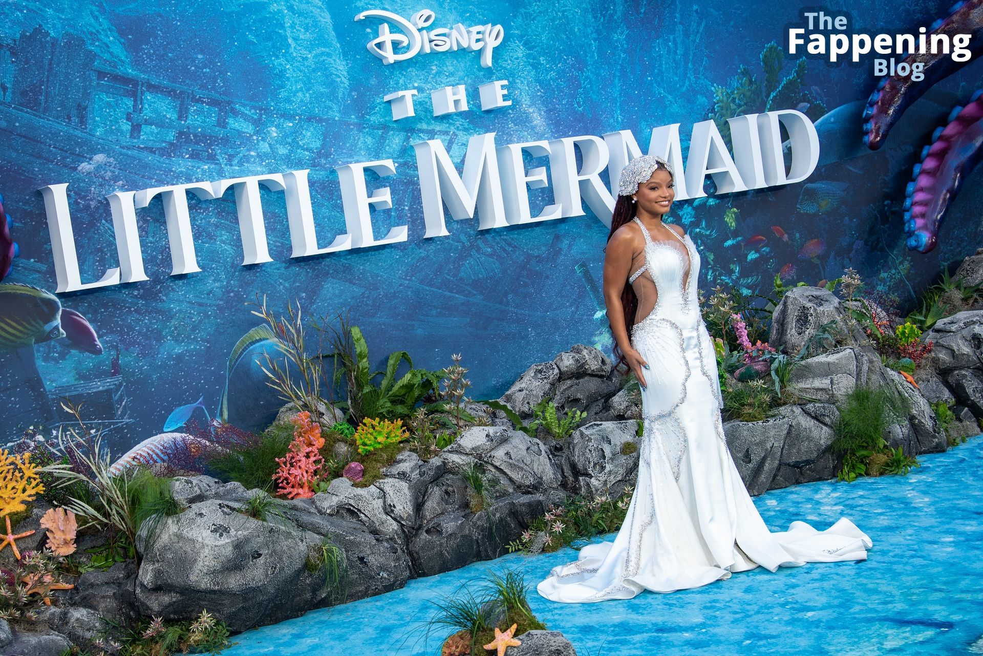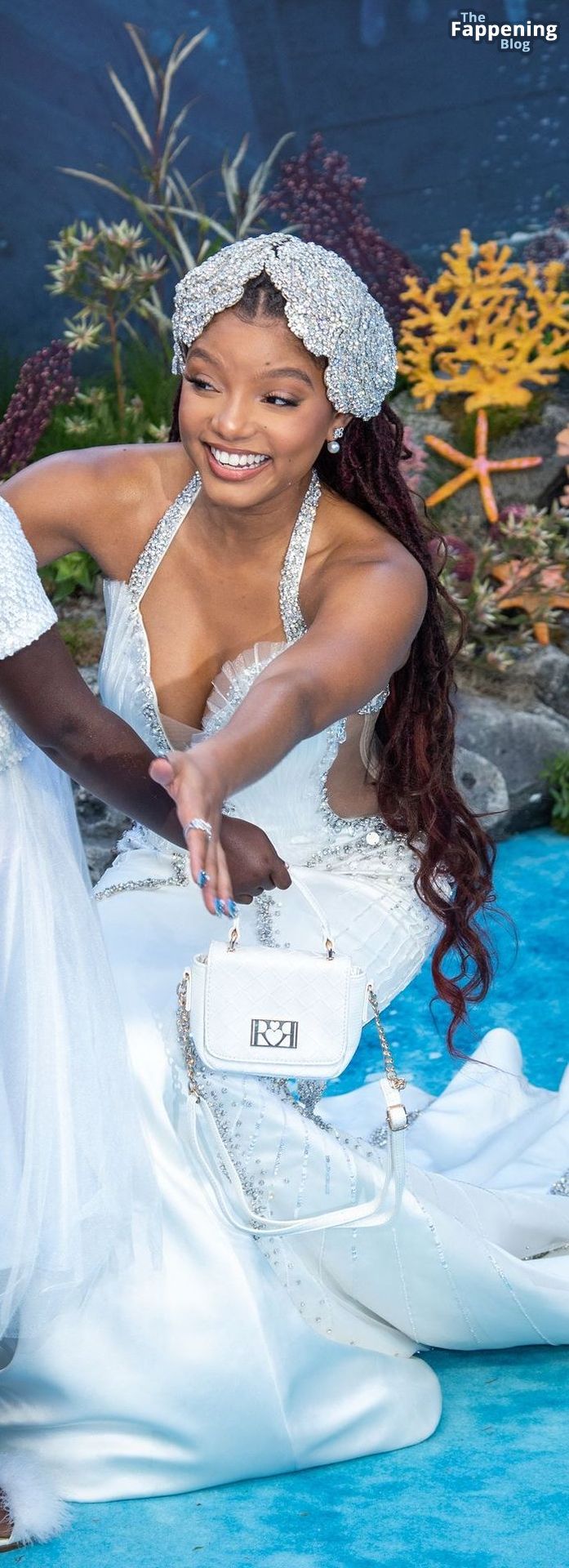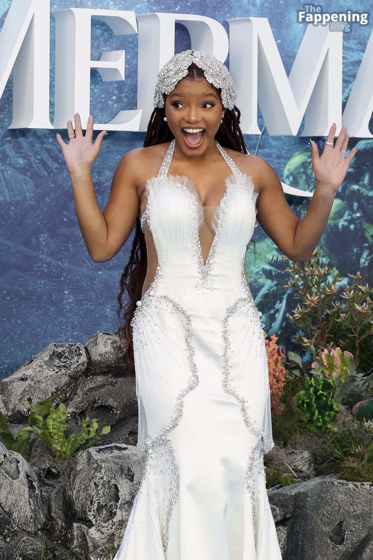 Préparez-vous à être époustouflé par le choix audacieux de mode de Halle Bailey lors de la première britannique de « La Petite Sirène » à l’Odeon Luxe Leicester Square, le 15/06/2023. Cette actrice exhibe ses magnifiques seins dans une robe décolletée qui vous laissera sans voix.