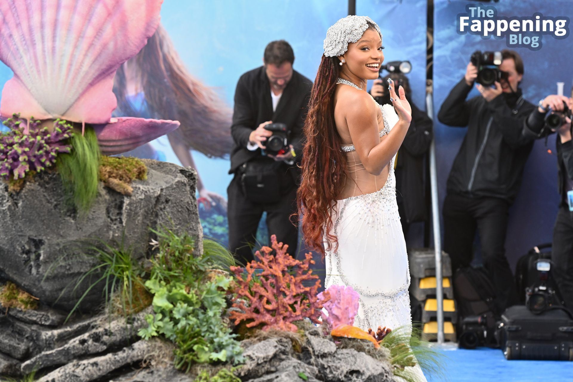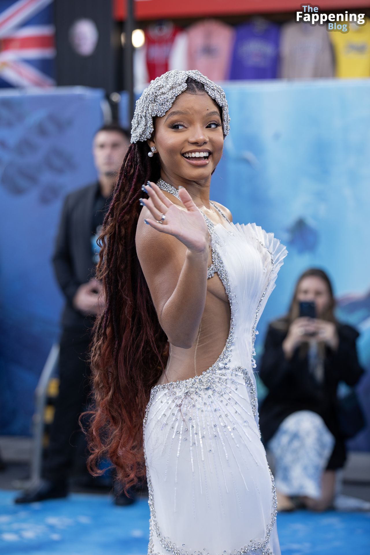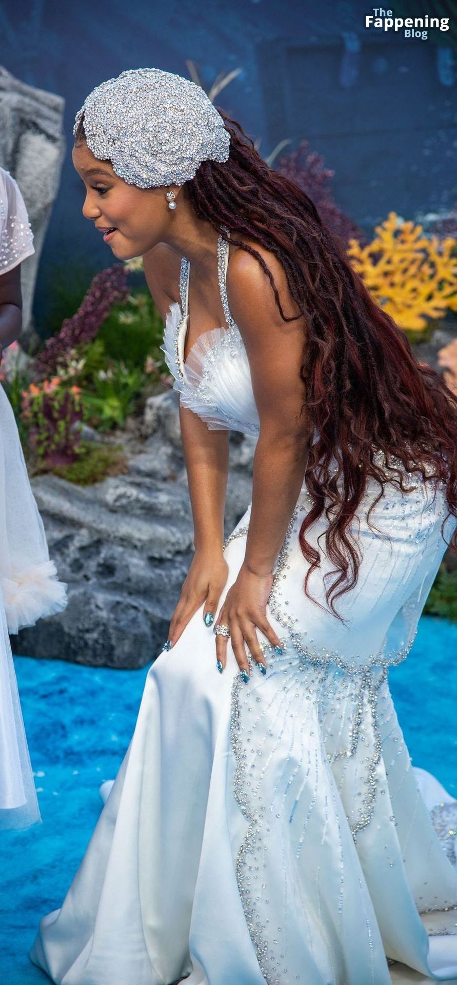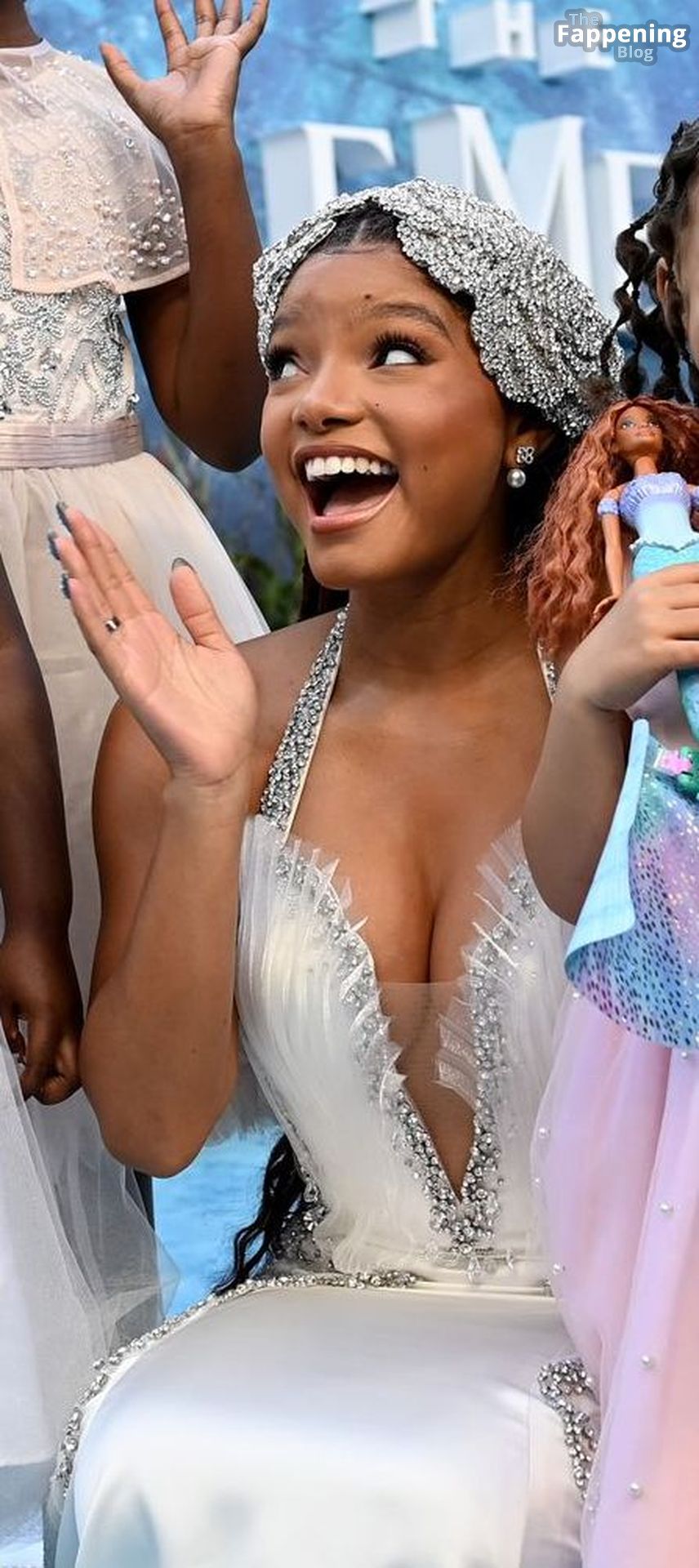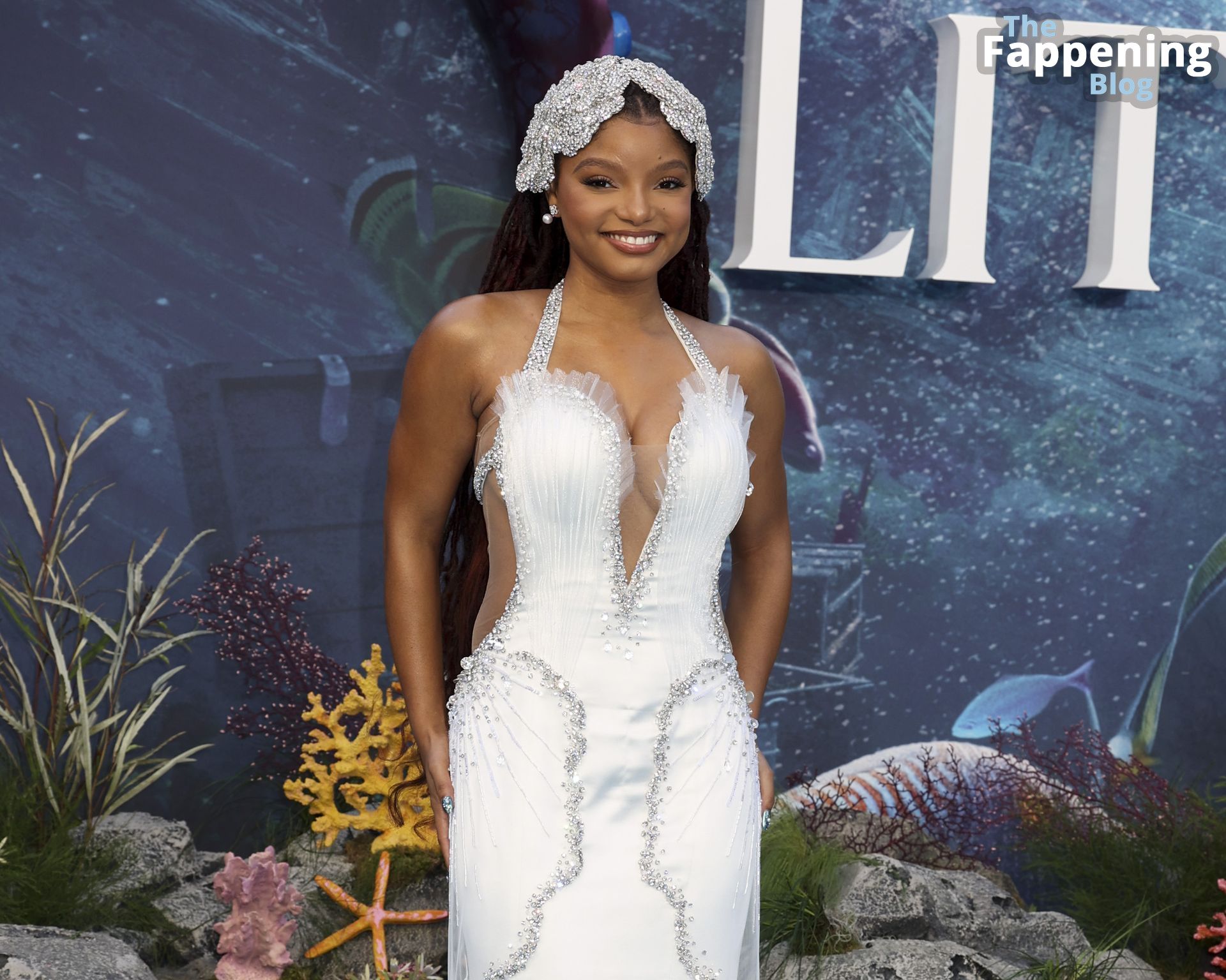 Préparez-vous à être époustouflé par le choix audacieux de mode de Halle Bailey lors de la première britannique de « La Petite Sirène » à l’Odeon Luxe Leicester Square, le 15/06/2023. Cette actrice exhibe ses magnifiques seins dans une robe décolletée qui vous laissera sans voix.