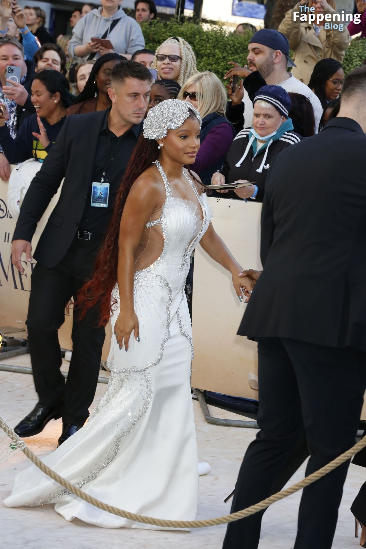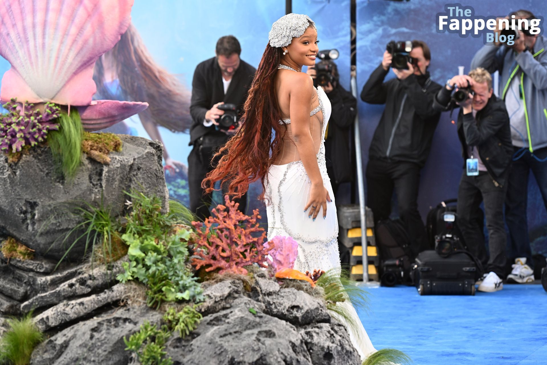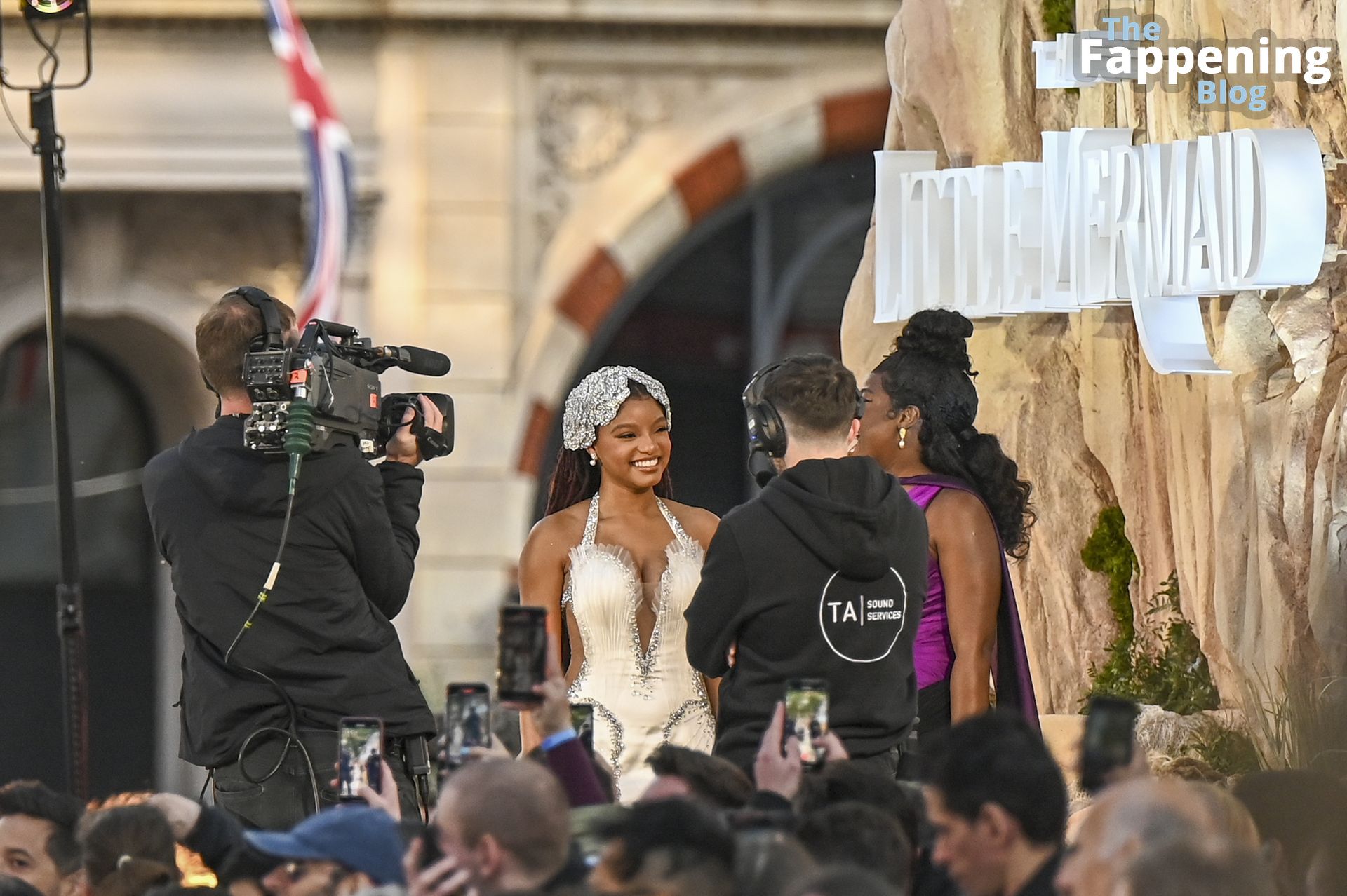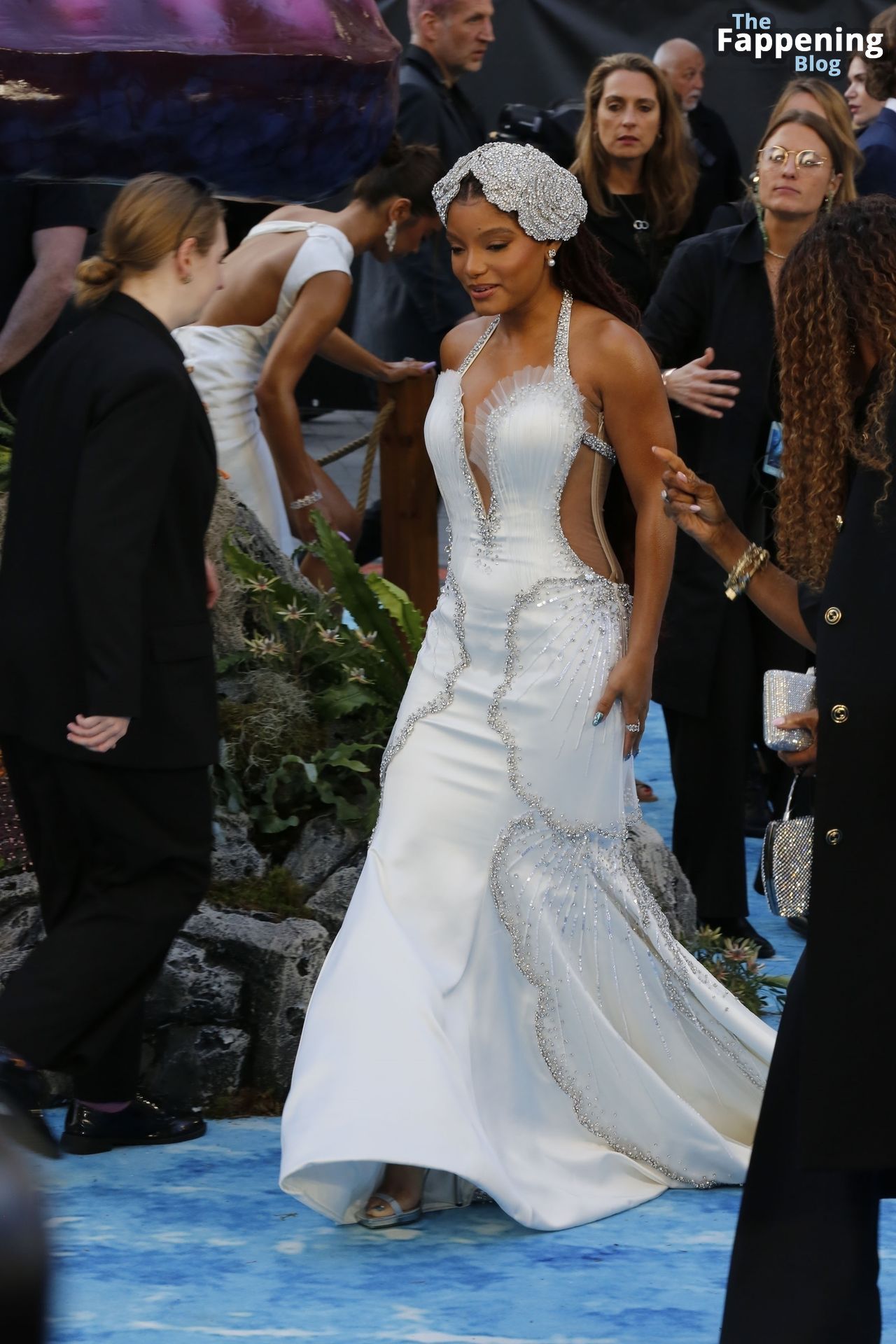 Préparez-vous à être époustouflé par le choix audacieux de mode de Halle Bailey lors de la première britannique de « La Petite Sirène » à l’Odeon Luxe Leicester Square, le 15/06/2023. Cette actrice exhibe ses magnifiques seins dans une robe décolletée qui vous laissera sans voix.