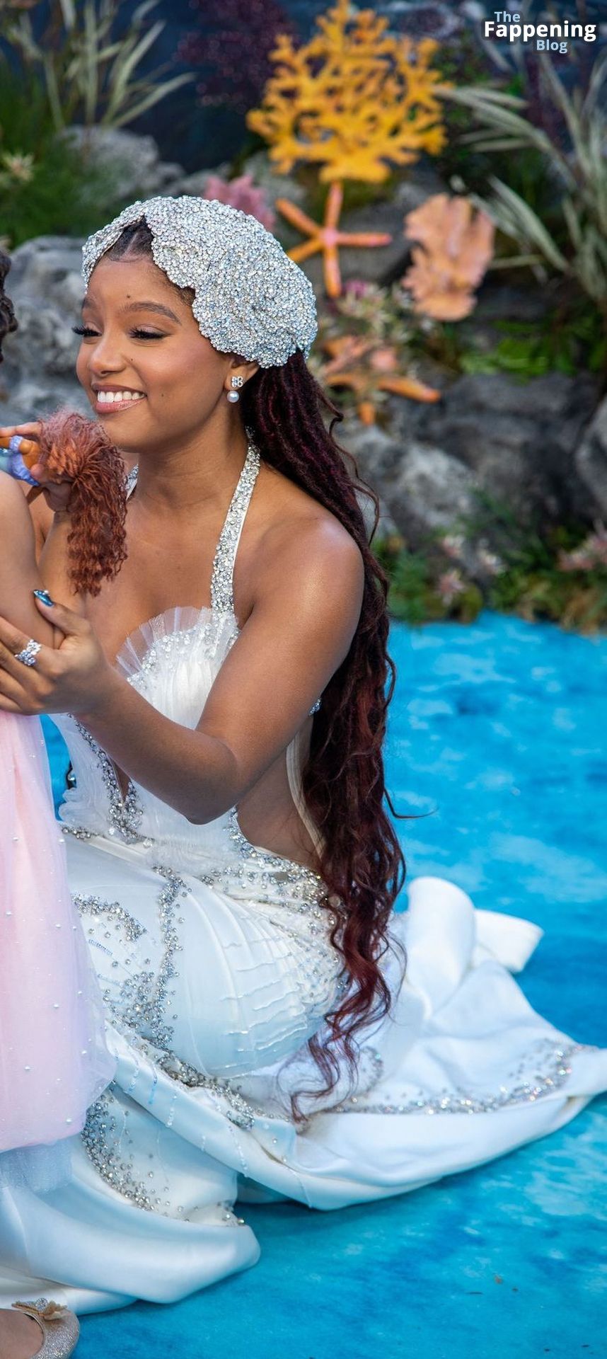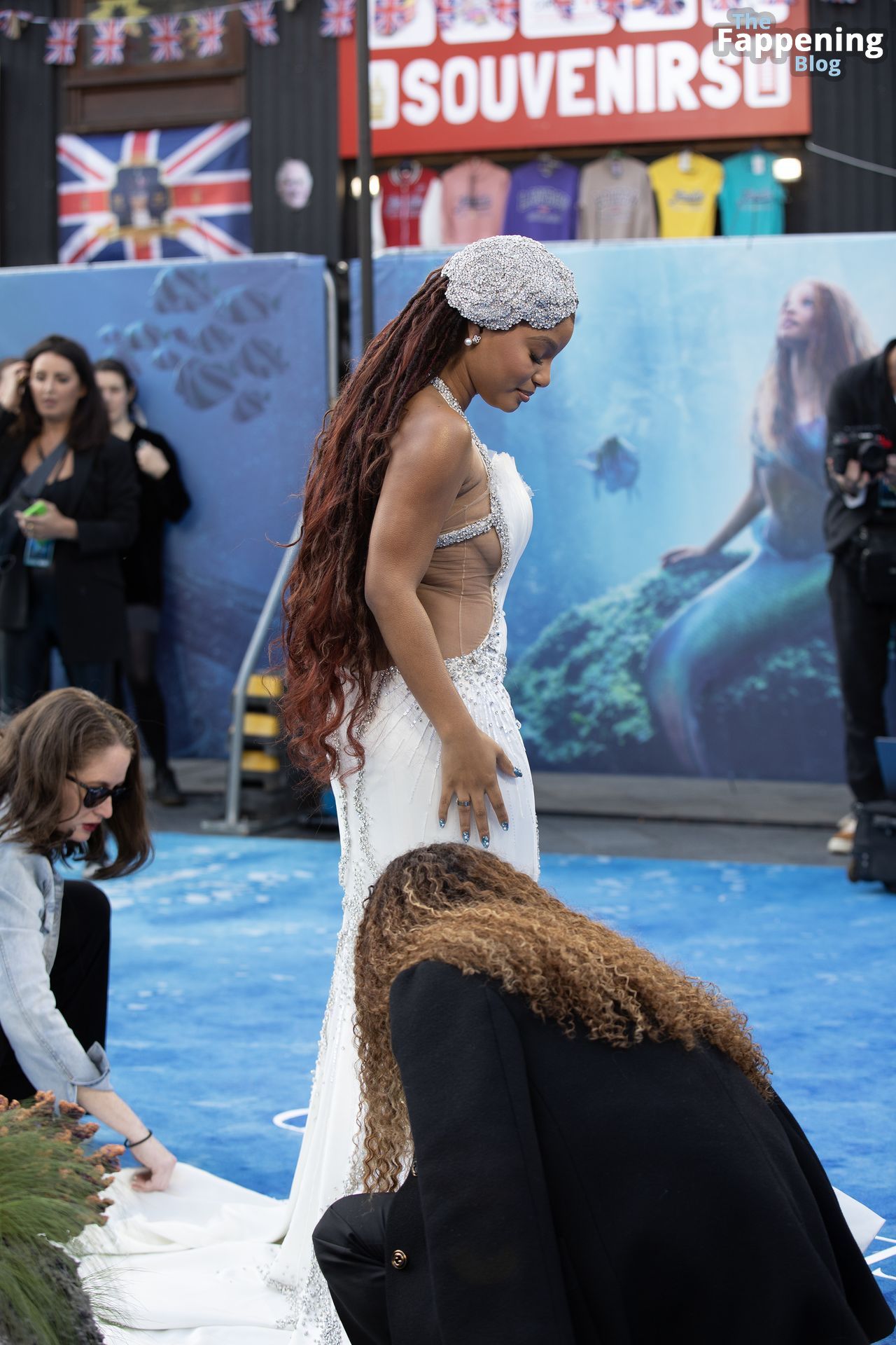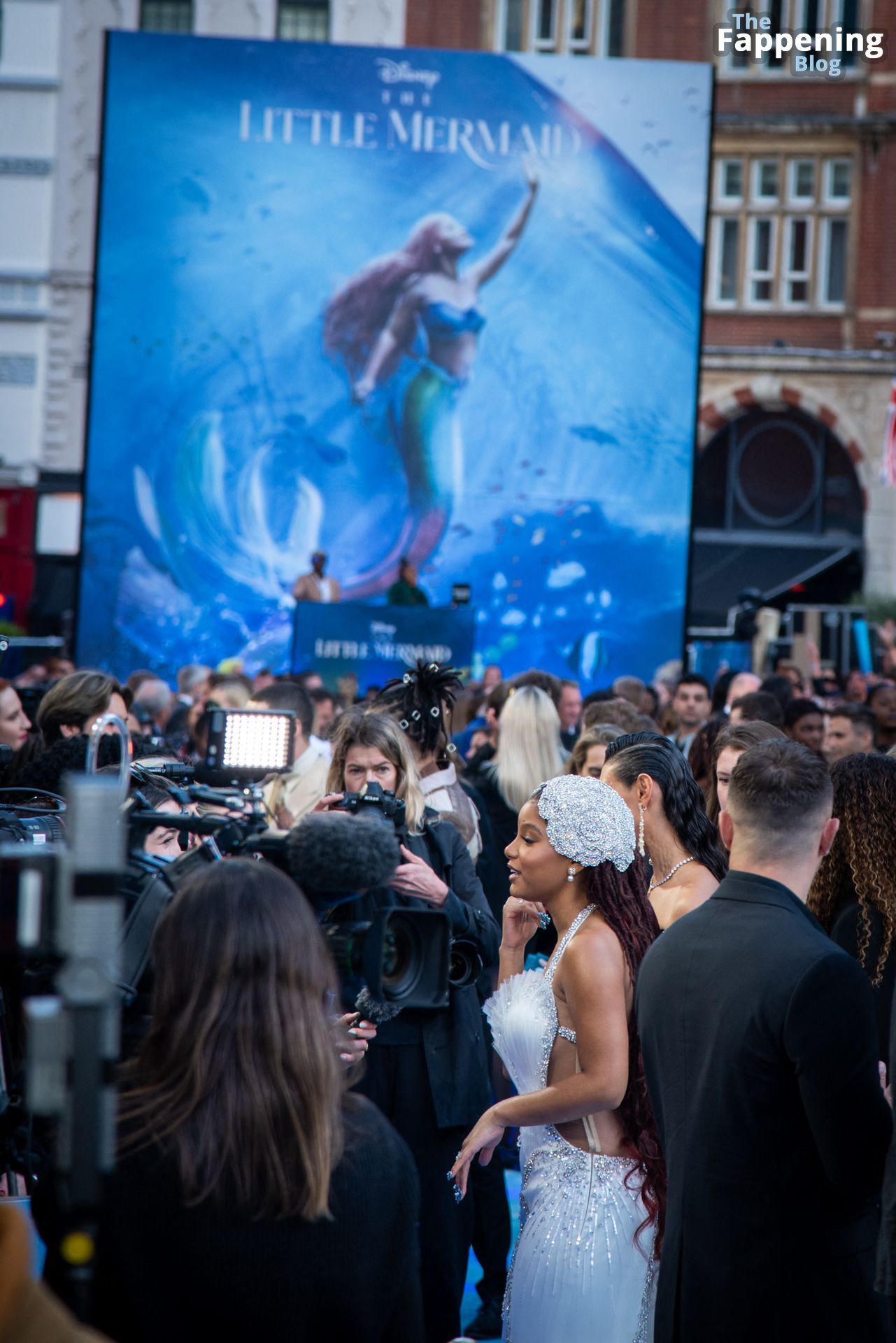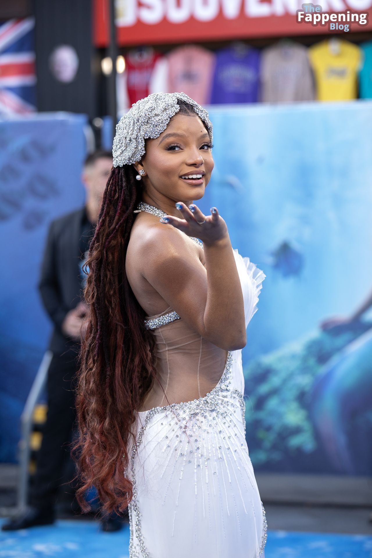 Préparez-vous à être époustouflé par le choix audacieux de mode de Halle Bailey lors de la première britannique de « La Petite Sirène » à l’Odeon Luxe Leicester Square, le 15/06/2023. Cette actrice exhibe ses magnifiques seins dans une robe décolletée qui vous laissera sans voix.