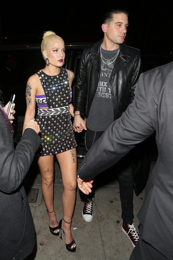 D’accord, dans vos rêves. La chanteuse de 23 ans Ashley Nicolette Frangipane (alias Halsey) montre sa lingerie en arrivant avec Gerald Earl Gillum (G-Eazy) à la fête iHeartRadio à West Hollywood, le 11/03/2018. Quel mauvais choix de tenue.