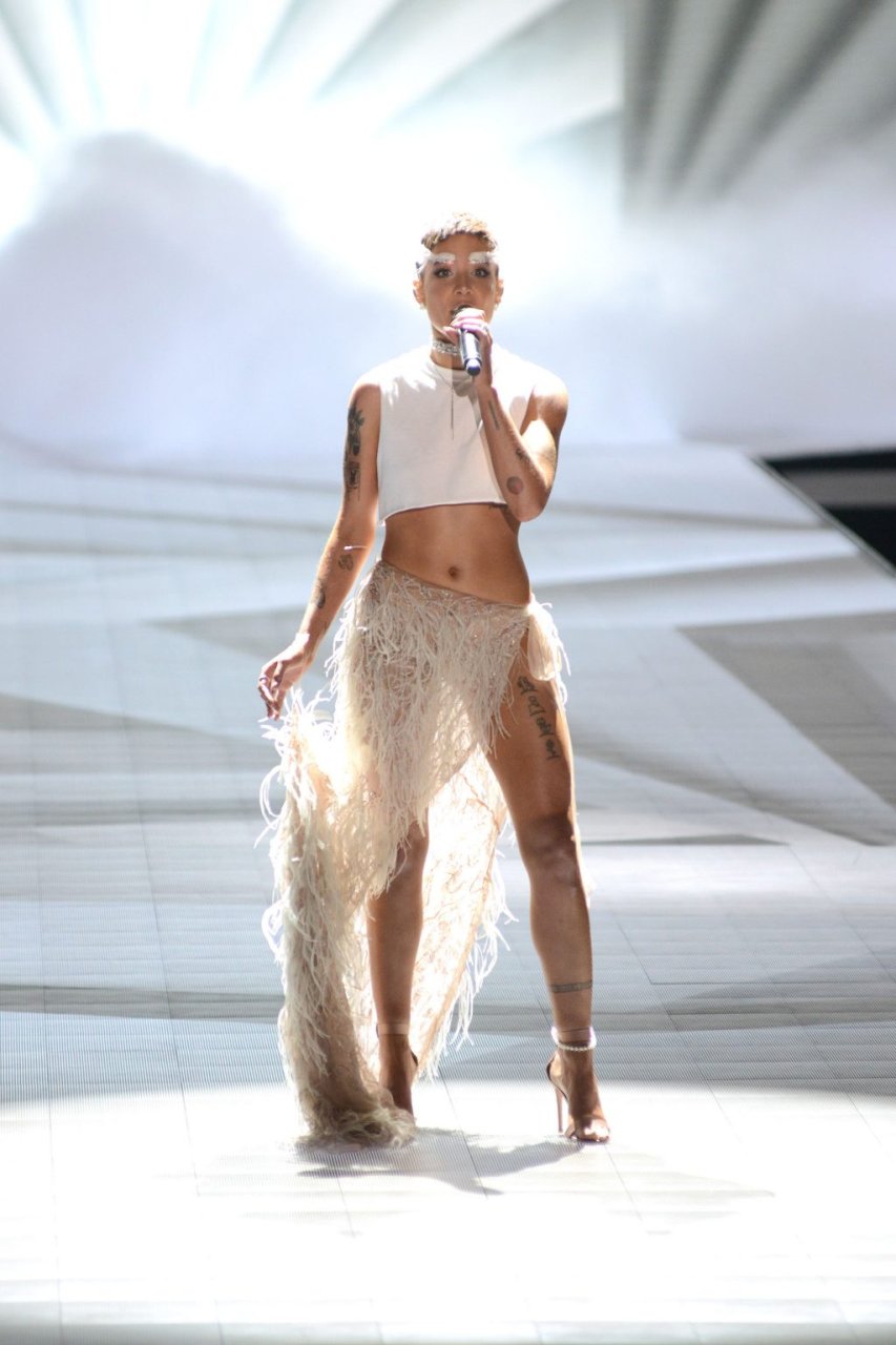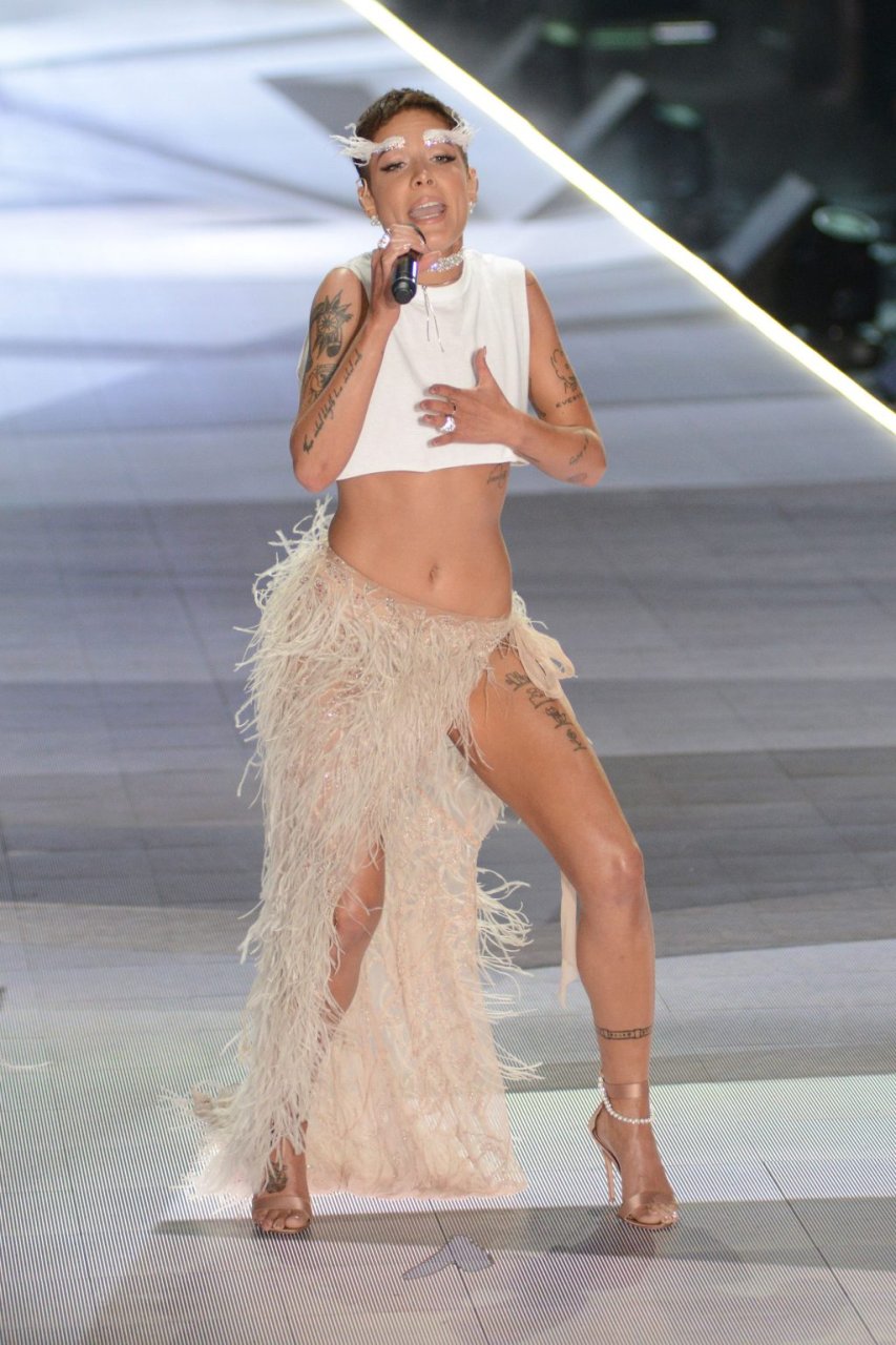 Une autre chanteuse, la tatouée sexy Halsey (Ashley Nicolette Frangipane) est apparue en tant que chanteuse au défilé de mode Victoria’s Secret 2018 au Pier 94 à New York, États-Unis, le 08/11/2018.