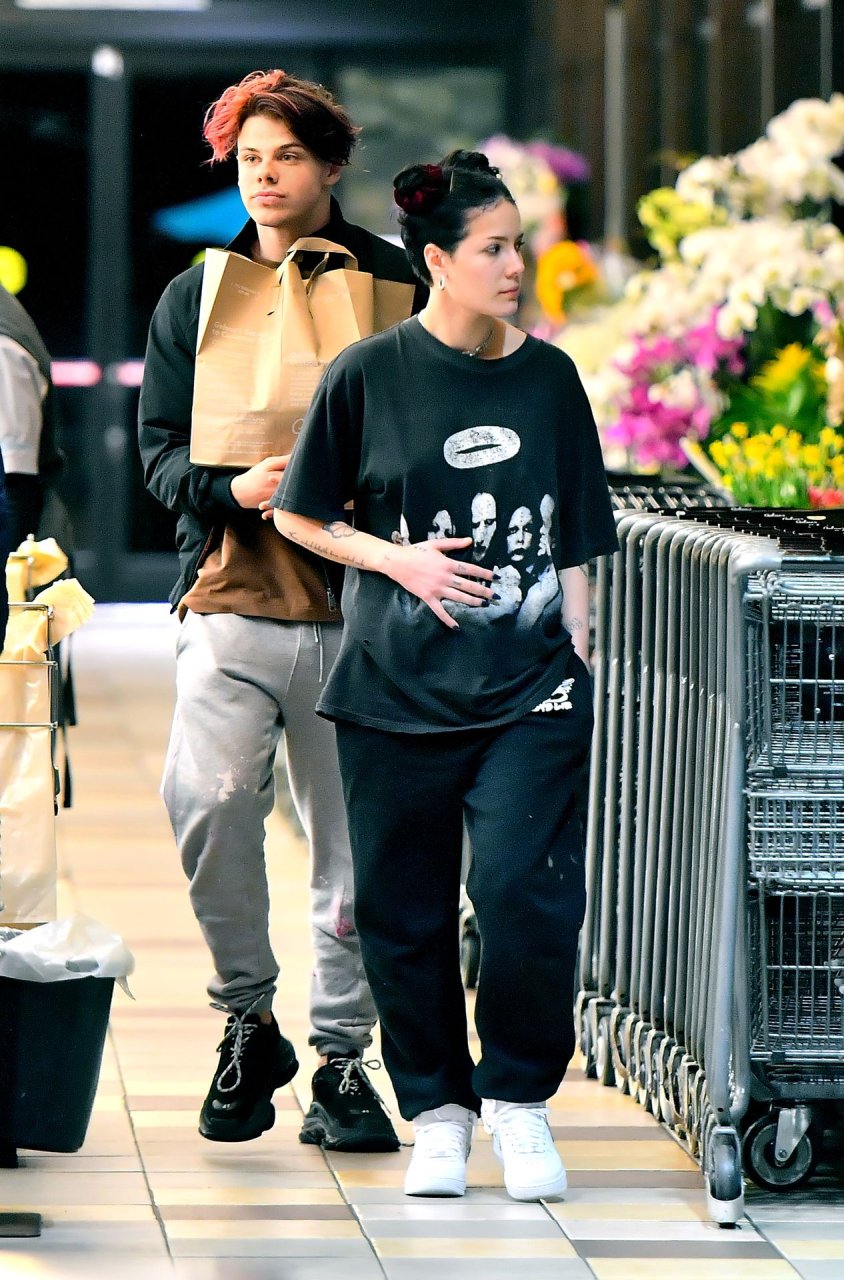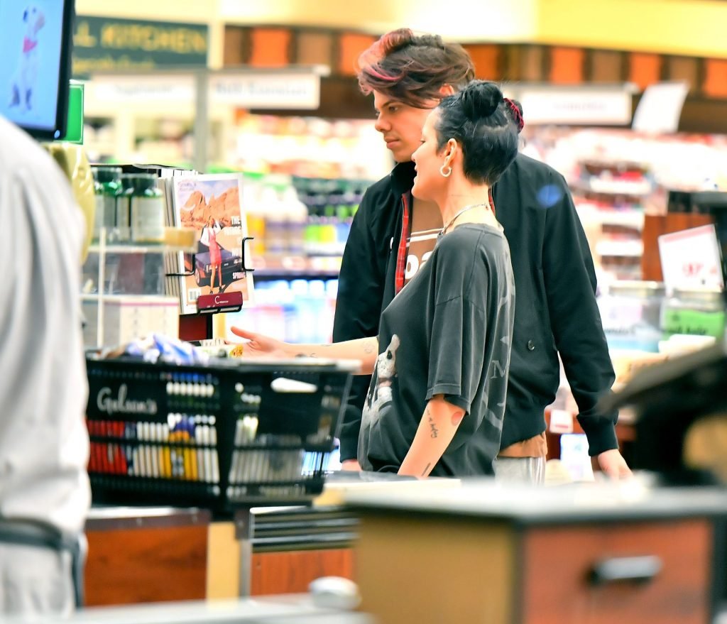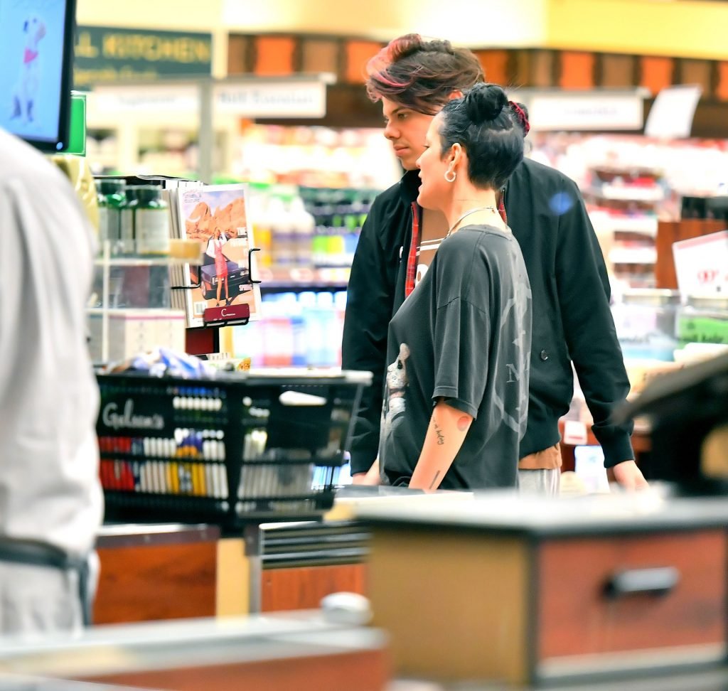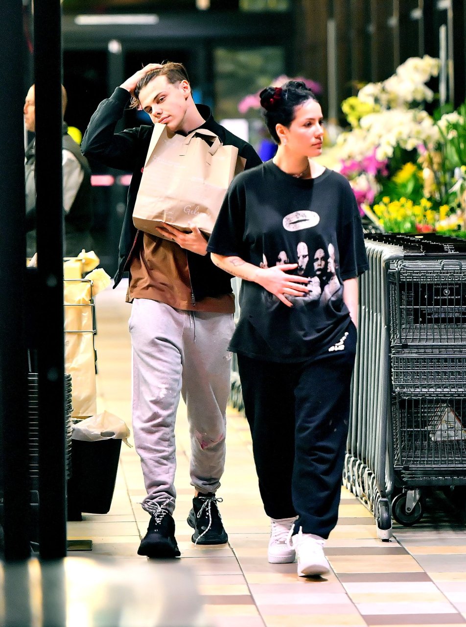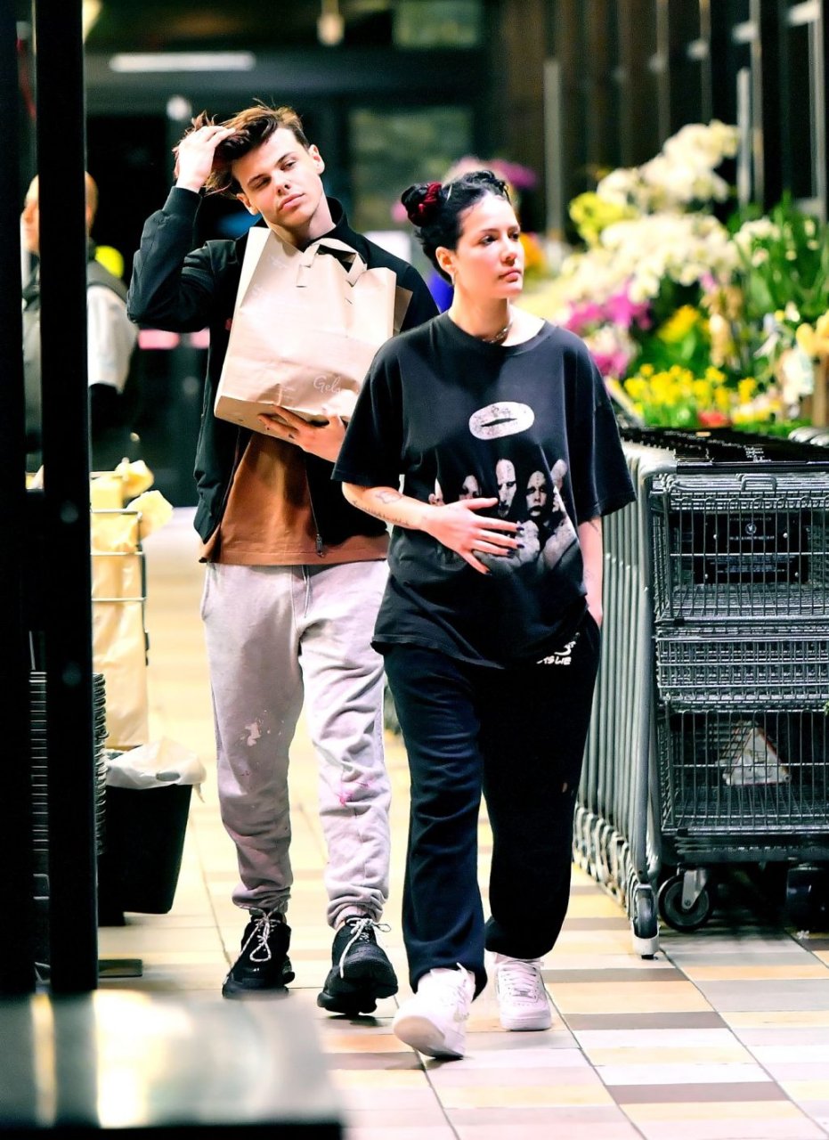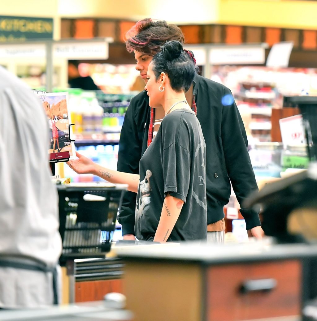 Halsey tenait son ventre alors qu’elle faisait des courses avec son petit ami Yungblud au Gelson’s Supermarket à Los Angeles, le 04/04/2019. La chanteuse semblait peut-être cacher un ventre de grossesse sous une chemise ample. Les deux tourtereaux ont été vus en train de montrer beaucoup de gestes d’affection en public et de regarder des magazines en attendant de payer leurs achats.