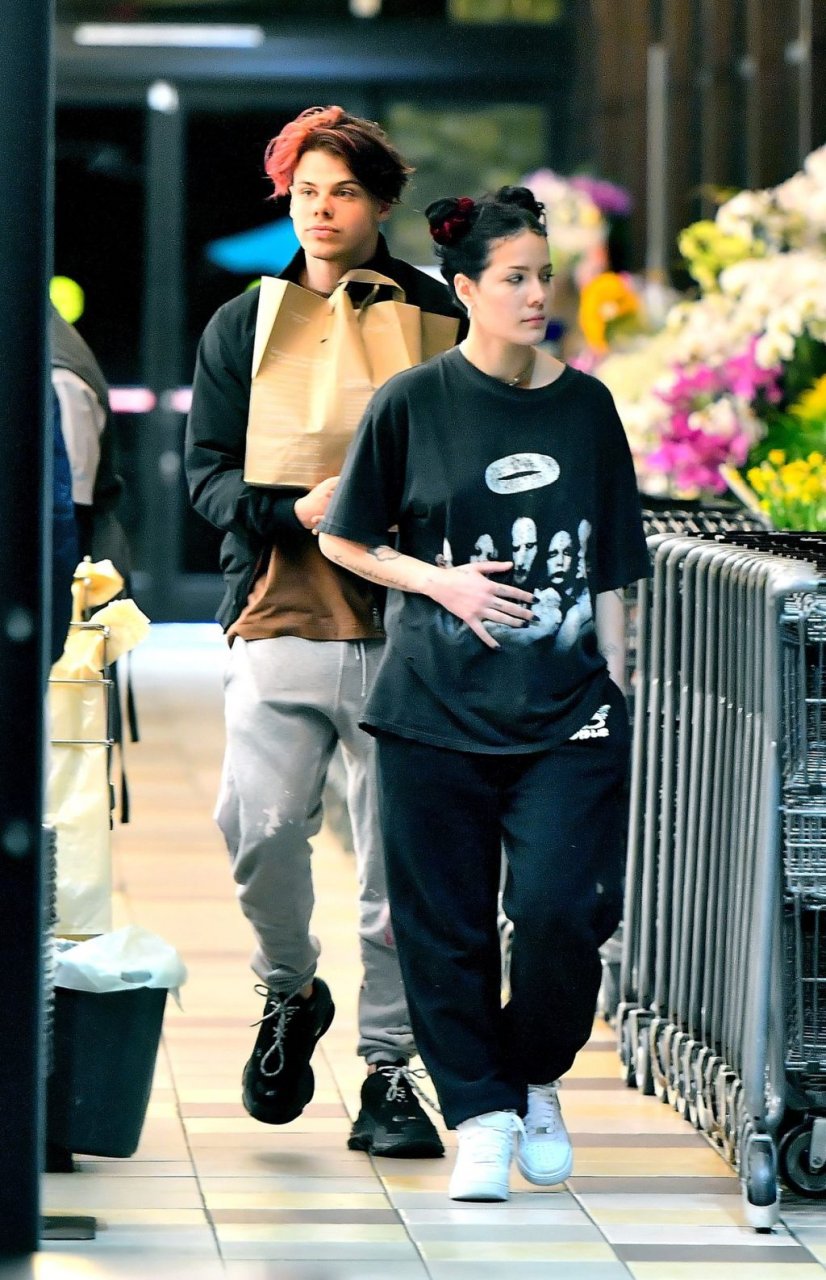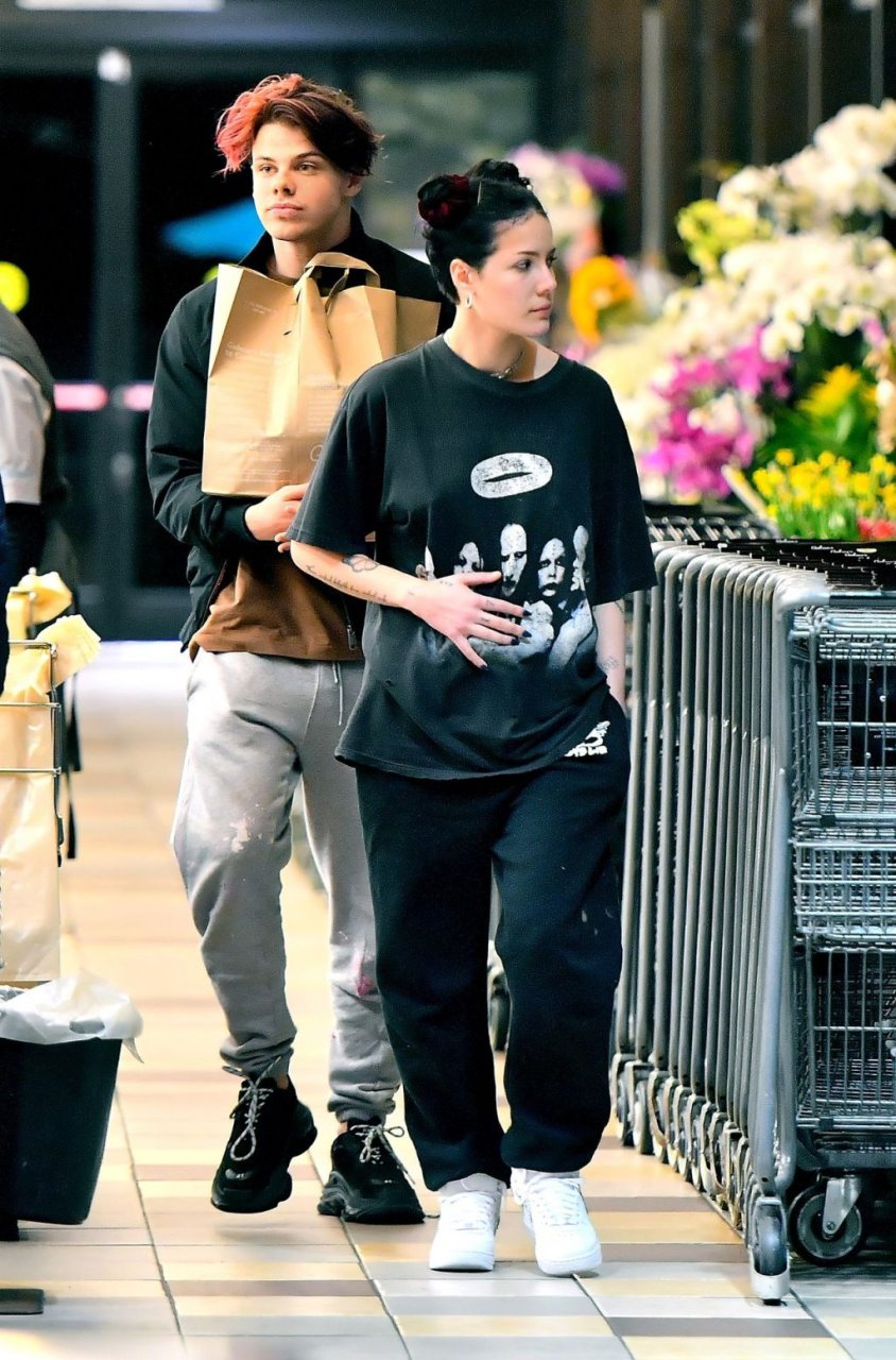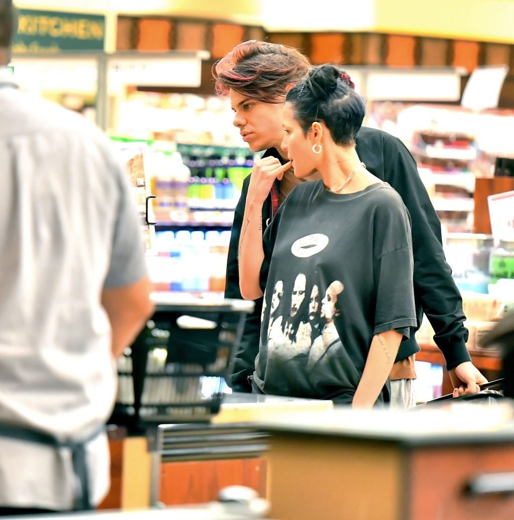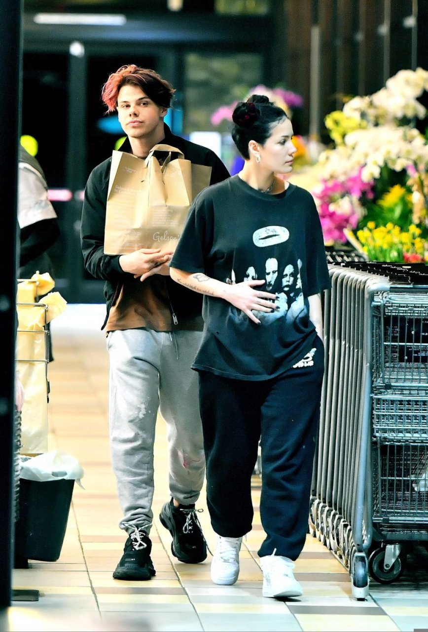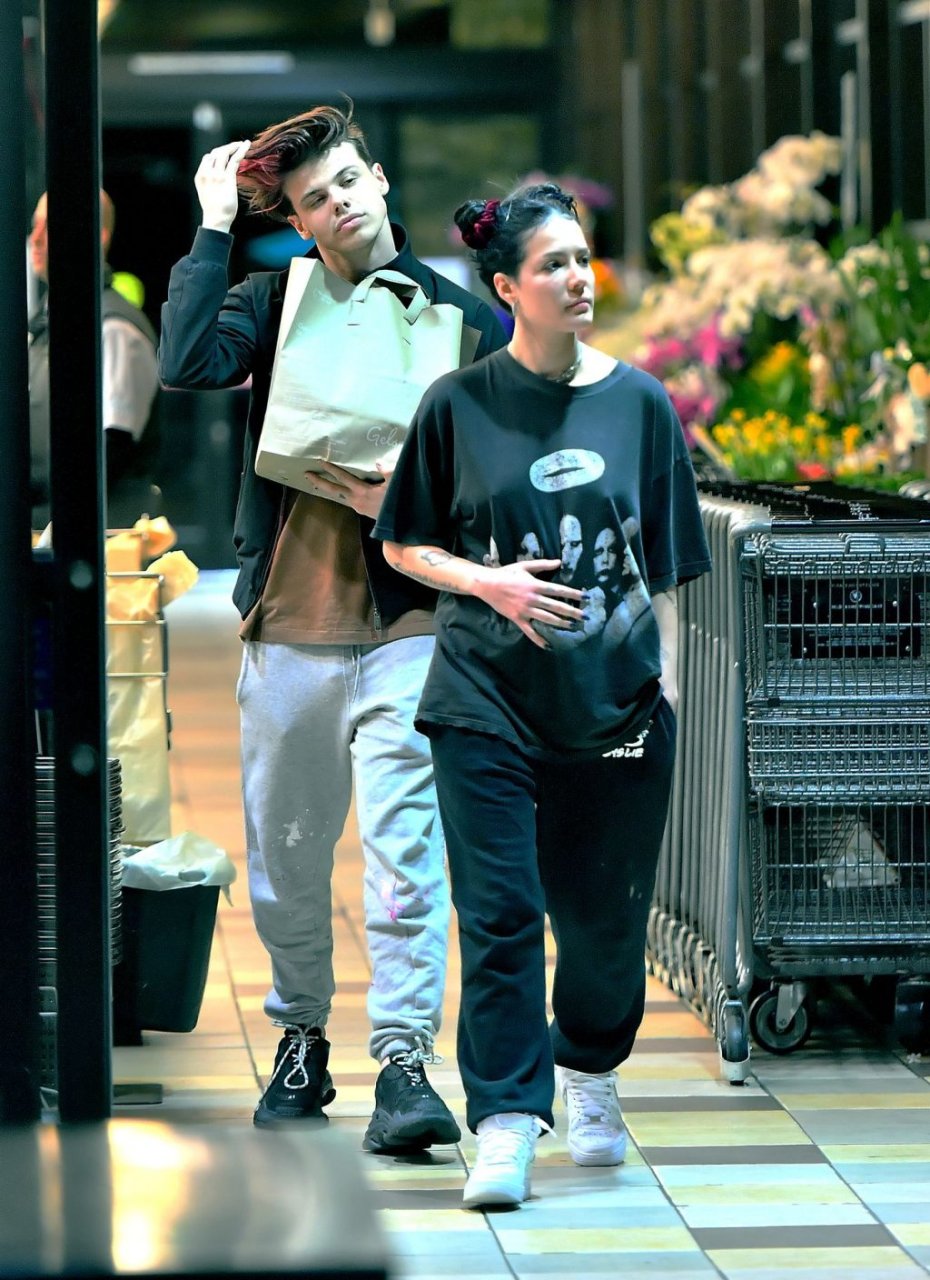 Halsey tenait son ventre alors qu’elle faisait des courses avec son petit ami Yungblud au Gelson’s Supermarket à Los Angeles, le 04/04/2019. La chanteuse semblait peut-être cacher un ventre de grossesse sous une chemise ample. Les deux tourtereaux ont été vus en train de montrer beaucoup de gestes d’affection en public et de regarder des magazines en attendant de payer leurs achats.