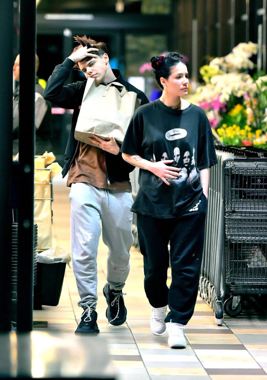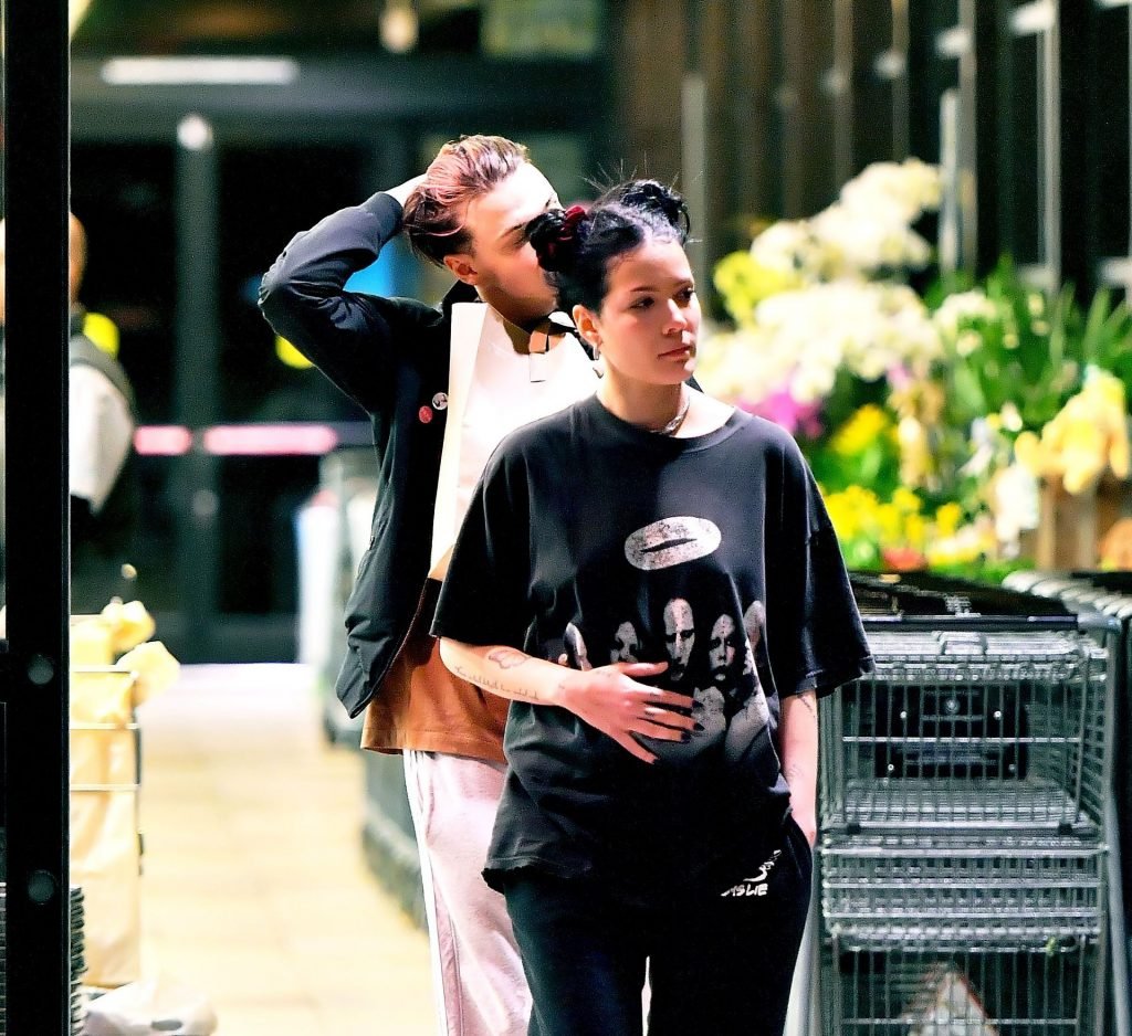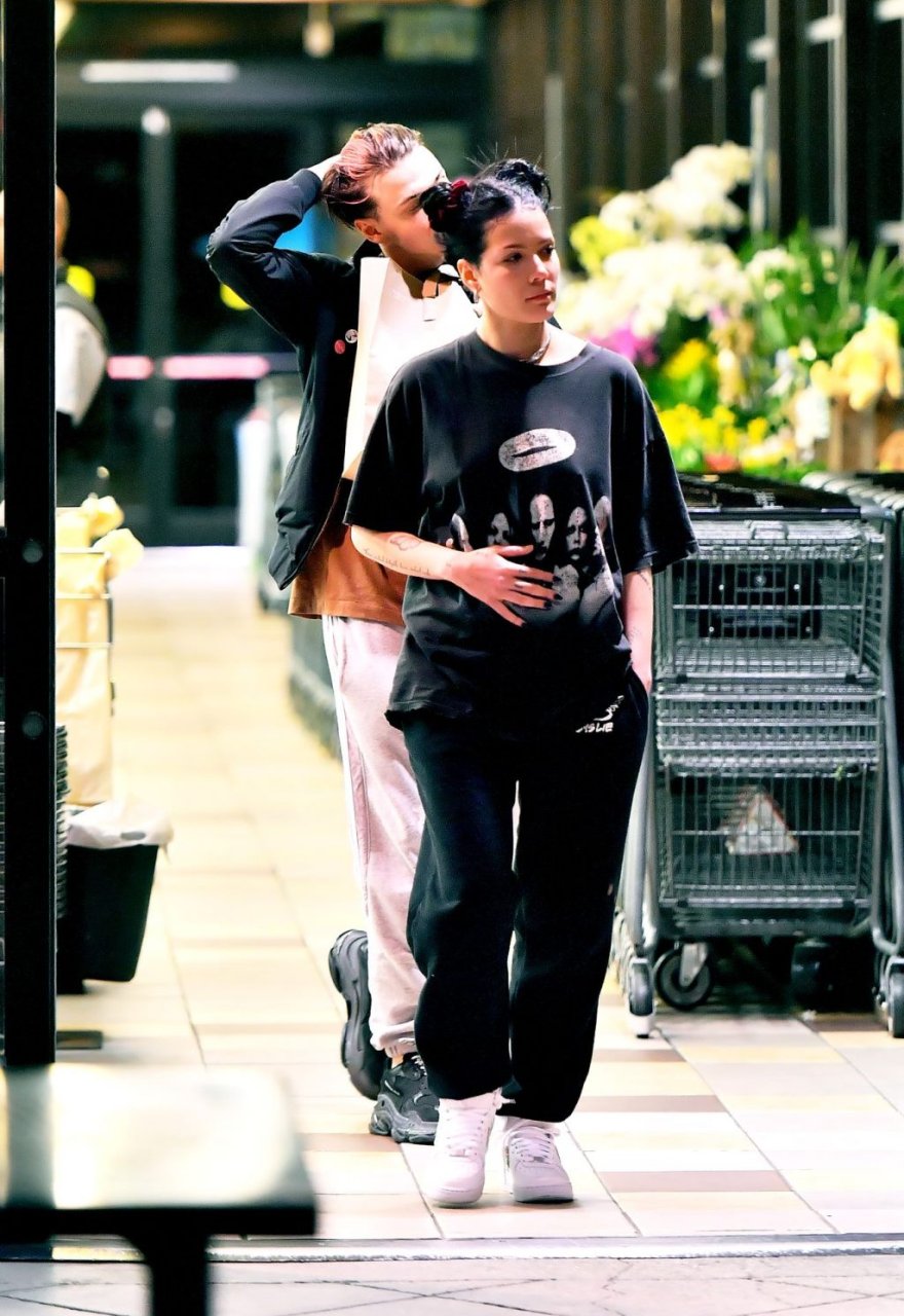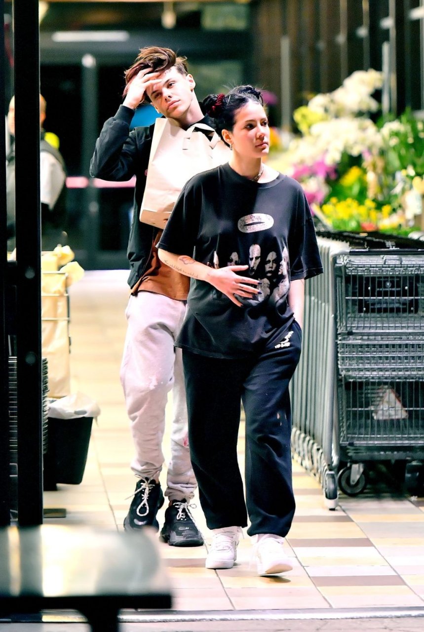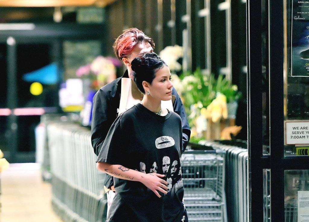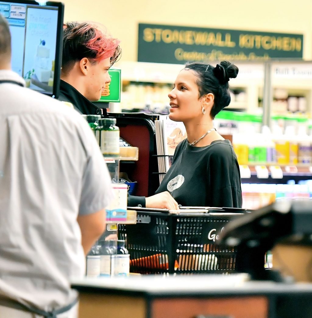Halsey tenait son ventre alors qu’elle faisait des courses avec son petit ami Yungblud au Gelson’s Supermarket à Los Angeles, le 04/04/2019. La chanteuse semblait peut-être cacher un ventre de grossesse sous une chemise ample. Les deux tourtereaux ont été vus en train de montrer beaucoup de gestes d’affection en public et de regarder des magazines en attendant de payer leurs achats.