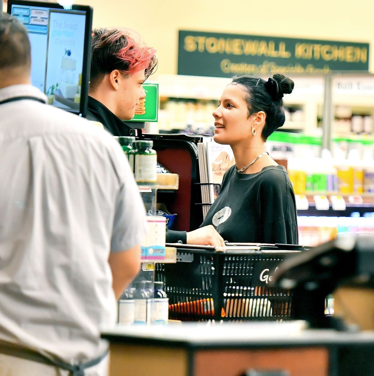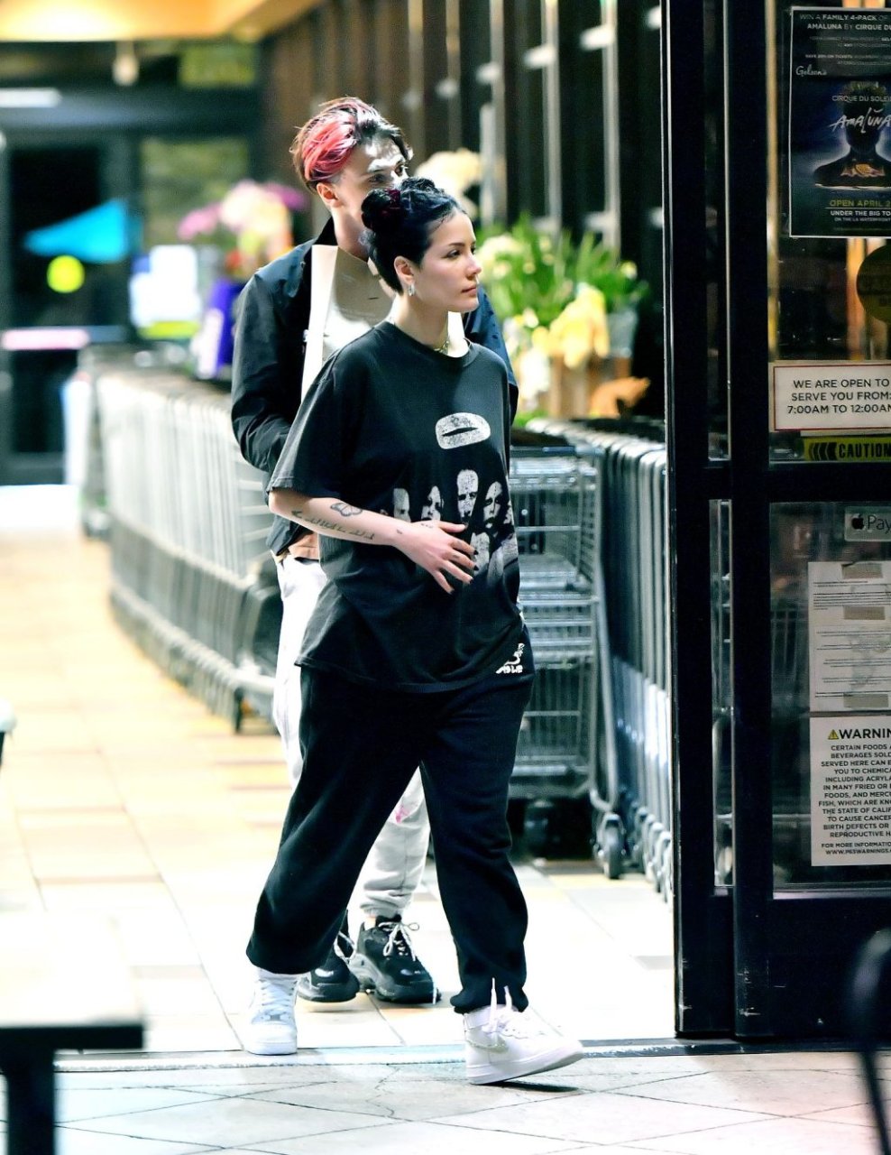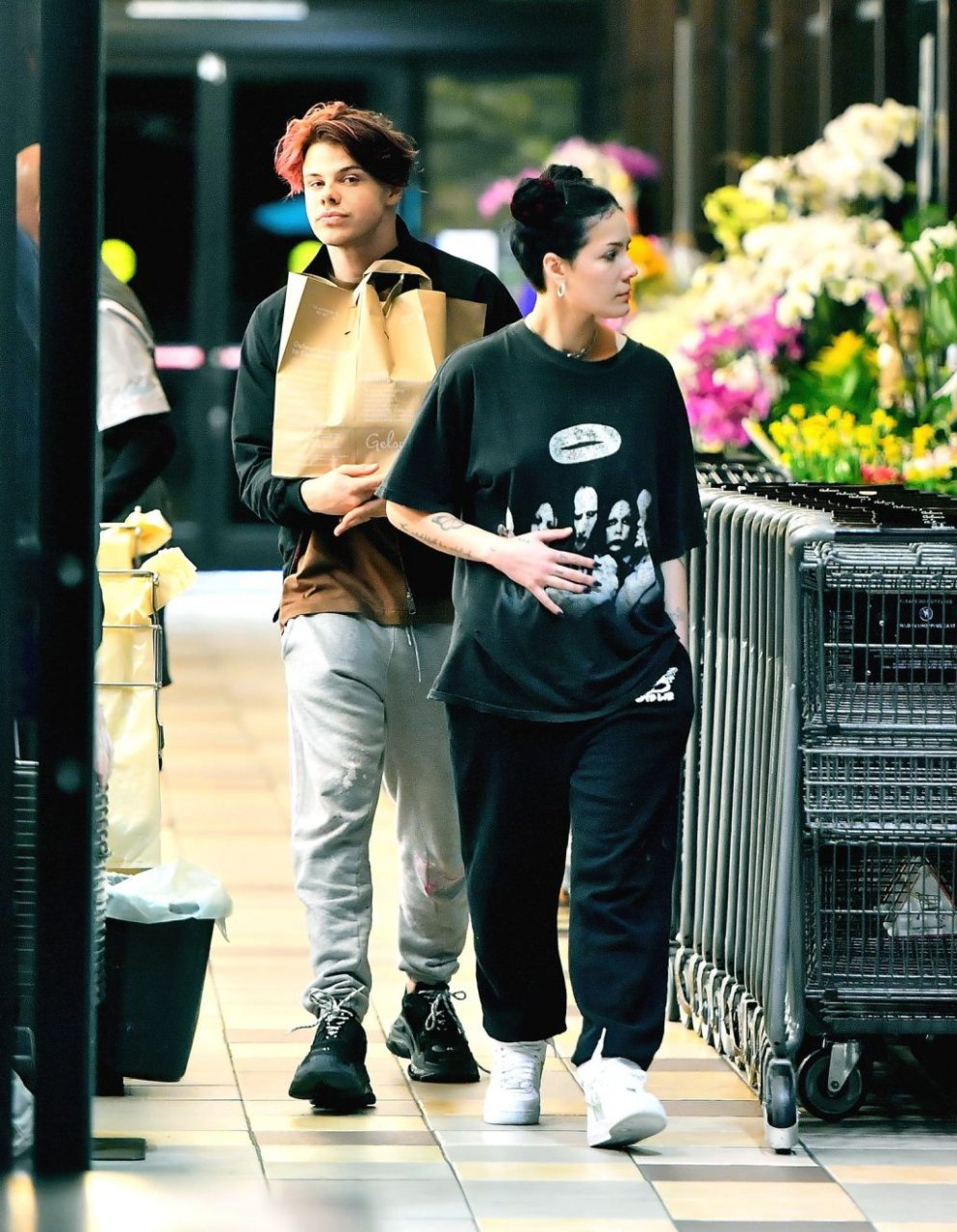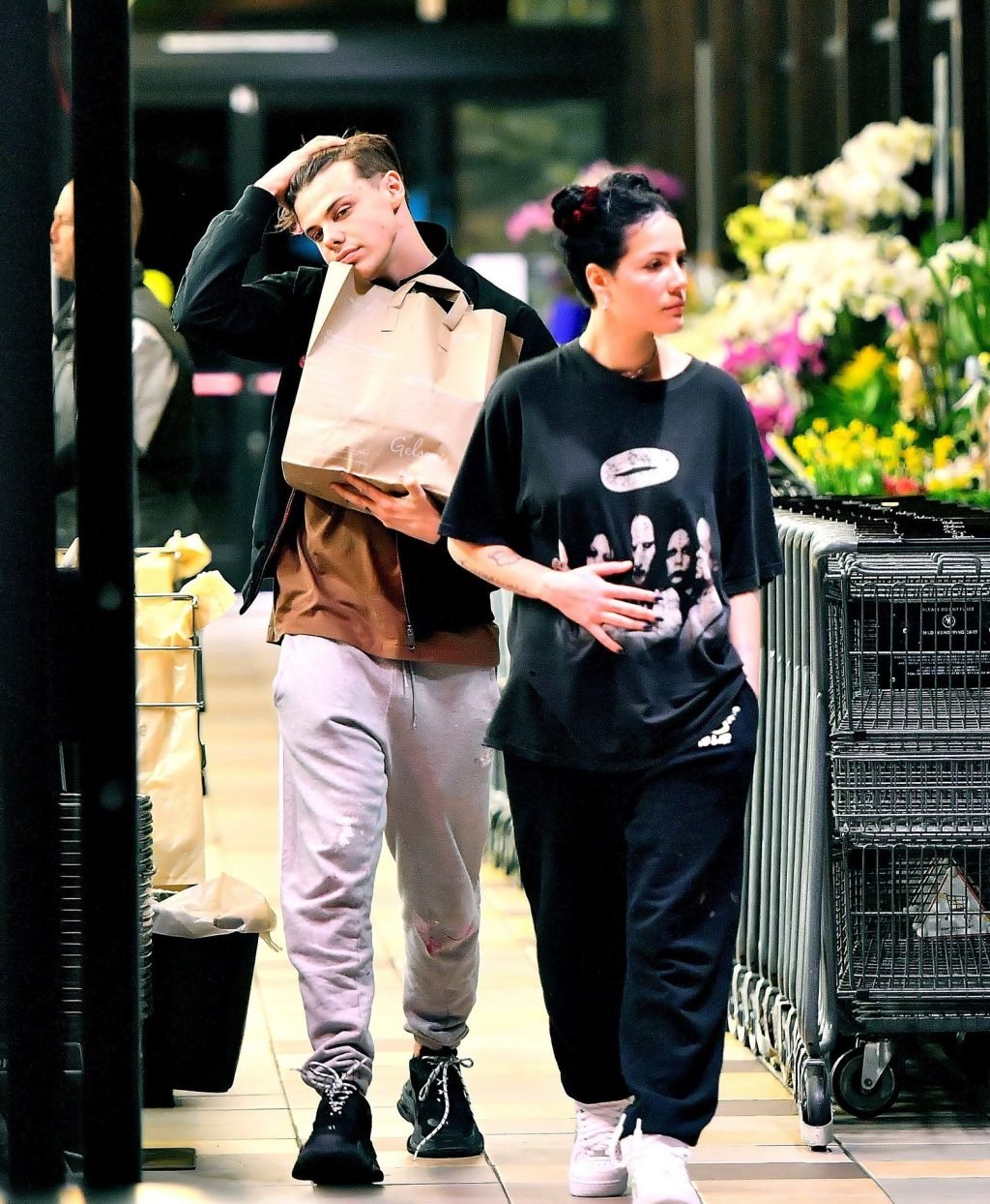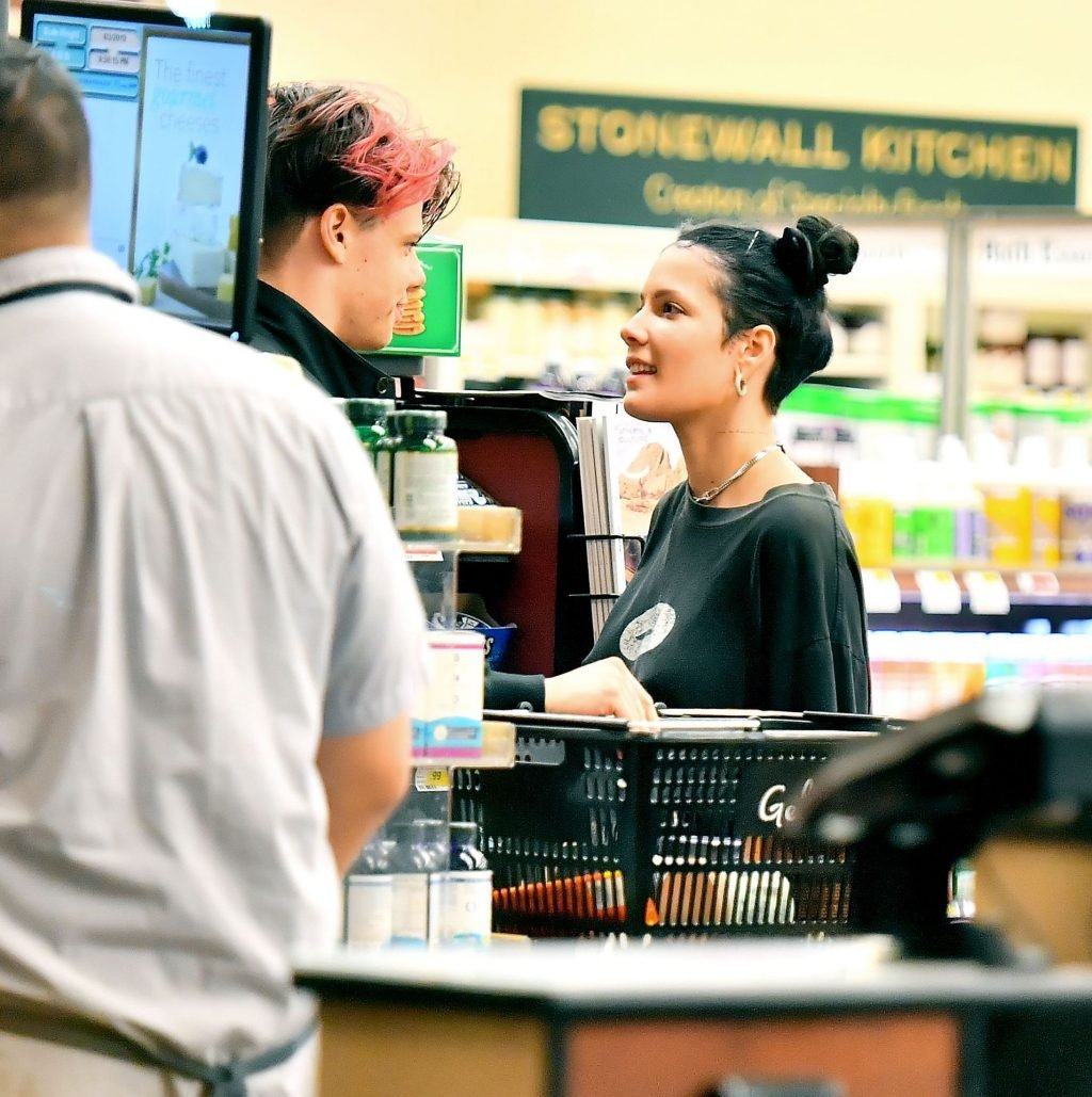 Halsey tenait son ventre alors qu’elle faisait des courses avec son petit ami Yungblud au Gelson’s Supermarket à Los Angeles, le 04/04/2019. La chanteuse semblait peut-être cacher un ventre de grossesse sous une chemise ample. Les deux tourtereaux ont été vus en train de montrer beaucoup de gestes d’affection en public et de regarder des magazines en attendant de payer leurs achats.