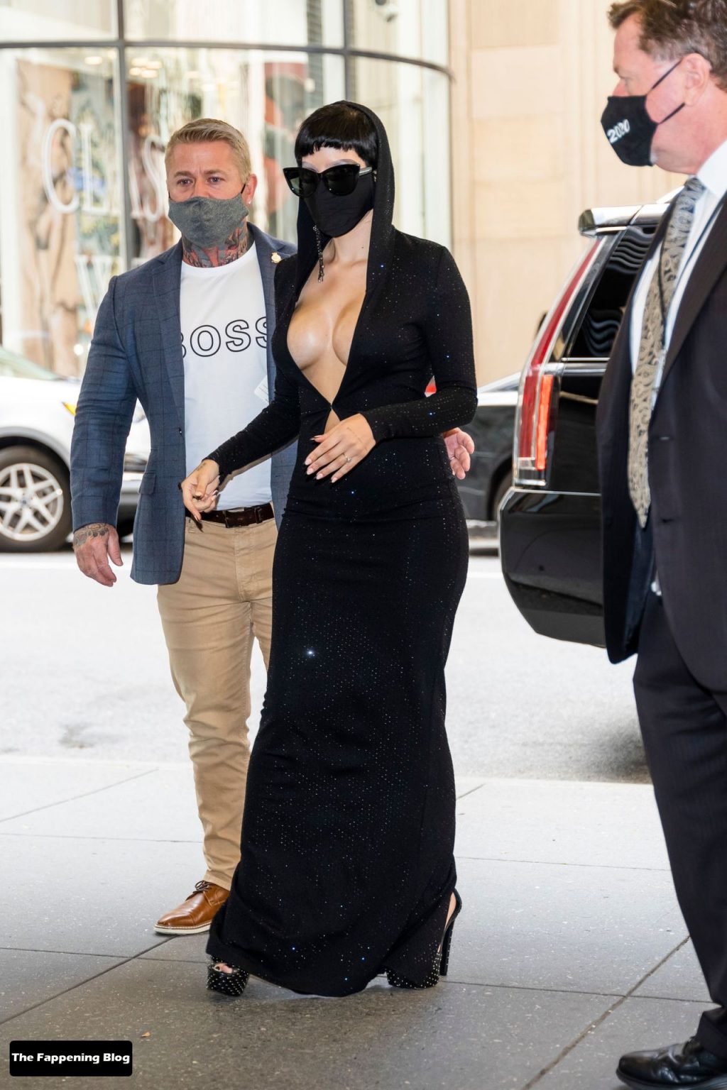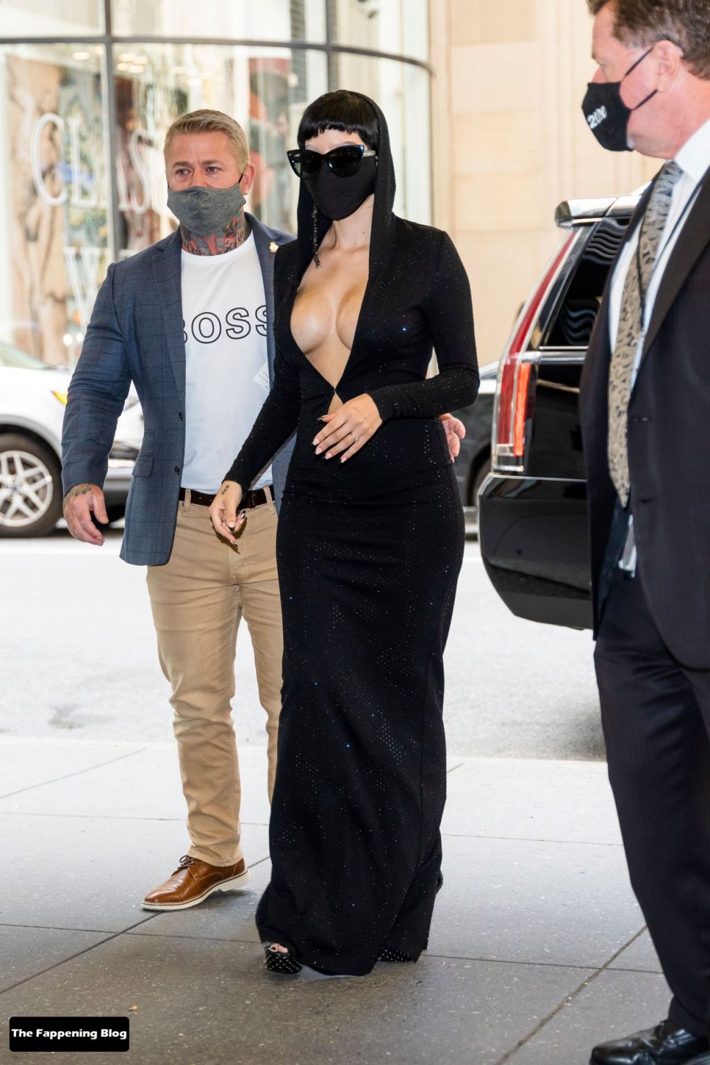 La chanteuse Halsey a un look à la mode alors qu’elle sort à New York, le 07/10/2021. Elle est photographiée dans une robe noire décolletée suite à la sortie de son film.