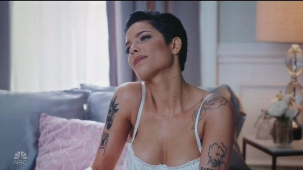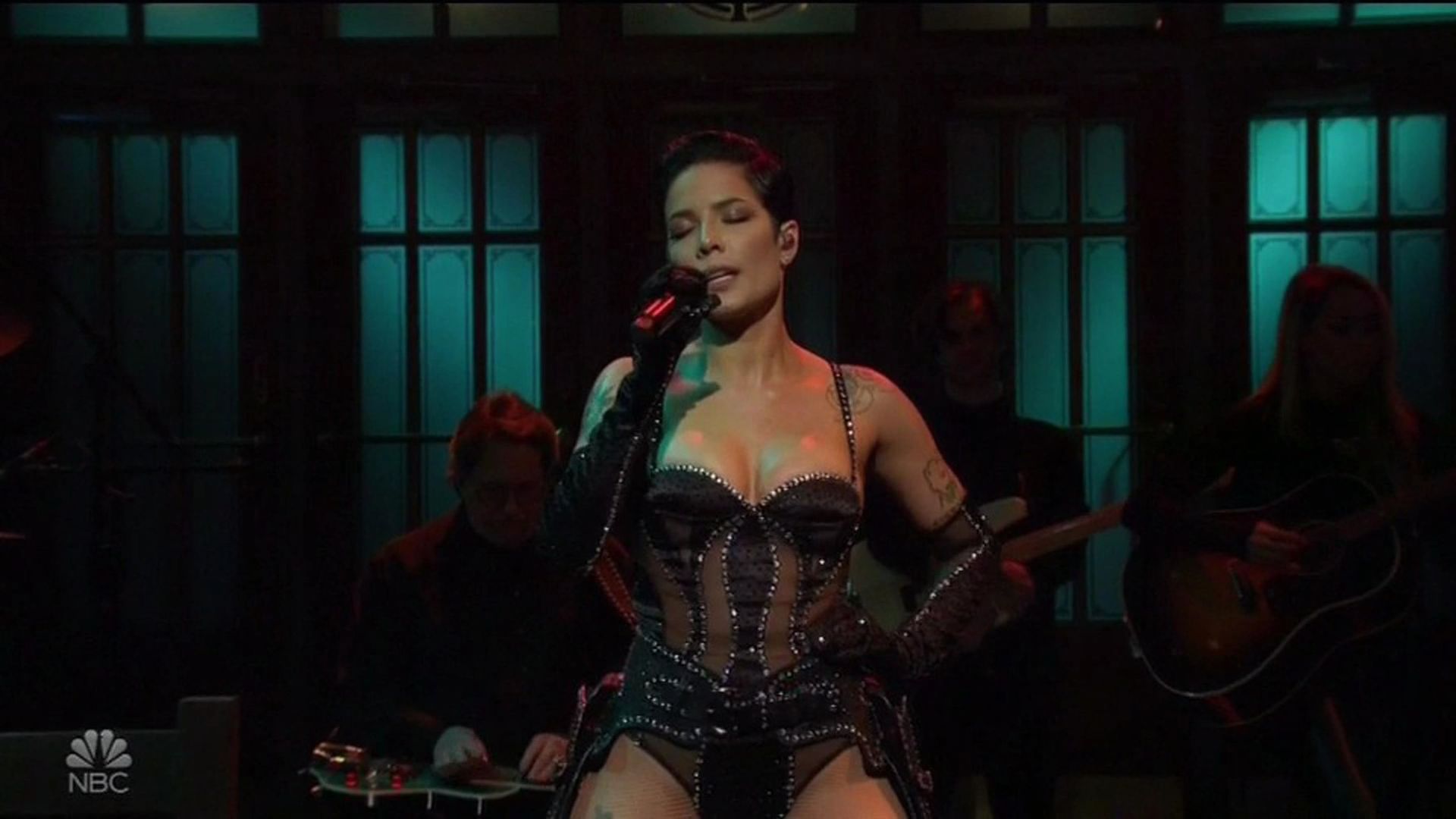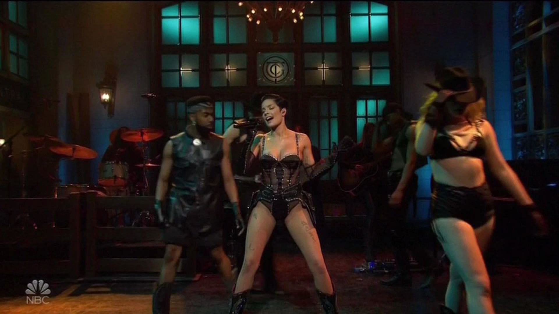 Halsey enflamme l’écran lors de sa performance sur Saturday Night Live et se déshabille jusqu’à ses sous-vêtements pour un sketch numérique.
