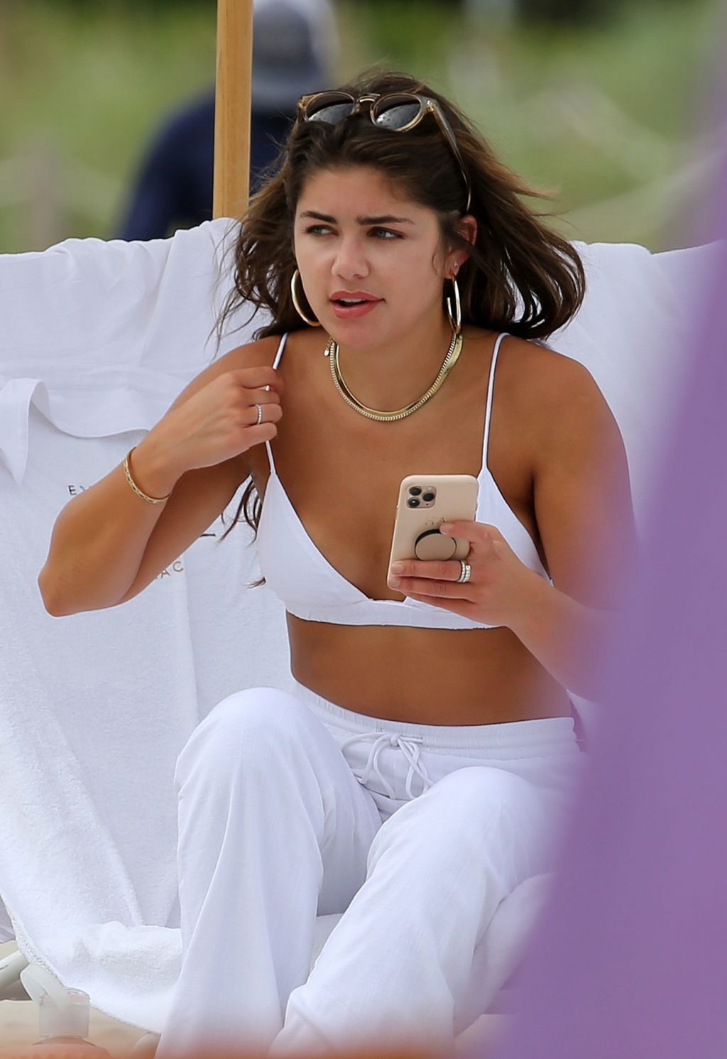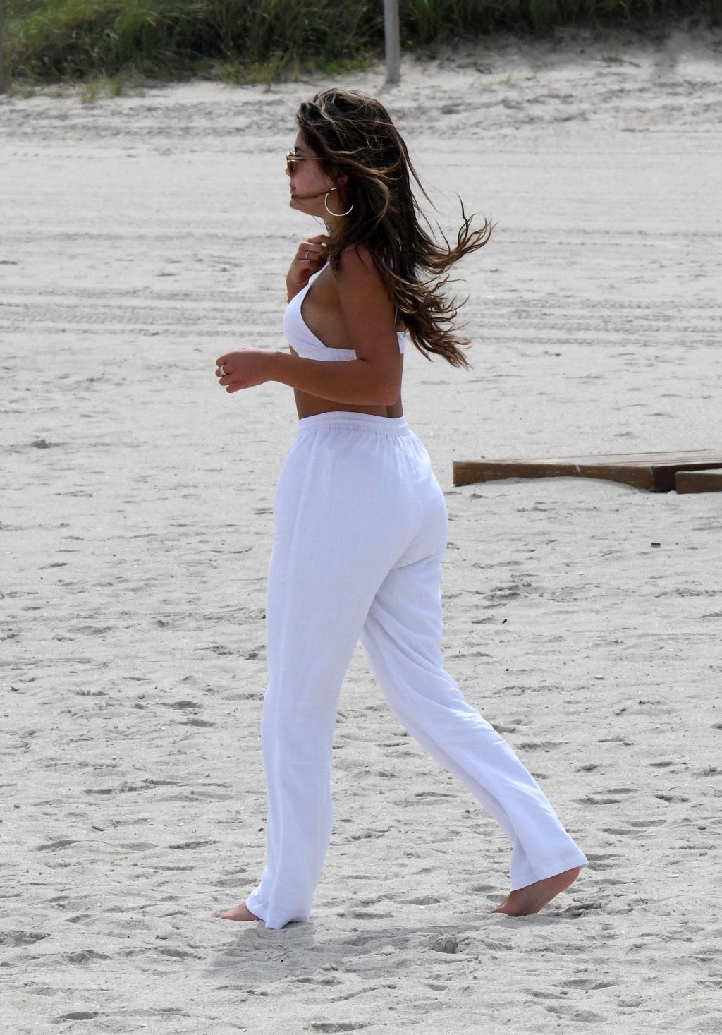 La mannequin brune de 24 ans a coordonné son maillot de bain blanc minimaliste avec une chemise en lin ample et un pantalon palazzo alors qu’elle foulait le sable. Originaire du Tennessee, elle est une favorite des fans qui est apparue dans la saison du pilote Peter Weber de l’émission de rencontres populaire d’ABC et est une gagnante de concours de beauté.