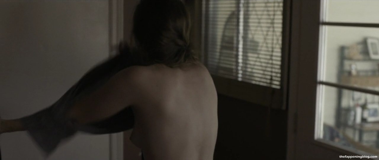 Hannah Gross, célèbre pour “The Sinner”, dort nue sur le ventre tandis qu’un homme allongé à côté d’elle prend un chat et le pose sur son dos pour la taquiner, puis essaie de la mettre dans l’ambiance pour avoir des rapports sexuels avec lui en embrassant son dos alors qu’elle se redresse sur ses genoux révélant ses seins, puis elle glisse jusqu’au bord du lit pour enfiler sa culotte avant de se lever et de sauter un peu en montrant son sein gauche jusqu’à ce qu’elle attrape finalement une chemise, l’enfile et parte.