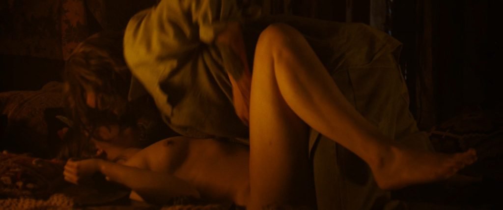 L’actrice de “Game of Thrones” Hannah Murray dans une scène de sexe nue de “Charlie Says” (2018), où elle montre ses seins et ses fesses naturels. L’homme se tient devant elle, tandis qu’elle enlève ses vêtements et montre son corps entièrement nu. Ensuite, lui et Hannah commencent à avoir un rapport sexuel classique.