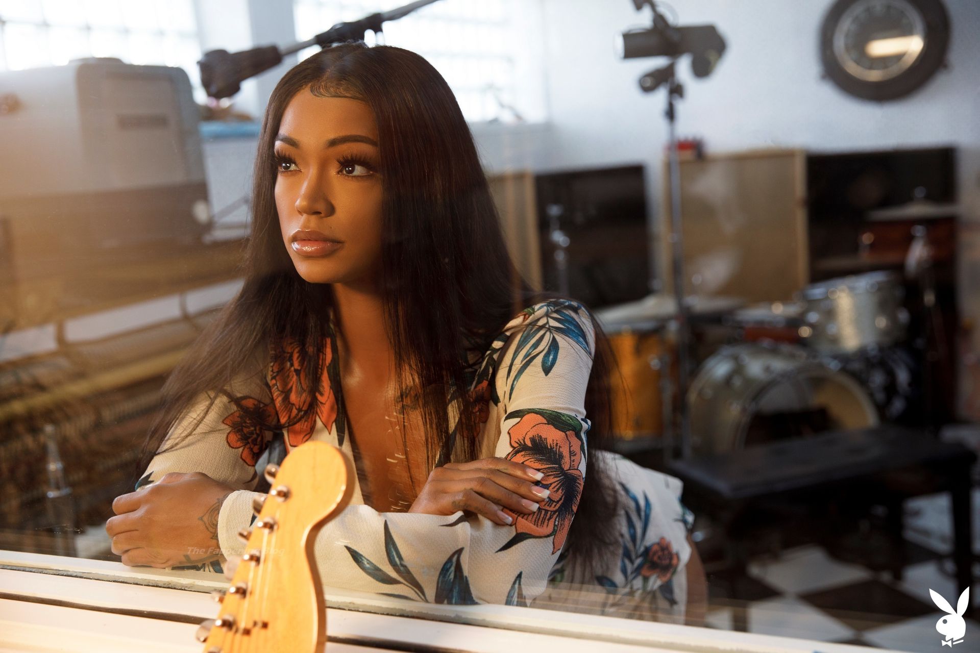 L’actrice porno et mannequin Harley Dean se dénude dans une nouvelle séance photo pour Playboy Plus (2021). Elle est très sexy, posant entièrement nue, exhibant ses faux seins noirs, ses fesses et son sexe percé dans le studio d’enregistrement.