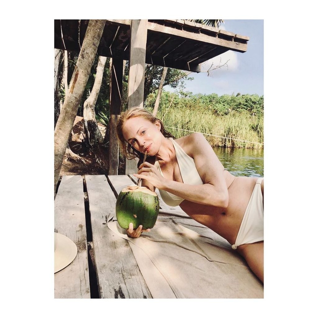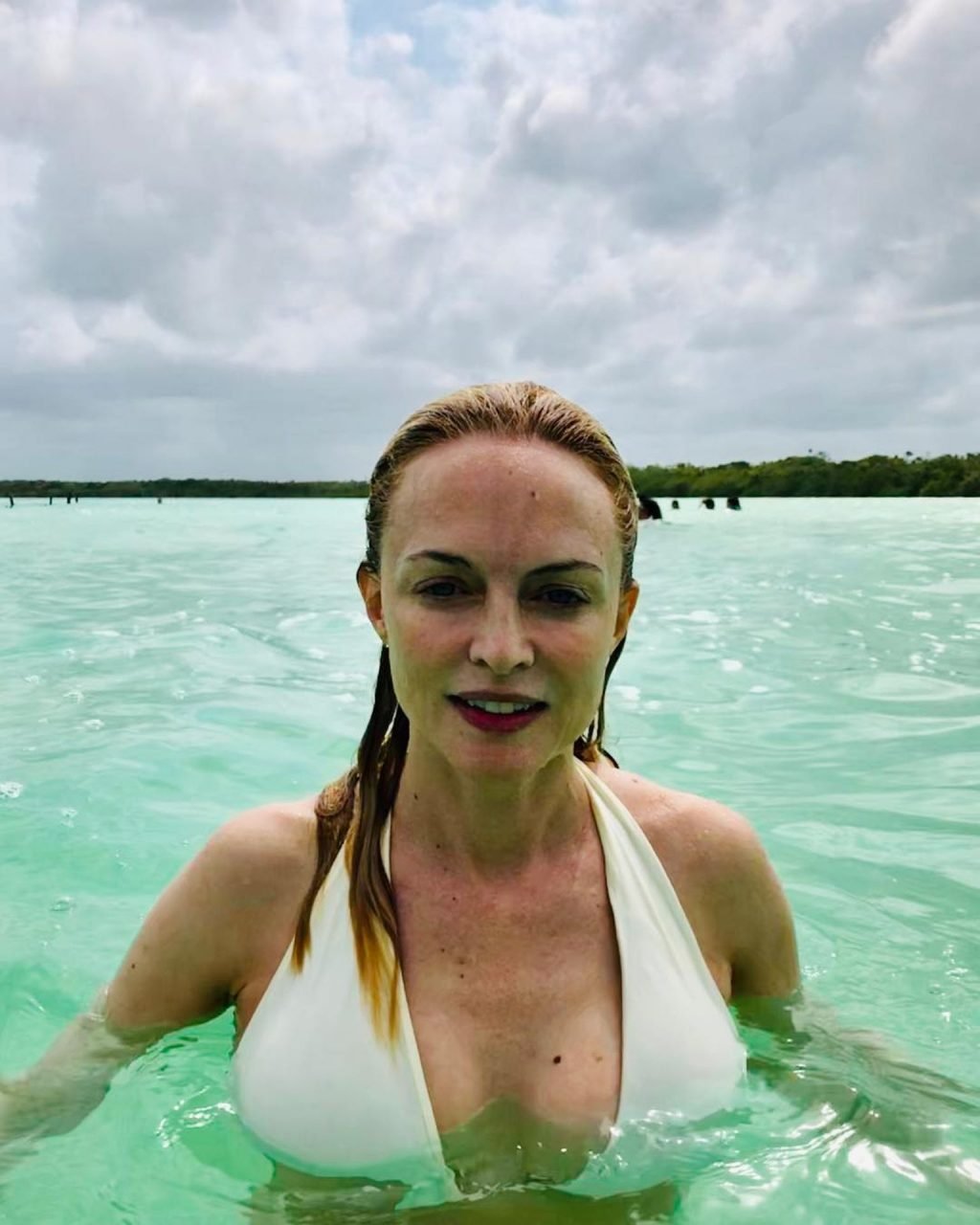 L’actrice Heather Graham fait sensation à Tulum alors qu’elle profite de ses vacances dans un magnifique bikini deux pièces blanc, 07/05/2019. Heather se détend sous une cabane avant de plonger dans les eaux mexicaines.