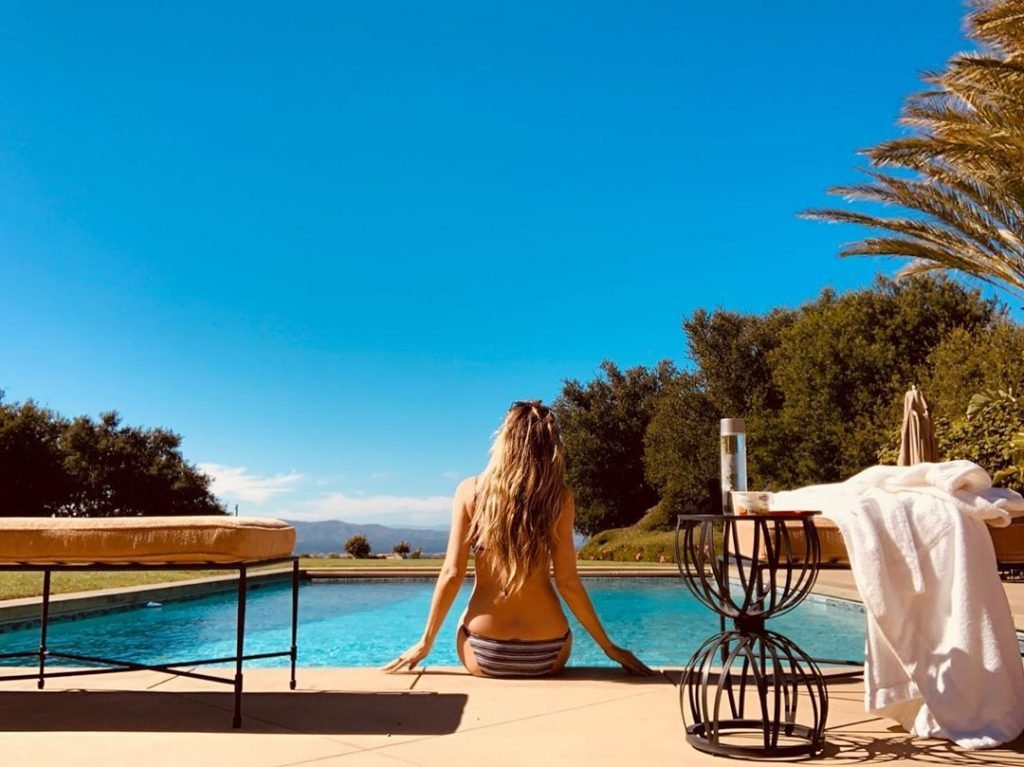 Heidi Klum avec une fente dans sa jupe qui montre ses fesses / sous-vêtements + quelques photos en bikini d’Instagram (juillet 2019).
