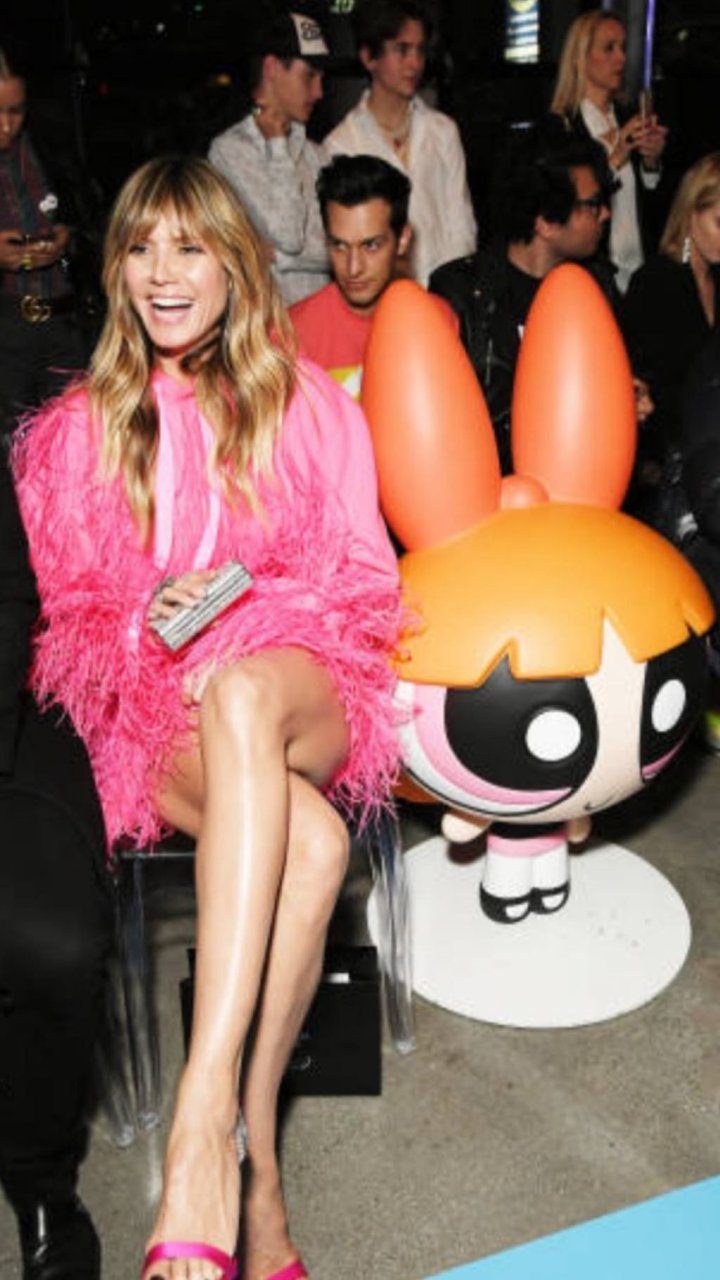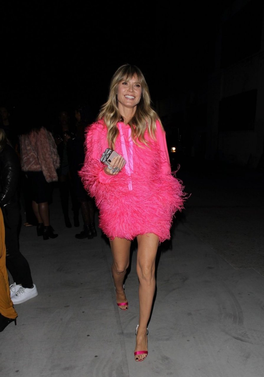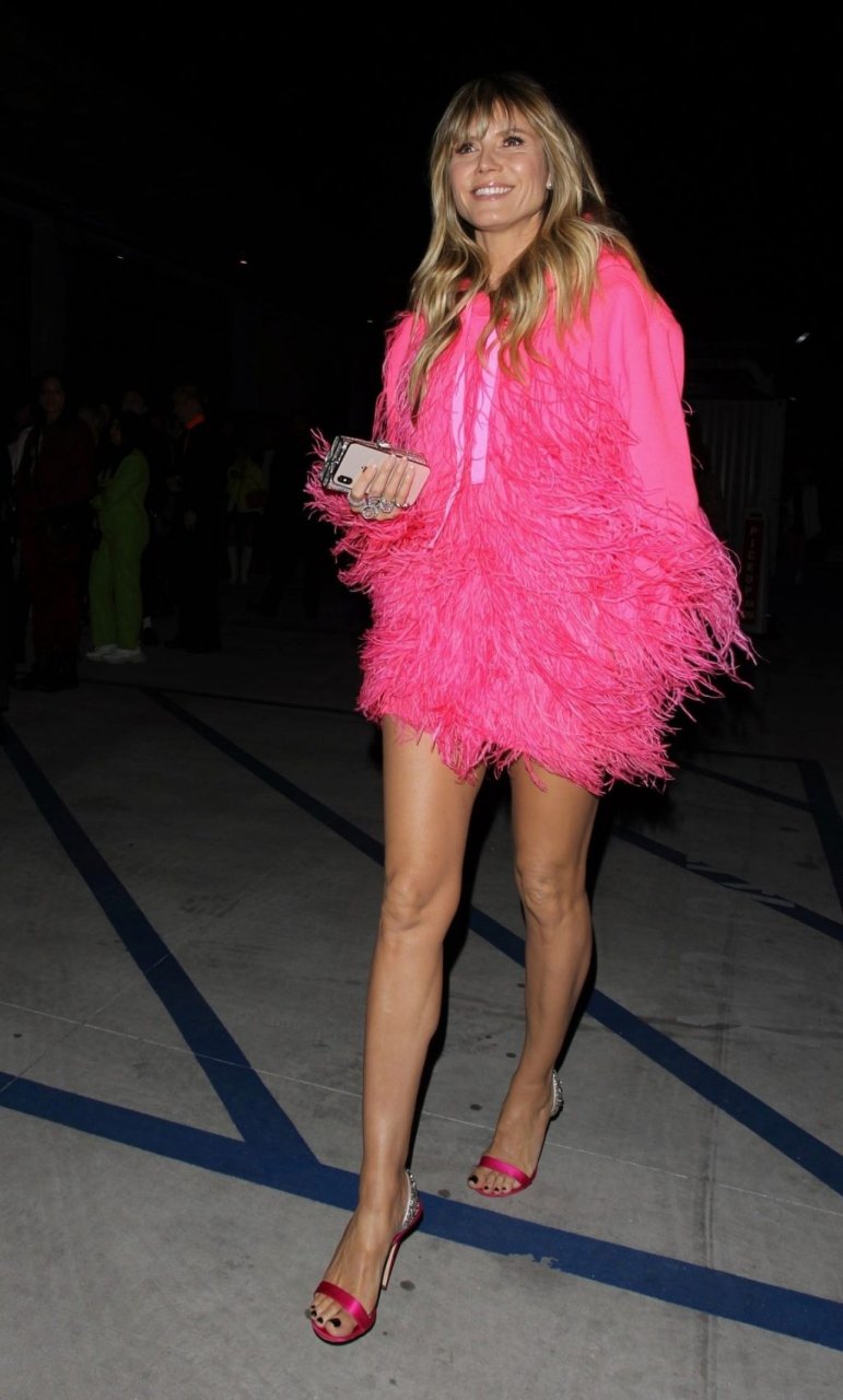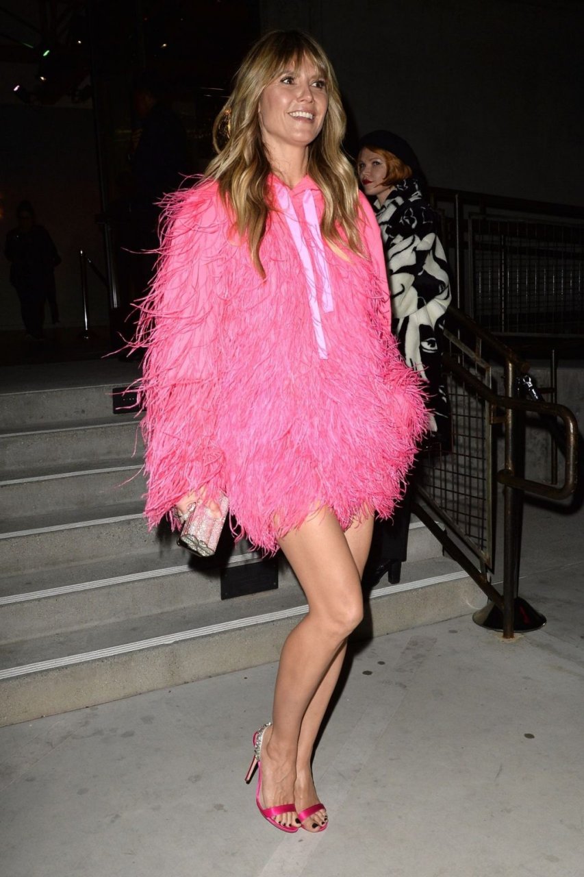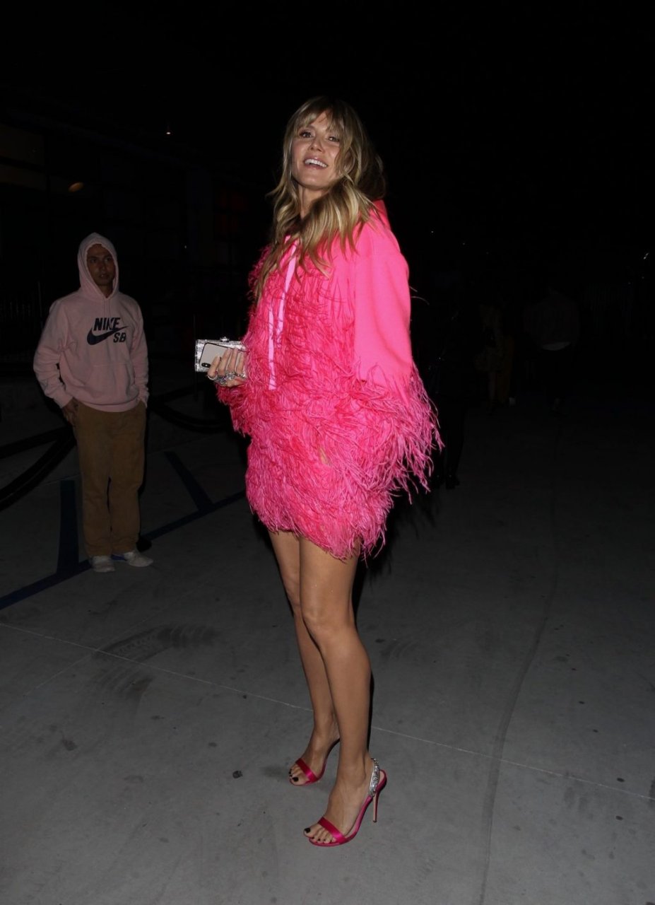 Heidi Klum a été vue quittant l’événement “Les Supers Nanas” à DTLA, jolie dans un sweat à capuche rose duveteux et des talons.