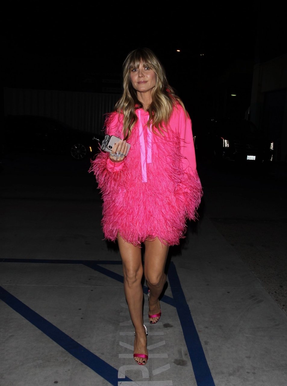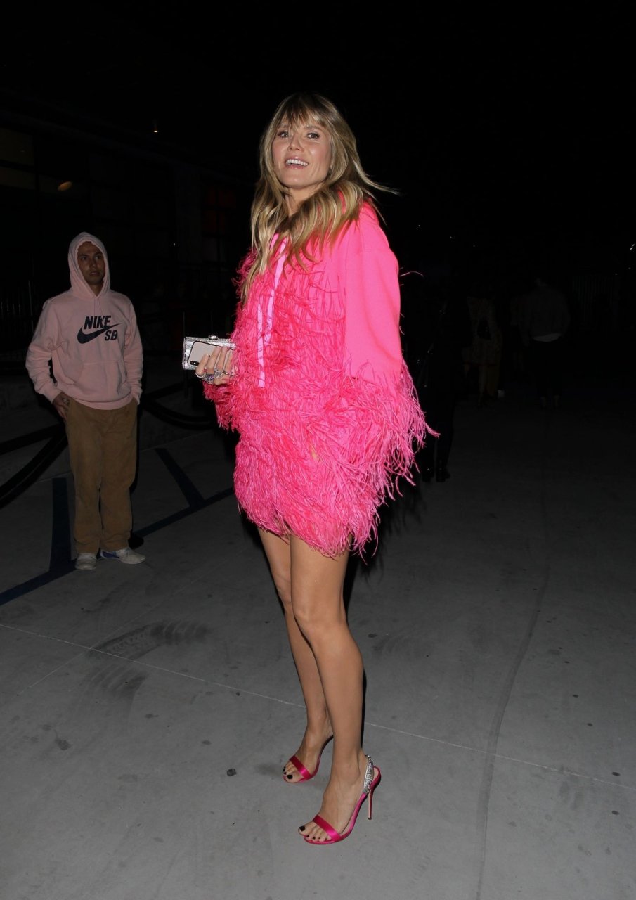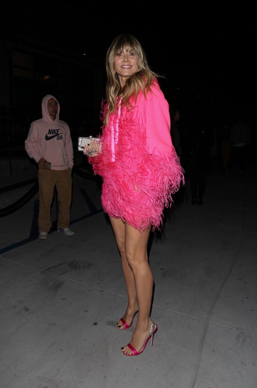 Heidi Klum a été vue quittant l’événement “Les Supers Nanas” à DTLA, jolie dans un sweat à capuche rose duveteux et des talons.
