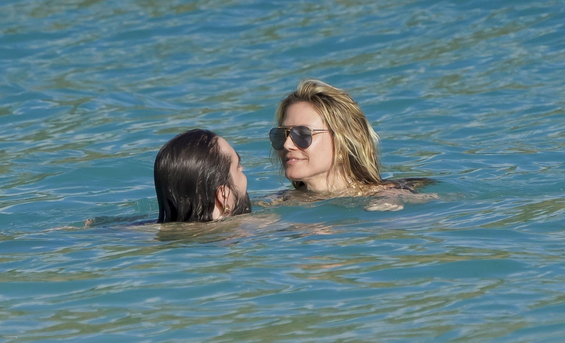 Plongeant dans les eaux turquoise et échangeant quelques baisers romantiques, se prélassant sous le soleil des Caraïbes, le mannequin allemand Heidi était superbe dans son bikini à fleurs tandis que le guitariste de Tokio Hotel, Tom, portait son short rose alors que le couple continuait de montrer leur amour et leur alchimie indéniable dans une ambiance détendue.
