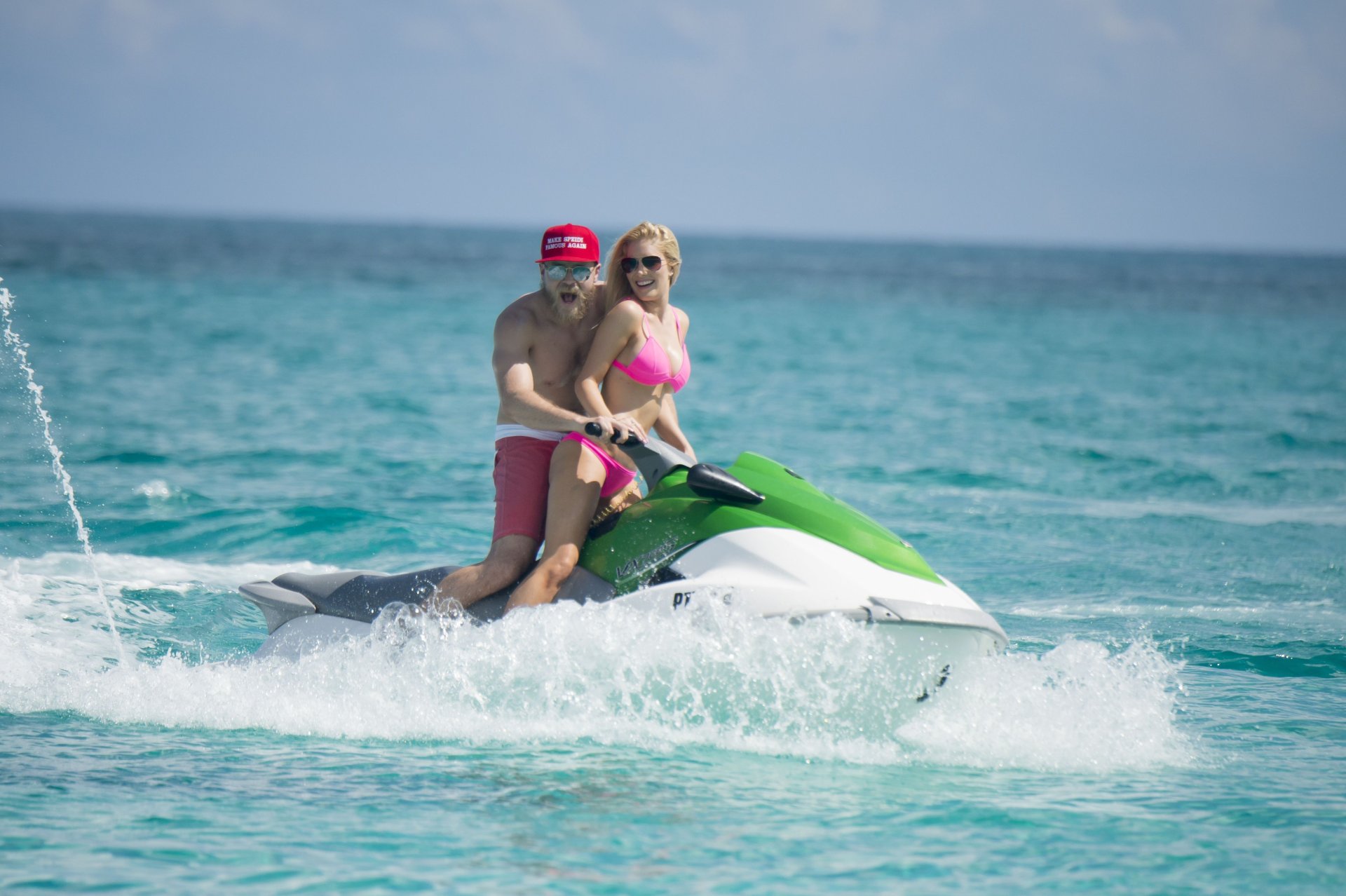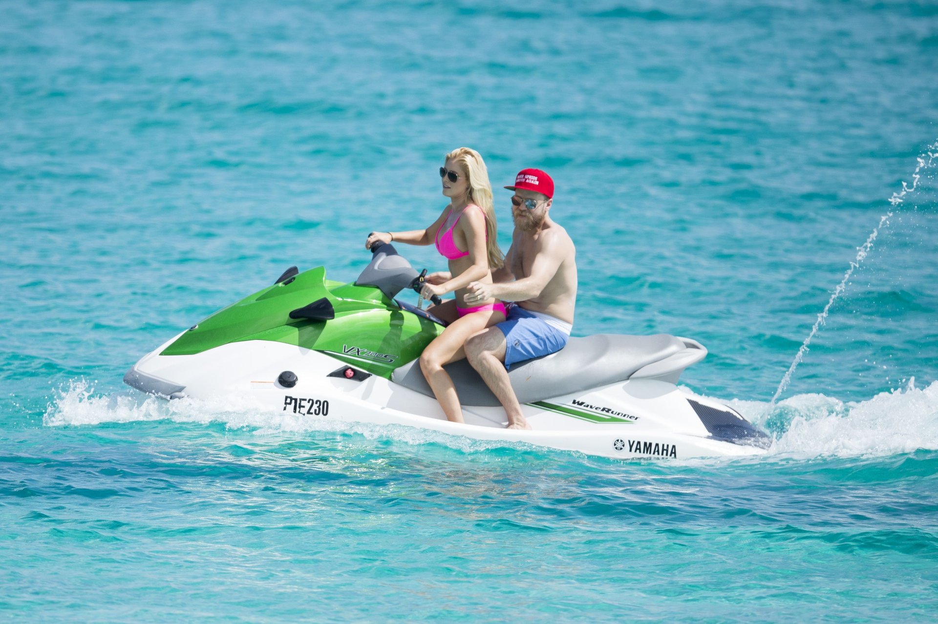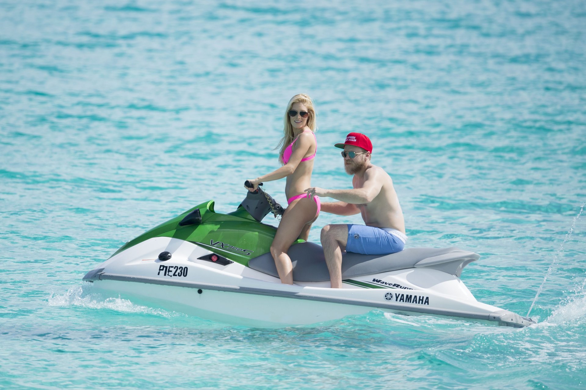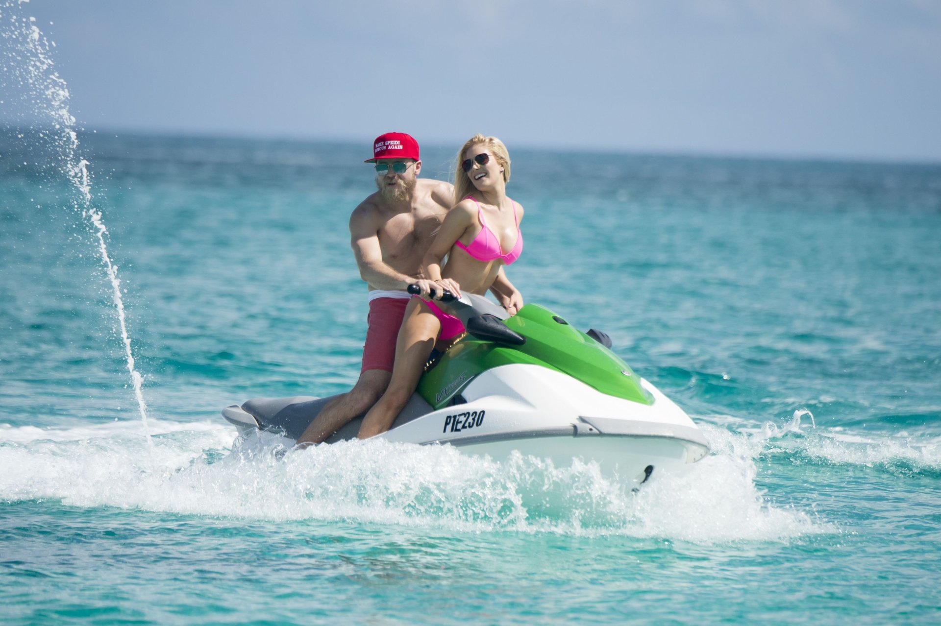 Heidi Montag fait du jet ski avec son homme à Nassau, Bahamas, le 16/09/2016. Heidi Blair Pratt (née Montag) est une personnalité de la télévision américaine, chanteuse, créatrice de mode et auteure. Âge : 30 ans (15 septembre 1986).